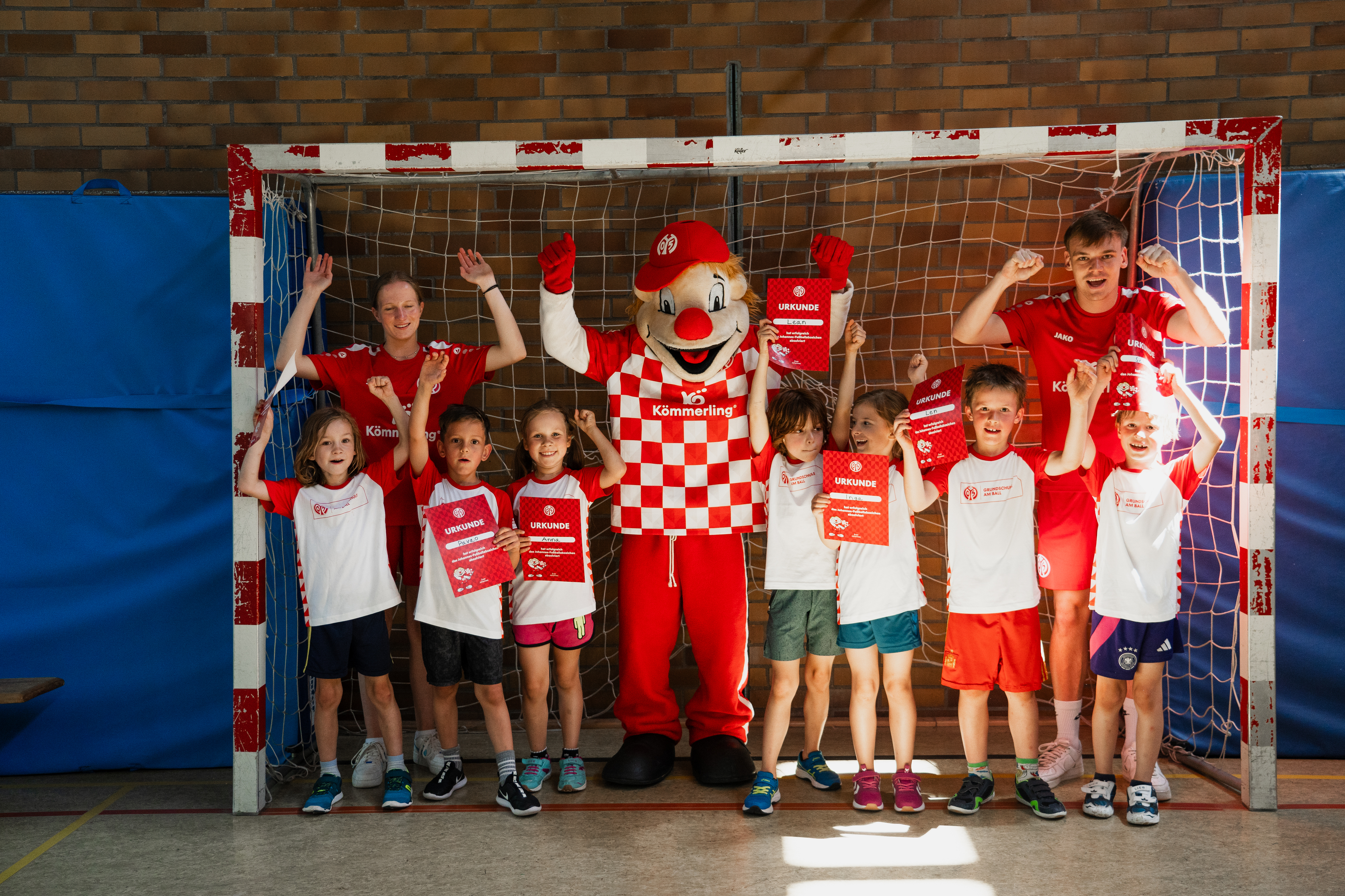Ein großes Highlight für die Kinder ist das „Johannes Fußballabzeichen“, welches am Ende des Schuljahres absolviert wird. In diesem können sie ihre erlernten Techniken und Fähigkeiten unter Beweis stellen und sich mit 05ER KidsClub- Maskottchen Johannes messen.