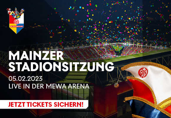 Die 05ER Stadionsitzung am 05. Februar sorgt für Vorfreude bei den Mainzer Narren. Die 05ER haben für das fastnachtliche Bühnenprogramm in der MEWA ARENA bereits 2.000 Eintrittskarten verkauft. Aufgrund der großen Nachfrage erweitert der Verein das Ticketangebot ab sofort um Eintrittskarten für Plätze im E-Block. Diese kosten 11,11 Euro und sind ab sofort über alle Vorverkaufskanäle des Vereins erhältlich (Online-Ticketshop, Fanshops, Ticket-Hotline).