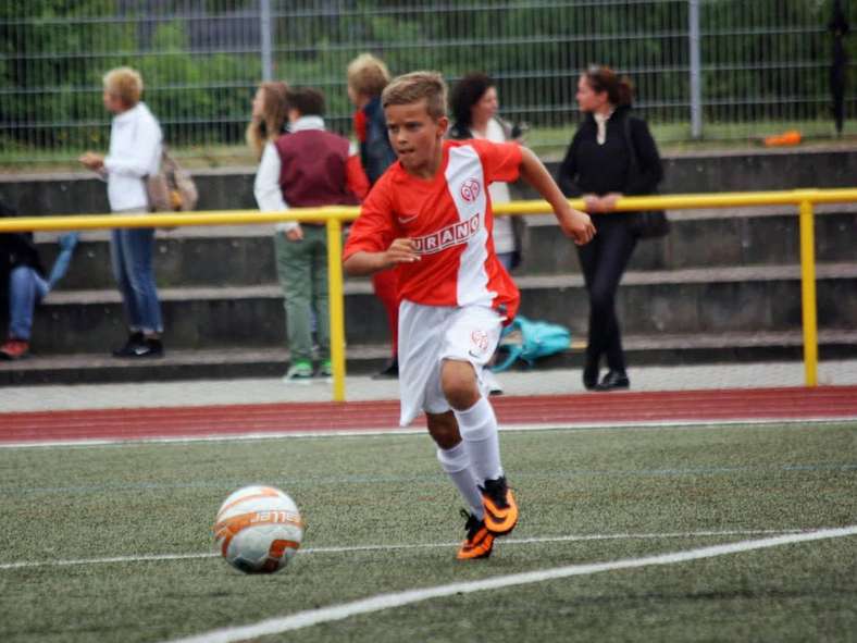 In der Partie gegen Fortuna Düsseldorf überzeugten die Minimainzer dann auch fußballerisch, doch wieder geriet die Mannschaft in Rückstand und es reichte am Ende nur zum unglücklichen 1:1. In der letzten Vorrundenpartie gegen den MSV Duisburg lief es nach dem gewohnten Bild. Spielerisch überlegen, eine Vielzahl an Chancen für die 05er, doch der Gegner ging in Führung. Wie in der Partie gegen Leverkusen musste man sogar ein 0:2 hinnehmen und drehen – und die Minimainzer schafften es erneut. Am Ende stand ein unglückliches, weil dem MSV deutlich überlegen, 2:2.