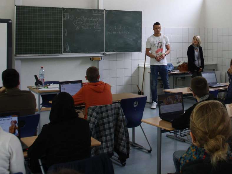 „Ich persönlich trinke nie Alkohol und ich kann euch nur raten, dies auch nicht zu tun. Im Profisport hat das nämlich nichts verloren“. Mit diesen Worten verabschiedete sich der derzeit am Meniskus verletzte Stürmer von den Anwesenden. Ein sicherlich besonderer Tag, der den Schülern hoffentlich im Gedächtnis bleiben wird.