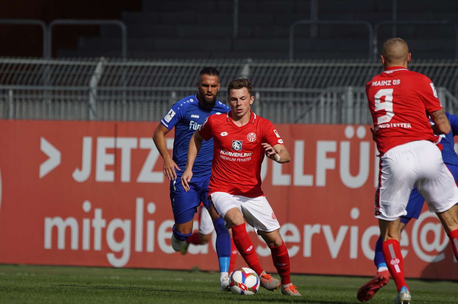 Dank eines Treffers von Simon Brandstetter aus der 67. Minute hat die U23 des 1. FSV Mainz 05 am Samstagnachmittag im Bruchwegstadion den sechsten Saisonsieg feiern können. Nach 90 Minuten gegen einen starken Aufsteiger setzten sich die Mainzer vor rund 400 Zuschauern knapp aber verdient mit 1:0 (0:0) durch und schrauben das Punktekonto nach 13 Spieltagen auf 21 hoch.