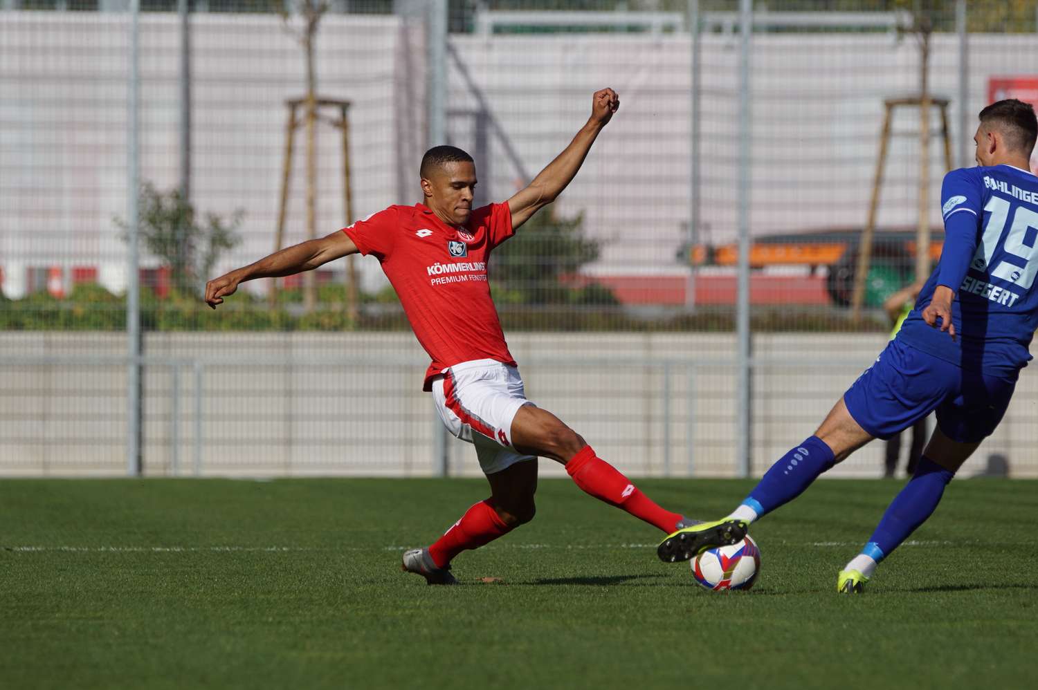 Den besseren Start in den zweiten Durchgang erwischten erneut die Gastgeber, doch Brandstetter brachte nicht genug Druck hinter eine starke Meier-Flanke von der linken Seite (47.). In einem im Anschluss offenen Spiel, in dem lange keine nennenswerten Torszenen zu verzeichnen waren, schlug Brandstetter dann nach 67 Minuten eiskalt zu: Ein öffnender langer Ball von Oliver Wähling aus der eigenen Hälfte fand den Torjäger an der Strafraumgrenze, von wo aus der Routinier den aus dem Tor geilten Bahlinger Torhüter zur Führung überlupfte. Die 05ER wollten nachlegen, doch ein Versuch von Wähling aus der Distanz verfehlte den Kasten knapp (71.). So blieb es eine Partie auf Messers Schneide, in der Liesegang in der 78. Minute gegen Häringer noch einmal hellwach sein musste. Für die Vorentscheidung hätten die Mainzer eine Minute vor dem Ende der regulären Spielzeit sorgen können, doch Kapitän Niklas Kölle agierte zu uneigennützig, sein Querpass auf Wähling wurde im letzten Moment geblockt (89.). Weil der FSV anschließend aber nichts mehr anbrennen ließ in der Defensive, stand Heimsieg Nummer vier auch bis zum Schlusspfiff des sicher leitenden Unparteiischen Tobias Endriß nichts mehr im Weg.