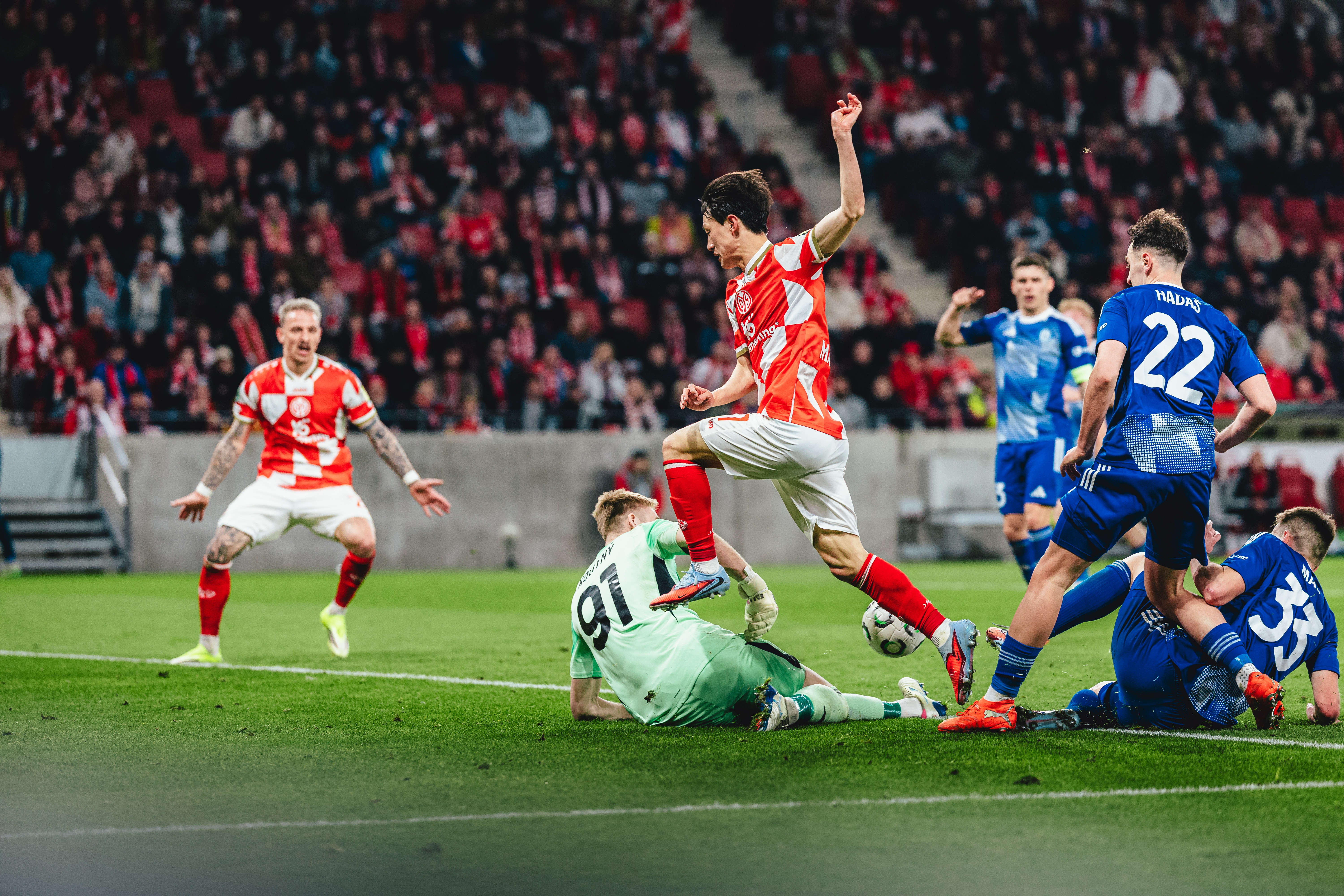 Die Reise des 1. FSV Mainz 05 durch Europa findet eine Fortsetzung. Dank des verdienten 2:0-Erfolgs im Achtelfinal-Rückspiel gegen Sigma Olmütz stehen die 05ER im Viertelfinale der Conference League. Den historischen Erfolg - erstmals in ihrer Vereinsgeschichte sind die Rheinhessen unter den letzten acht Mannschaften eines europäischen Wettbewerbs - besorgten Stefan Posch und Armindo Sieb mit ihren Treffern in der zweiten Halbzeit. Der FSV hatte die Partie über 90 Minuten unter Kontrolle, besaß zahlreiche gute Chancen und belohnte sich am Ende für ein starkes Spiel. Nach dem Abpfiff kannte der Jubel in der MEWA ARENA keine Grenzen: Europapokal!