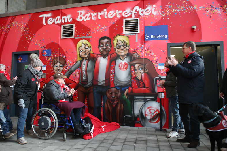 Mainz 05 hat den Anspruch, Vorreiter in der Wahrnehmung gesellschaftlicher Verantwortung im Profisport zu sein. Dazu gehören Integration, Inklusion und Vielfalt. Beim Bau des neuen Stadions wurden von vornherein die Bedürfnisse von Menschen mit Behinderung berücksichtigt. Zwei Behindertenbeauftragte kümmern sich um die behinderten Fans.