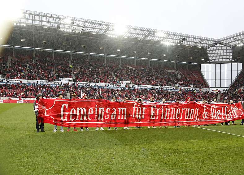 Im Rahmen des Heimspiels des 1. FSV Mainz 05 gegen den VfB Stuttgart sowie des 14. Erinnerungstages im Deutschen Fußball zeigten sich vor Beginn der Partie beide Vereine solidarisch. Unter dem Motto „Gemeinsam für Erinnerung und Vielfalt“ richteten Detlev Höhne, Aufsichtsratsvorsitzender des 1. FSV Mainz 05, Stefan Heim, Vorstand Finanzen, Verwaltung und Operations des VfB Stuttgart sowie Alon Meyer, Präsident von Makkabi Deutschland, einige Worte zum Gedenken an die Opfer des Nationalsozialismus an die Stadionbesucher. In den kurzen Ansprachen machten die Verantwortlichen deutlich, dass Antisemitismus, Rassismus und Homophobie im Fußball keinen Platz haben. Darüber hinaus präsentierten Spieler des FC Ente Bagdad sowie Fans beider Vereine ein Banner mit der Aufschrift „Gemeinsam für Erinnerung und Vielfalt“, um die Bedeutung dieses wichtigen Themas einmal mehr zu verdeutlichen.