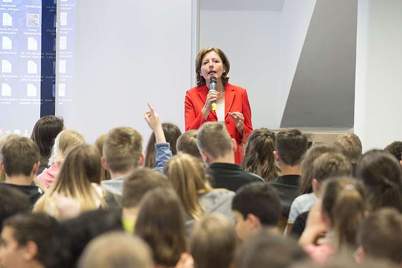 Schirmherrin Malu Dreyer richtet Grußworte an Schülerinnen und Schüler