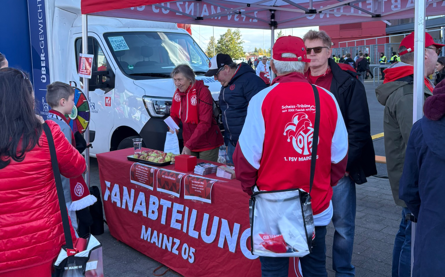 Bei einem spannenden Quiz, welches vom Klimaschutz Verein "Parents for Future“ zur Verfügung gestellt wurde, gab es Fragen für alle Altersgruppen. Als Belohnung gab es für alle Teilnehmenden einen Apfel, der am Tag vorher frisch bei einem regionalen Bauern von einem AG-Mitglied gepflückt wurde. Passend zu den ökologischen Leitbild-Werten des "Mainzer Wegs“ wurden so rund 15 Kilo regional und saisonal erzeugte Äpfel an die Fans verteilt.