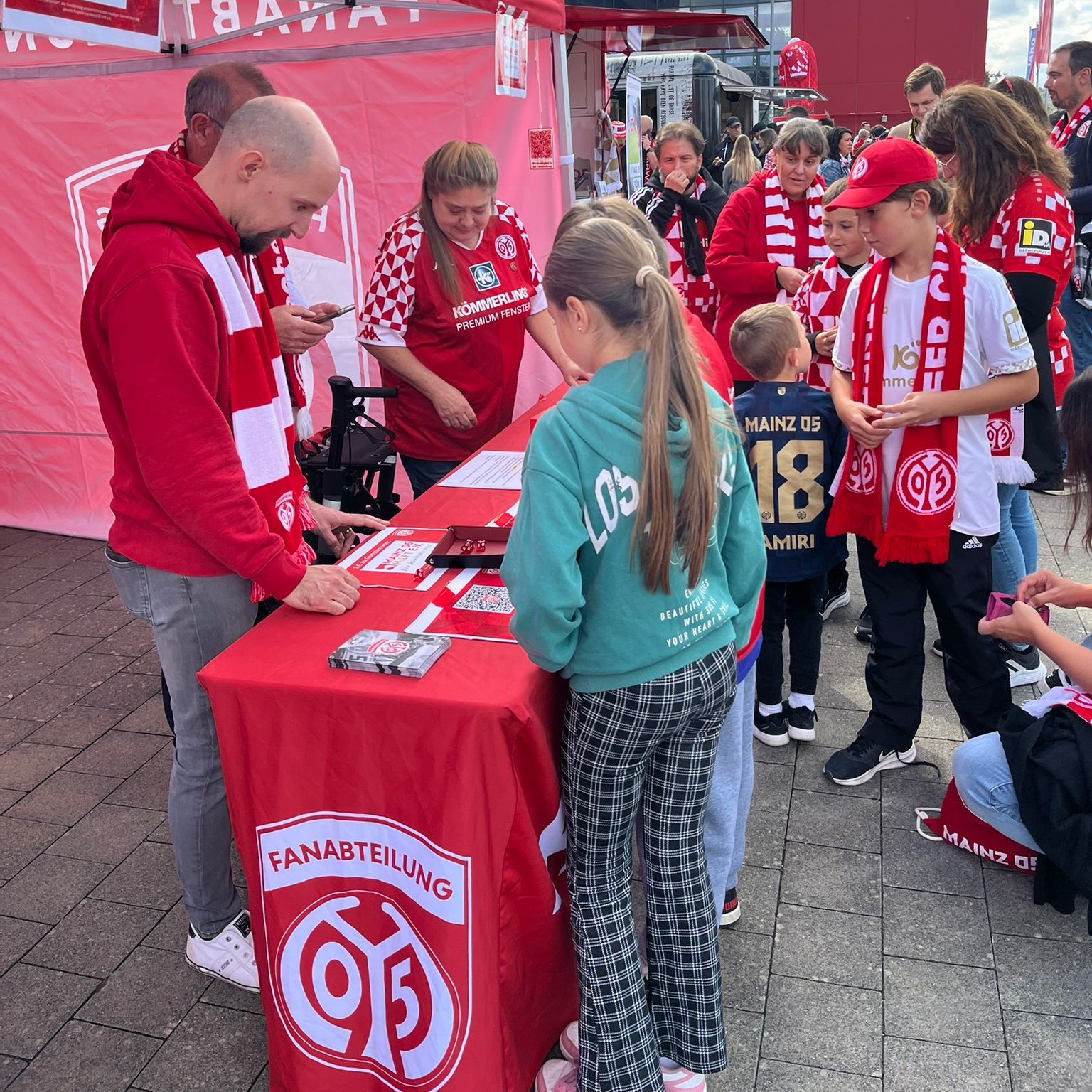 Und die Mühe hat sich gelohnt: Der Stand war durchweg sehr gut besucht. Viele Fans nutzten die Gelegenheit, beim Würfelspiel ihr Glück zu versuchen oder sich die aktualisierte "Fudderkaad“ abzuholen. Dabei konnten wir die Änderungen der "Fudderkaad“ im persönlichen Austausch erläutern und kamen mit zahlreichen 05-Fans, wie auch Gästen, ins Gespräch – genau das, was unsere Arbeit ausmacht.