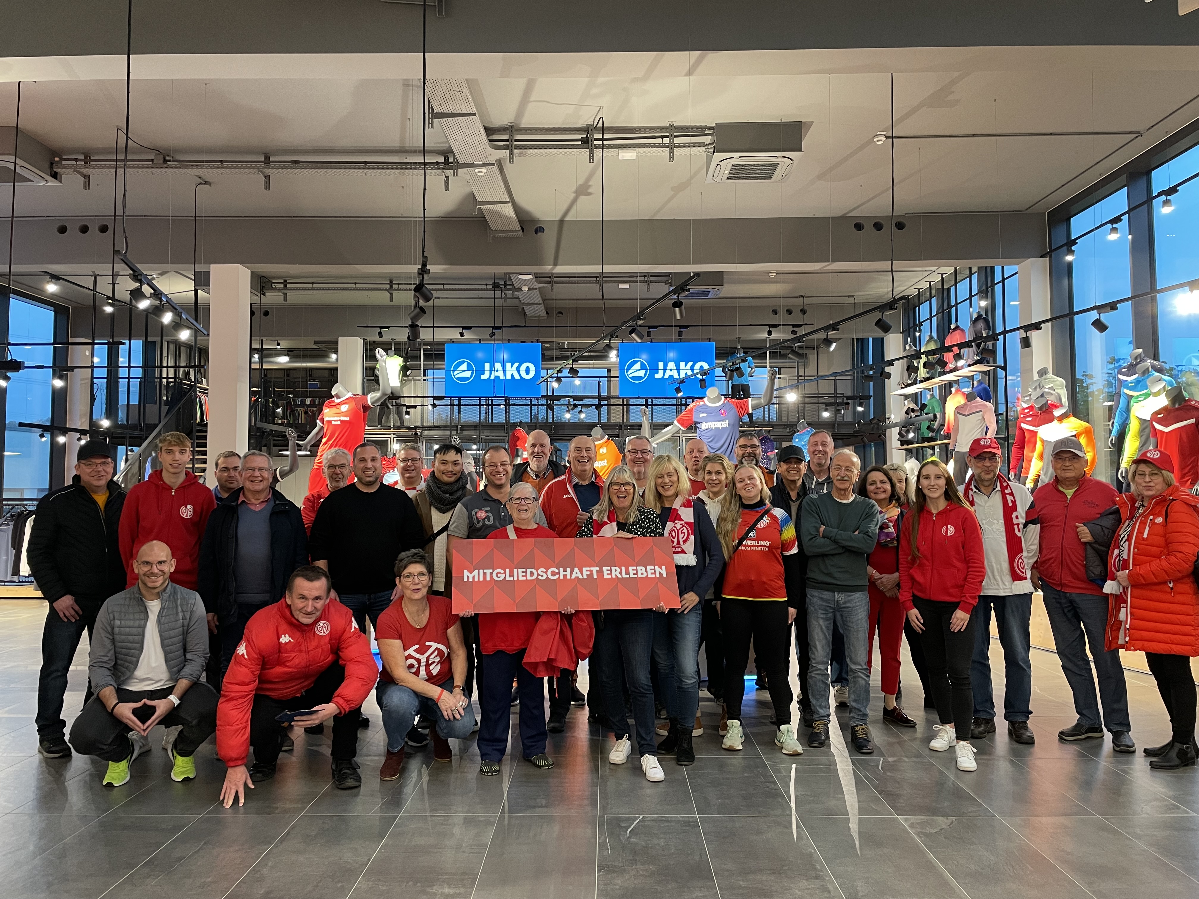 Mitgliedschaft erleben: Mitte November ging es für einige Mitglieder von Mainz 05 nach Hollenbach zum Ausrüster JAKO. Die 30 Teilnehmenden trafen sich an der MEWA ARENA, wo direkt das erste Highlight auf sie wartete: Mit dem offiziellen Mannschaftsbus der Profis machte man sich höchst komfortabel auf den Weg nach Richtung Baden-Württemberg zum Logistik- und Verwaltungszentrum des Sportartikelherstellers.