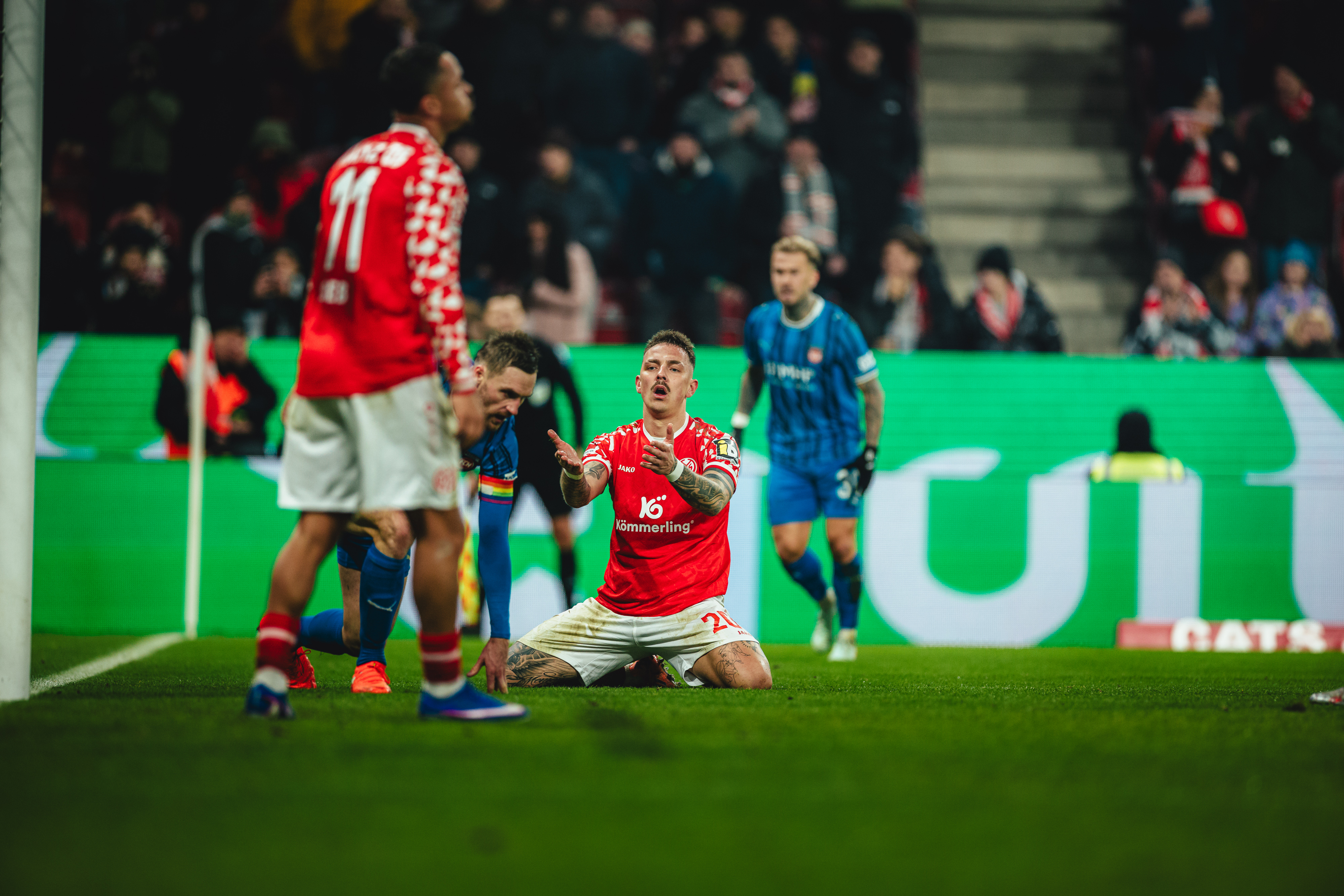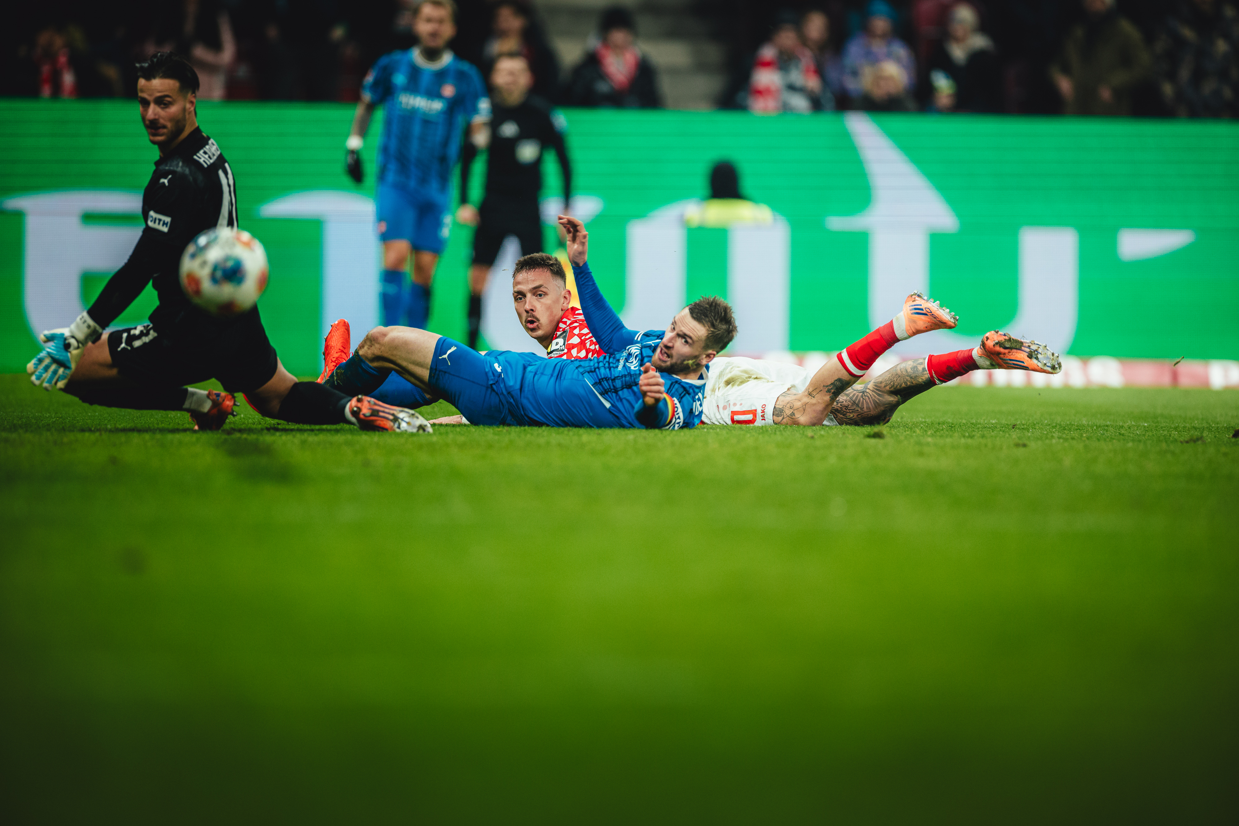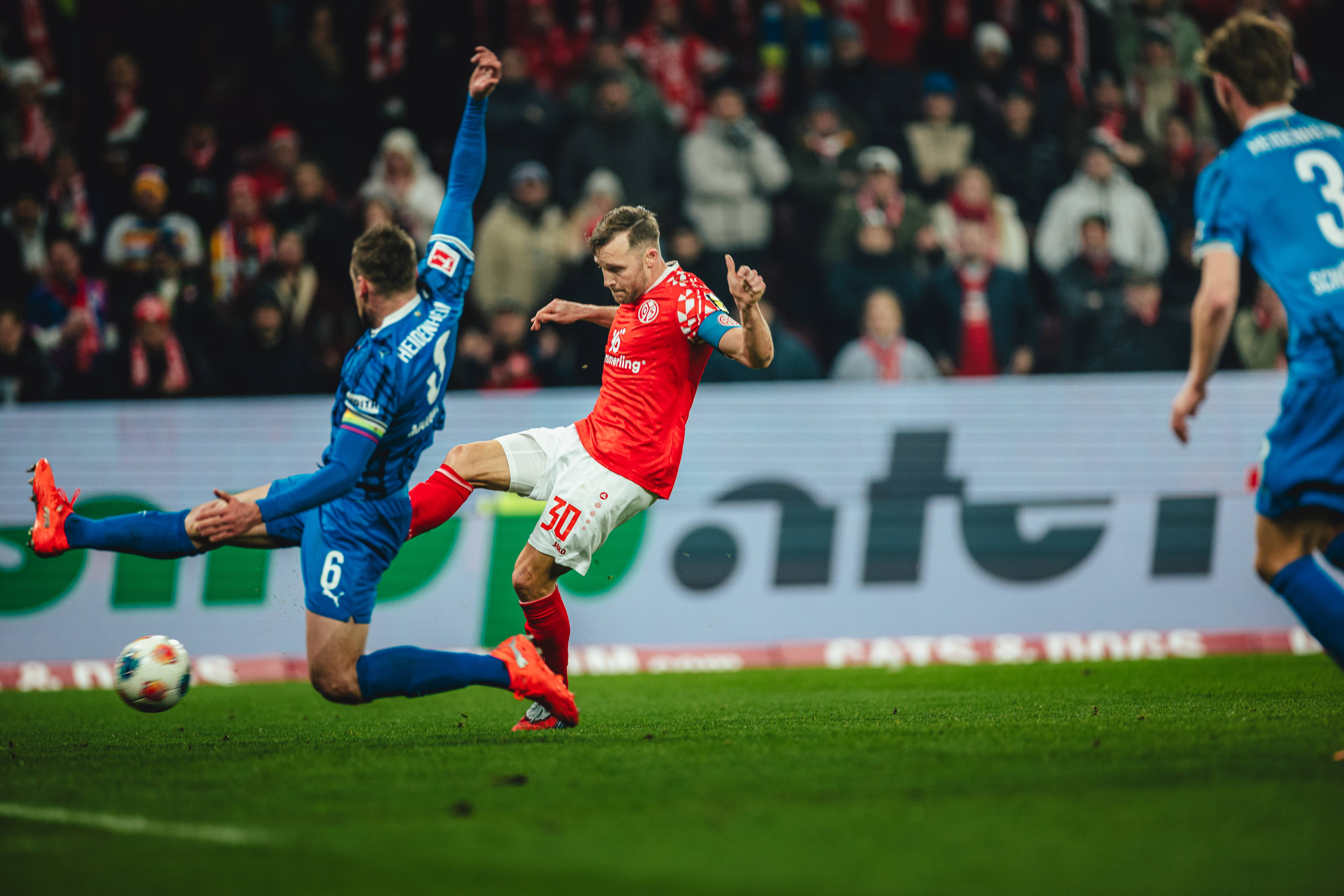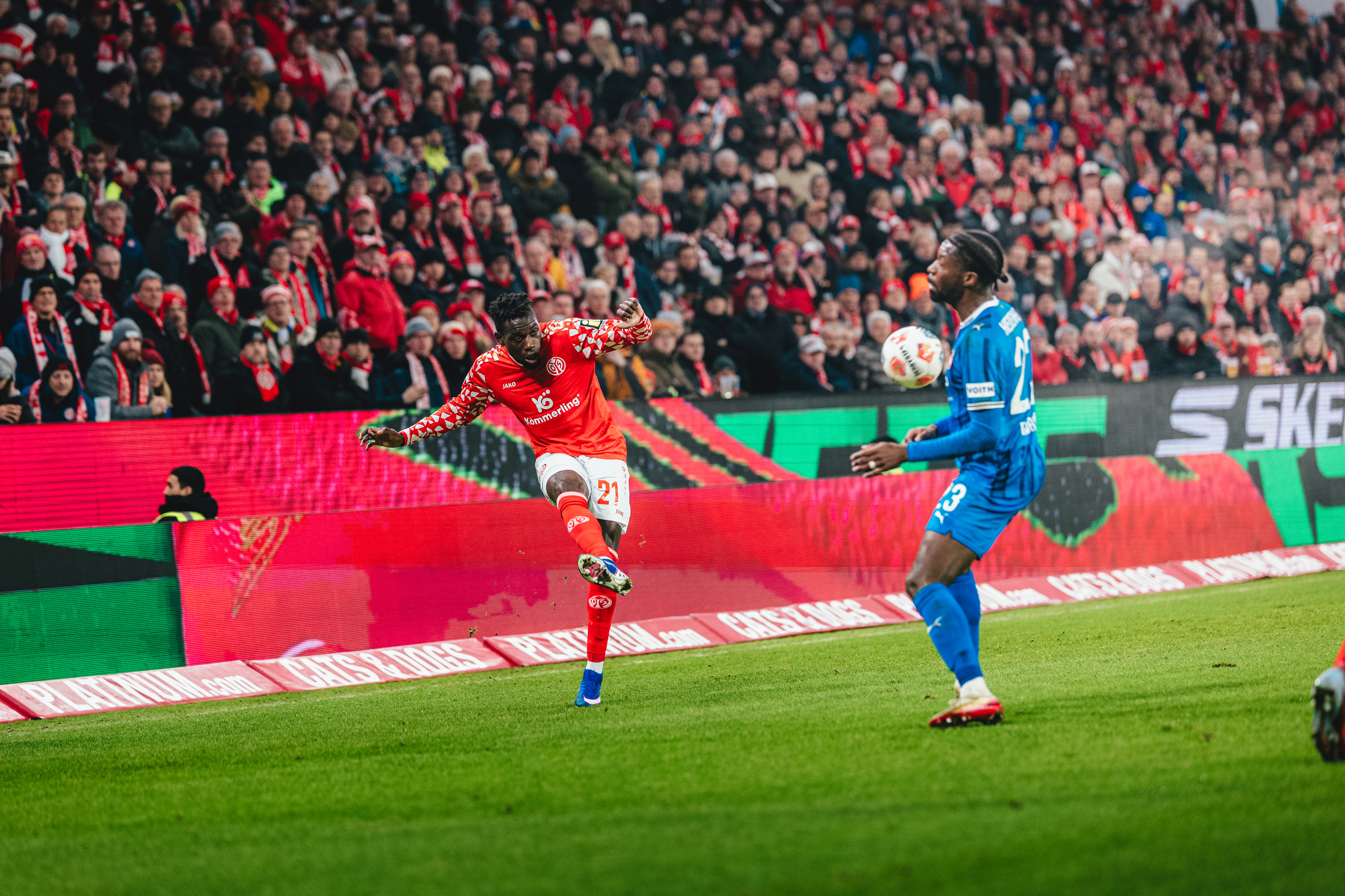 Das 2:1 aus Sicht der 05ER brachte die Gäste zurück in die Partie. Der FCH hatte Chancen auf den Ausgleich, der FSV schwamm in dieser Phase. Erneut Ibrahimovic, Sirlord Conteh und Andreas Beck hatten den zweiten Heidenheimer Treffer auf dem Fuß (63./64./65.). Das Spiel wog nun hin und her, beide Teams agierten mit offenem Visier, Abstiegskampf pur in der MEWA ARENA. Die 05ER befreiten sich aus dieser wilden Phase der Partie und hatten in Person des engagierten Tietz die nächste Gelegenheit. Der Mainzer Angreifer war nach einem langen Schlag früher am Ball als Ramaj, setzte den Kopfball aber knapp über das Gästetor (79.). In der Schlussphase erhöhten die Gäste nochmal den Druck und warfen alles nach vorne. Bei ihrem Torhüter und dem Querbalken konnten sich die 05ER in der 86. Minute bedanken. Der abgefälschte Schuss von Ibrahimovic landete knapp vor der Linie. In der fünfminütigen Nachspielzeit sollten Lennard Maloney und Arnaud Nordin mithelfen, die Führung über die Zeit zu bringen. Tietz und Amiri gingen dafür vom Platz. Es blieb bis zum Abpfiff nach fünfminütiger Nachspielzeit beim 2:1, mit dem die 05ER nach langer Zeit wieder einen Heimsieg und einen insgesamt wichtigen Erfolg mit ihren Fans feiern konnten.