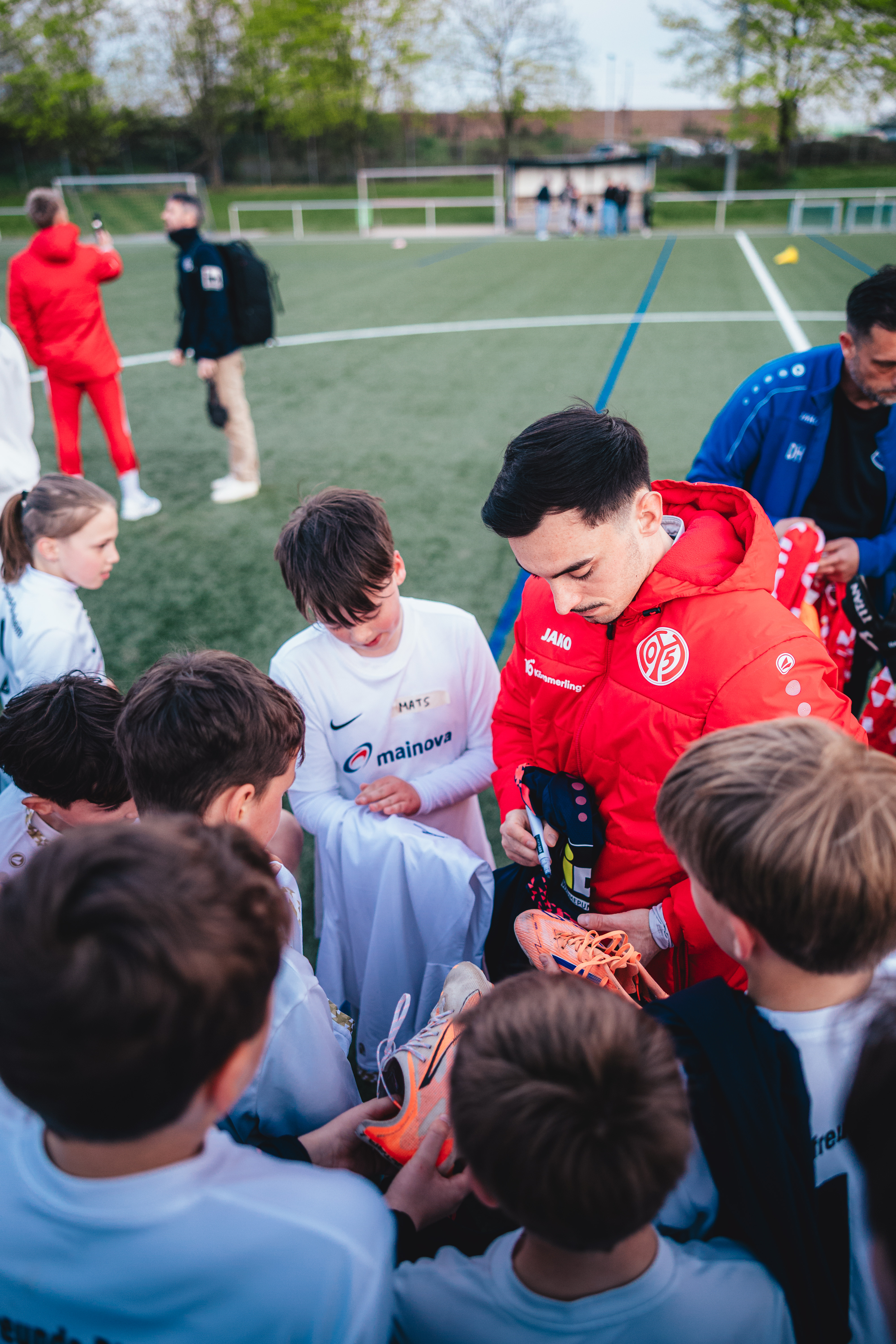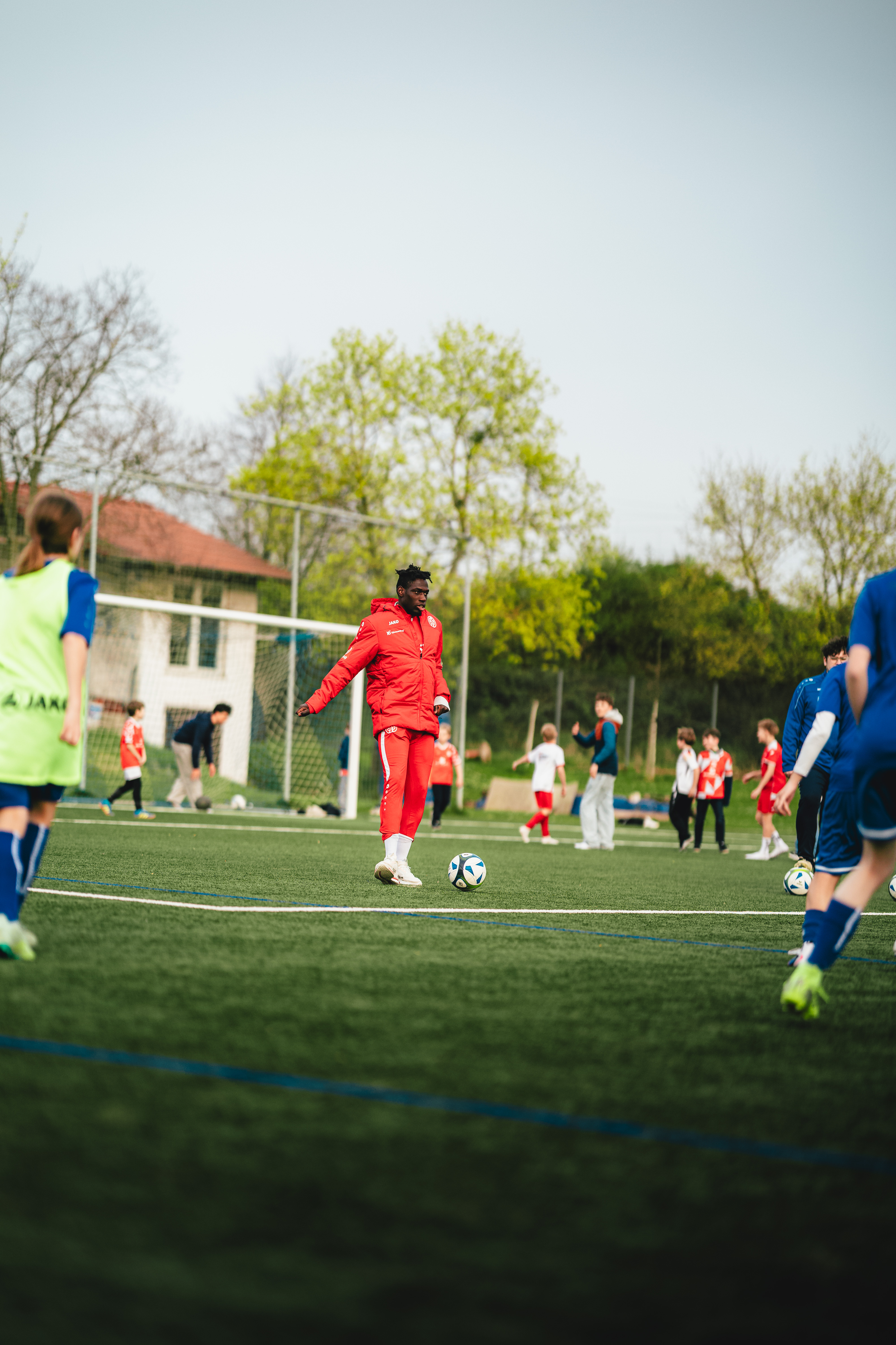 So auch am Dienstagnachmittag, als Daniel Batz, Danny da Costa, Phillip Tietz und Paul Nebel bei den Sportfreunden Dienheim zu Gast waren und für strahlende Augen bei den Nachwuchskickern sorgten. Neben dem Geschehen auf dem Platz sorgte ein buntes Rahmenprogramm mit Hüpfburg und BumBum Ballerbox für Unterhaltung. Im Anschluss an das Training blieb ausreichend Zeit für jede Menge Fotos und Autogramme.