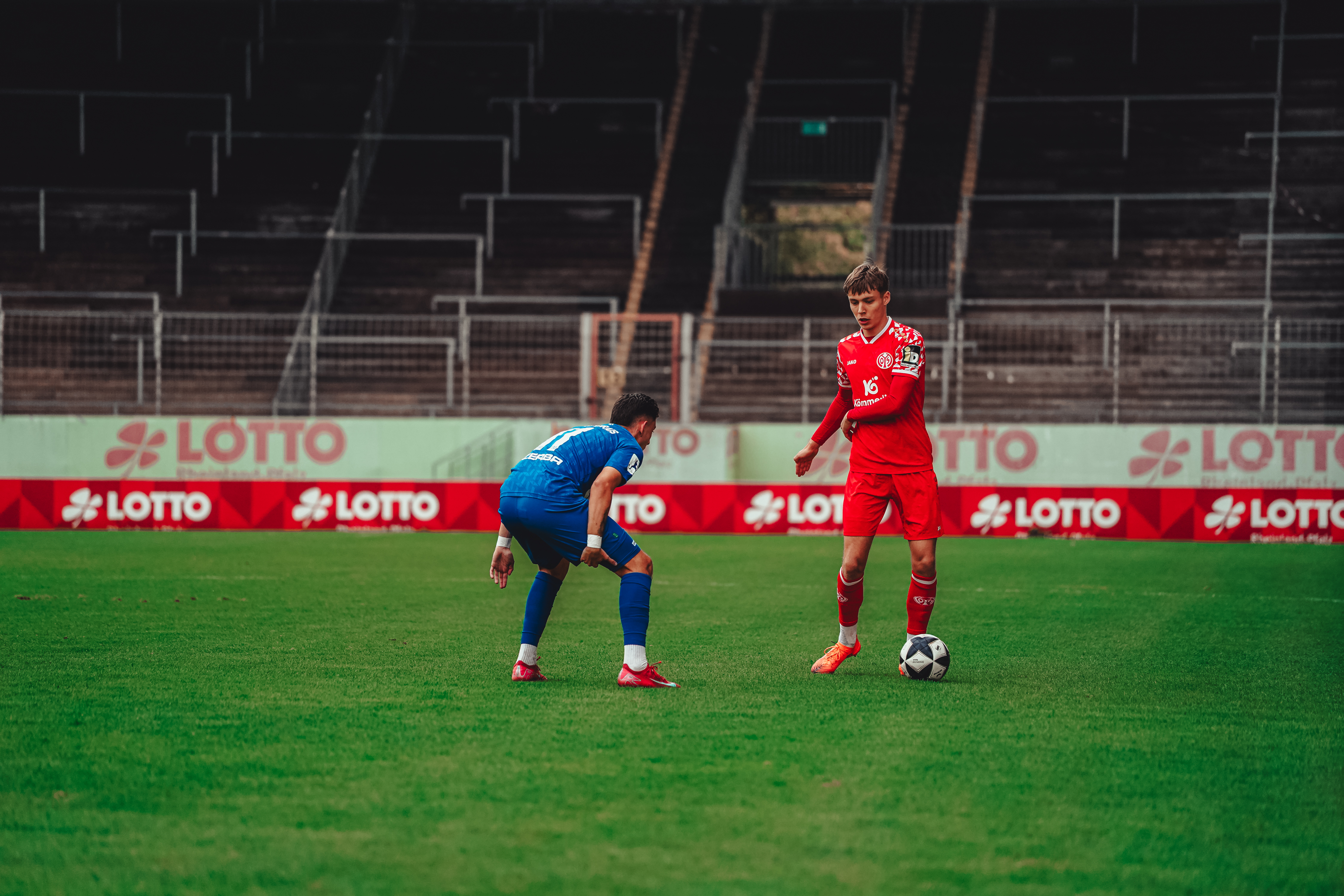 Seit 13 Spielen hat die U23 von Mainz 05 in der Regionalliga Südwest nicht mehr verloren und sich den zweiten Tabellenplatz mit nur drei Punkten Rückstand auf Spitzenreiter SGV Freiberg mehr als verdient. Warum die höchste Ausbildungsmannschaft aus dem Nachwuchsleistungszentrum am Bruchweg so schwer zu schlagen ist, weiß Cheftrainer Benjamin Hoffmann: "Wir haben eine gute Gemeinschaft." Die Kommunikation untereinander sei hervorragend, vor allem, wenn Spieler aus dem Profikader dazustoßen. "Sie werden nicht als Störfaktor angesehen, sondern voll integriert. Da sind wir sehr gut zusammengewachsen und legen großen Wert darauf, dass die Jungs in erster Linie an das Team denken und ihr Ego ein bisschen hintenan stellen", erklärt Hoffmann.