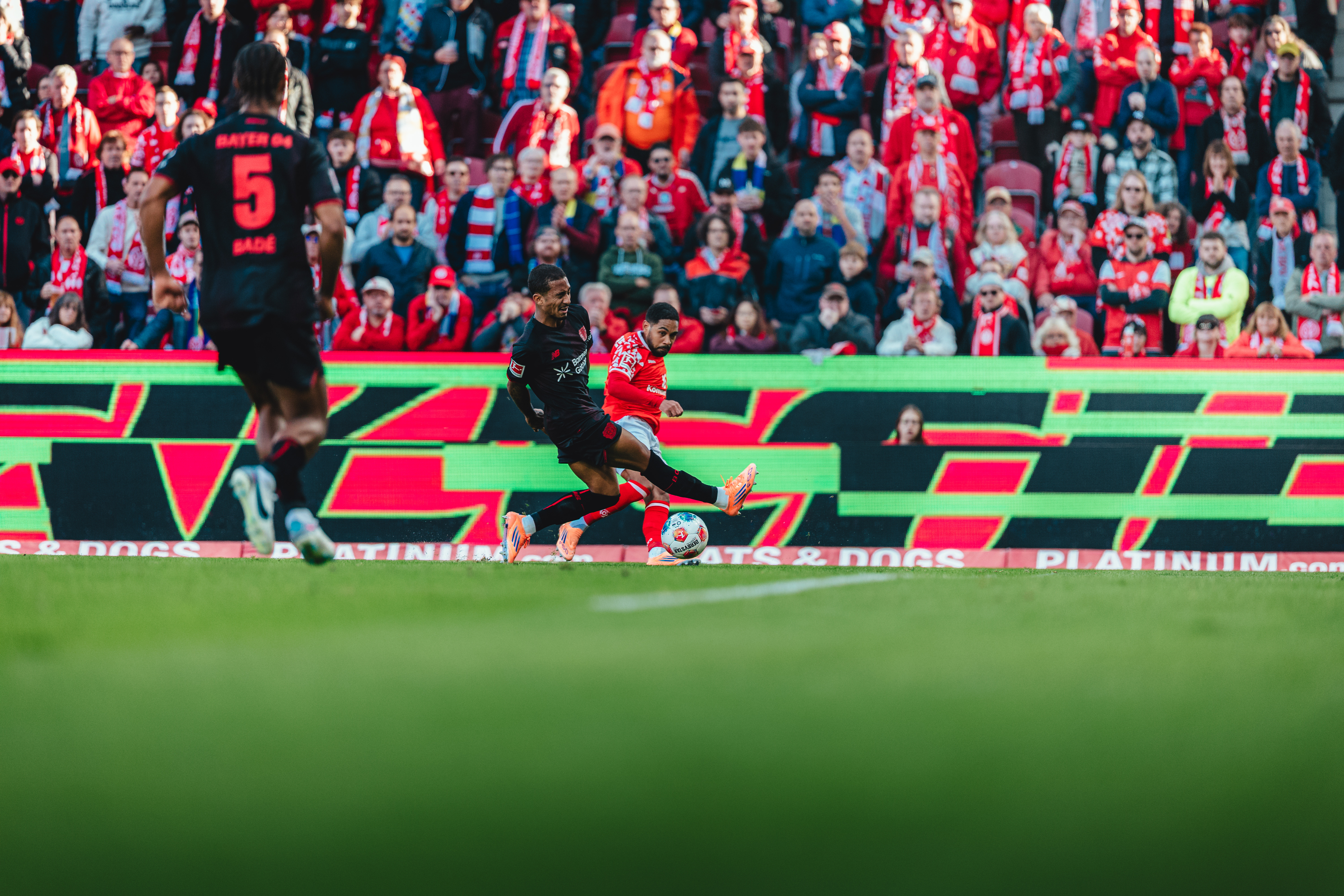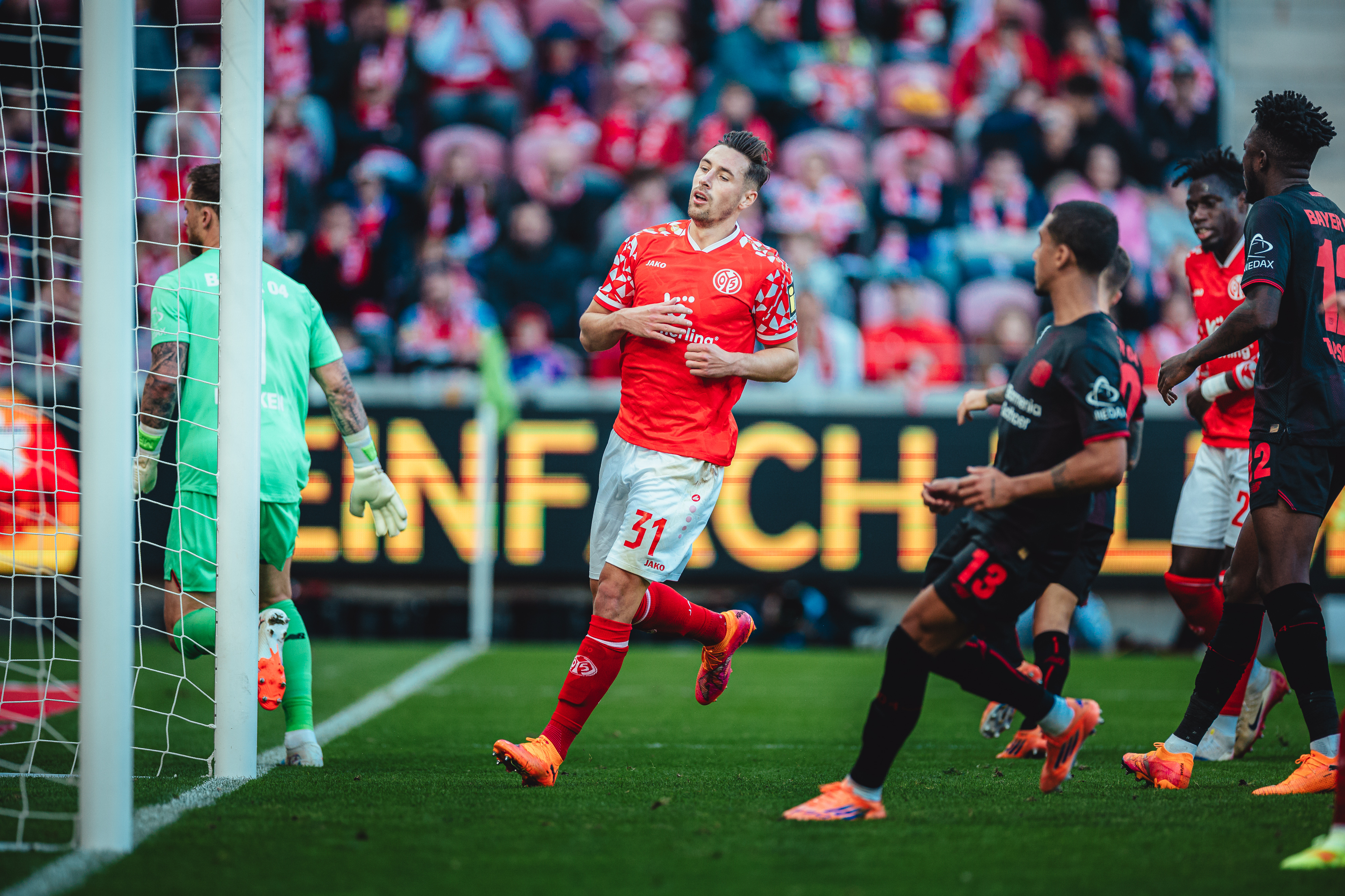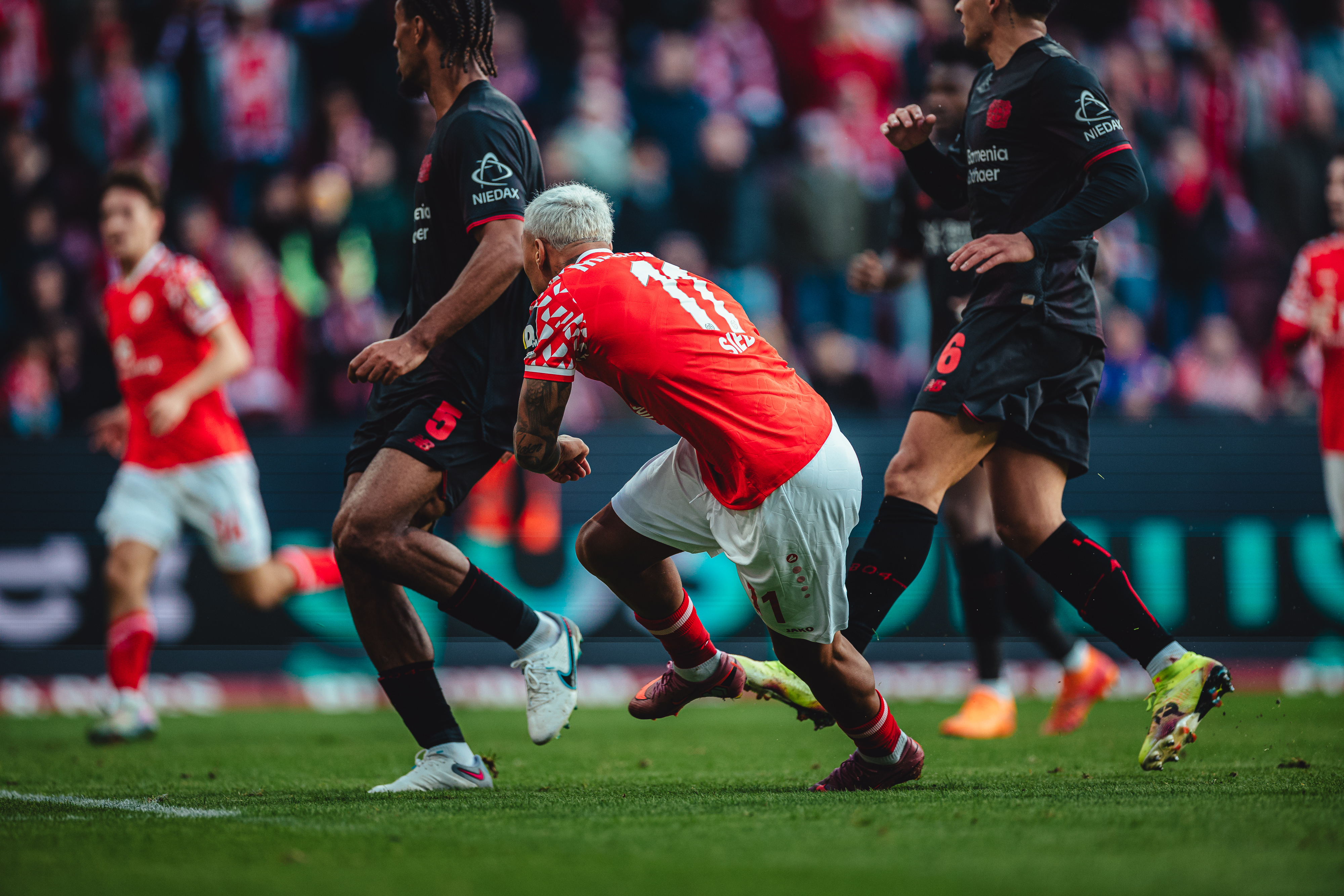 Es war ein Treffer, der eine mit offenem Visier ausgetragene Schlussphase einläuten sollte, in der der FSV nun ein völlig anderes Gesicht zeigte, während die Leverkusener zunehmend nervös wirkten. So druckvoll die 05ER auch auftraten und die Gäste tief in die eigene Hälfte drängten, so ungefährlich blieben die Bemühungen Richtung Tor in letzter Konsequenz. Das Team von Kasper Hjulmand tat nicht mehr viel, was aber reichen sollte, um drei Minuten vor Ablauf der regulären Spielzeit die vermeintliche Vorentscheidung zu besorgen. Terrier vollendete in dieser Szene eine Hereingabe Ben Seghirs im dritten Anlauf. Die hart getroffenen Mainzer nahmen trotz dieses erneuten Nackenschlags einen weiteren Anlauf und verkürzten nur zwei Minuten später erneut. Amiri hatte Joker Sieb glänzend in Szene gesetzt, der technisch anspruchsvoll seinen zweiten Saisontreffer markierte. Kurz darauf begannen acht Minuten Nachspielzeit, in denen es kaum noch einen der 33.305 Anwesenden auf ihren Sitzen halten sollte. Das Anrennen der letzten halben Stunde sollte letztendlich aber nicht mehr reichen für einen Punktgewinn, der lange außer Reichweite schien, spät aber doch noch möglich wurde aufgrund einer klaren Leistungssteigerung ab der 60. Minute.