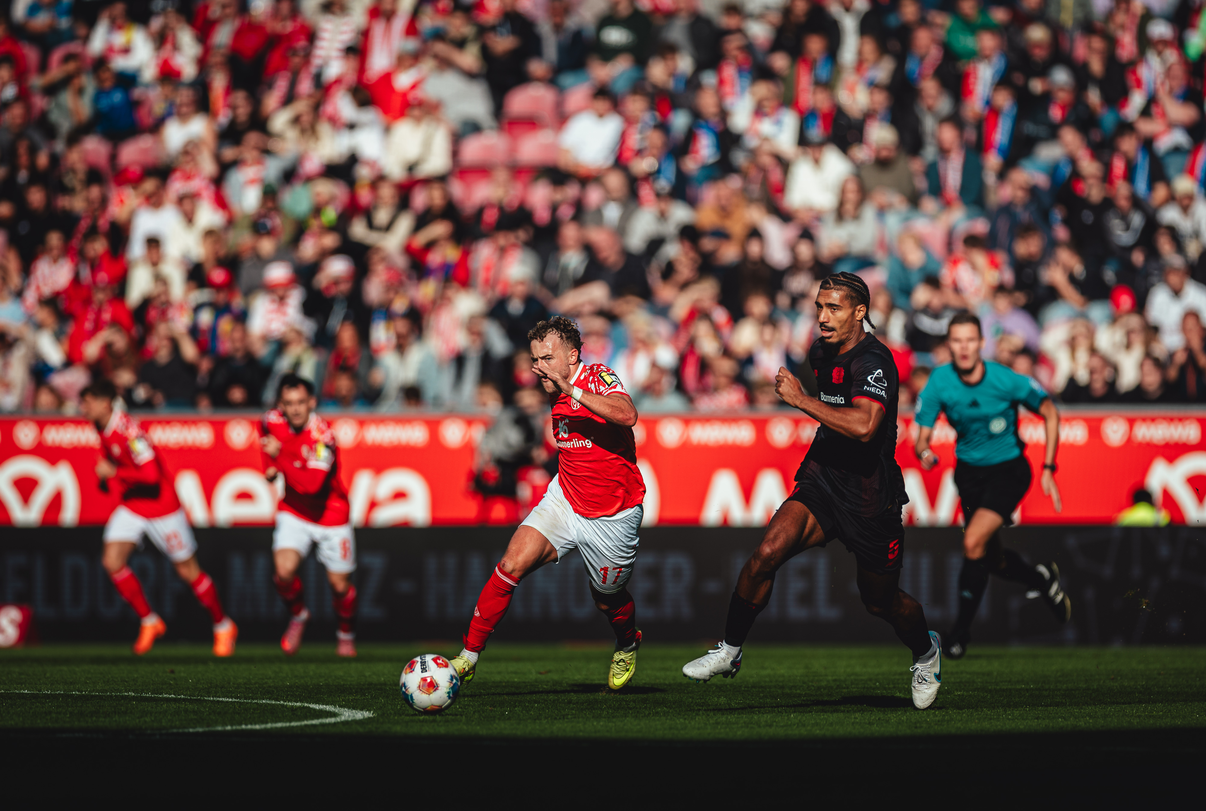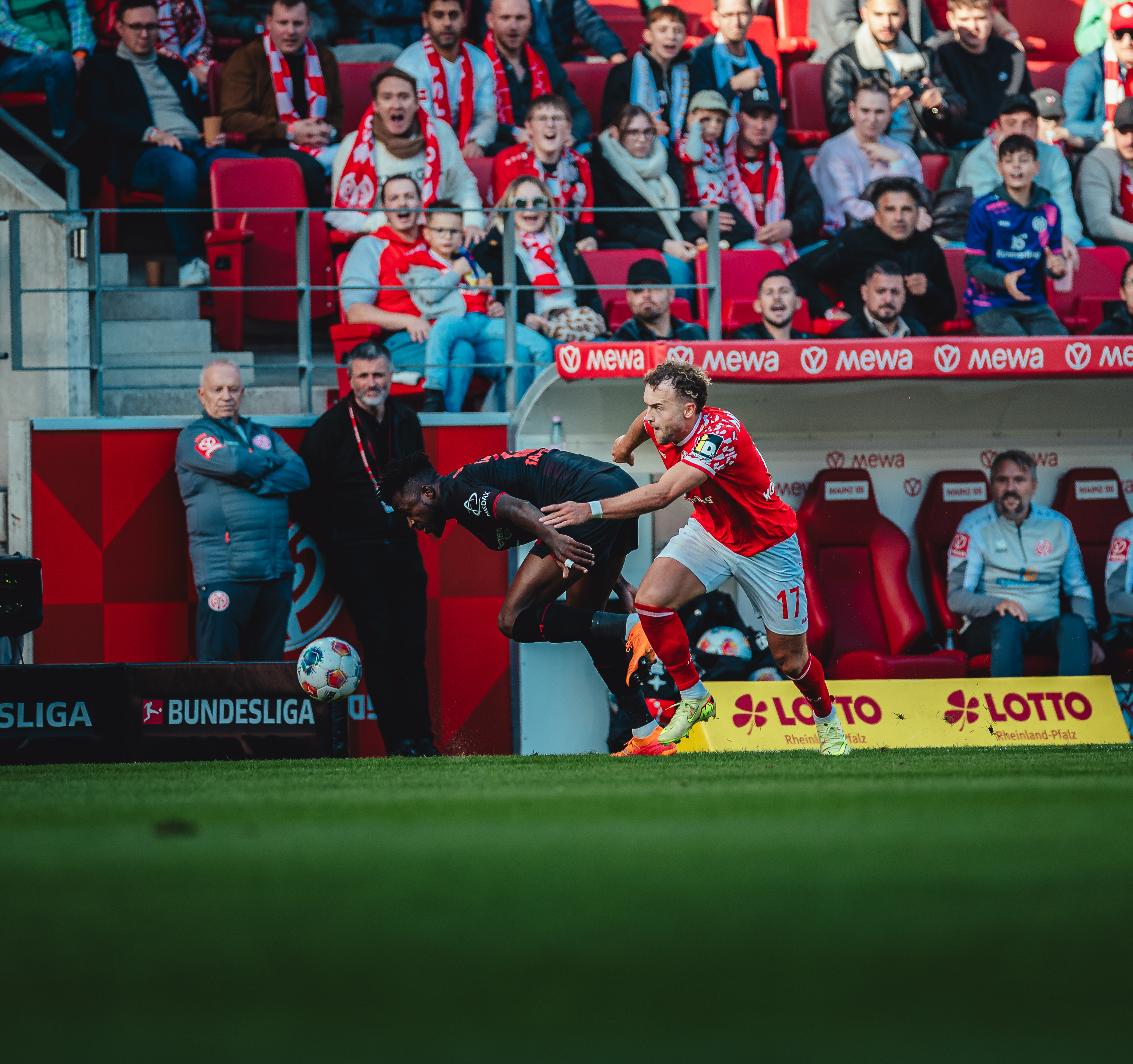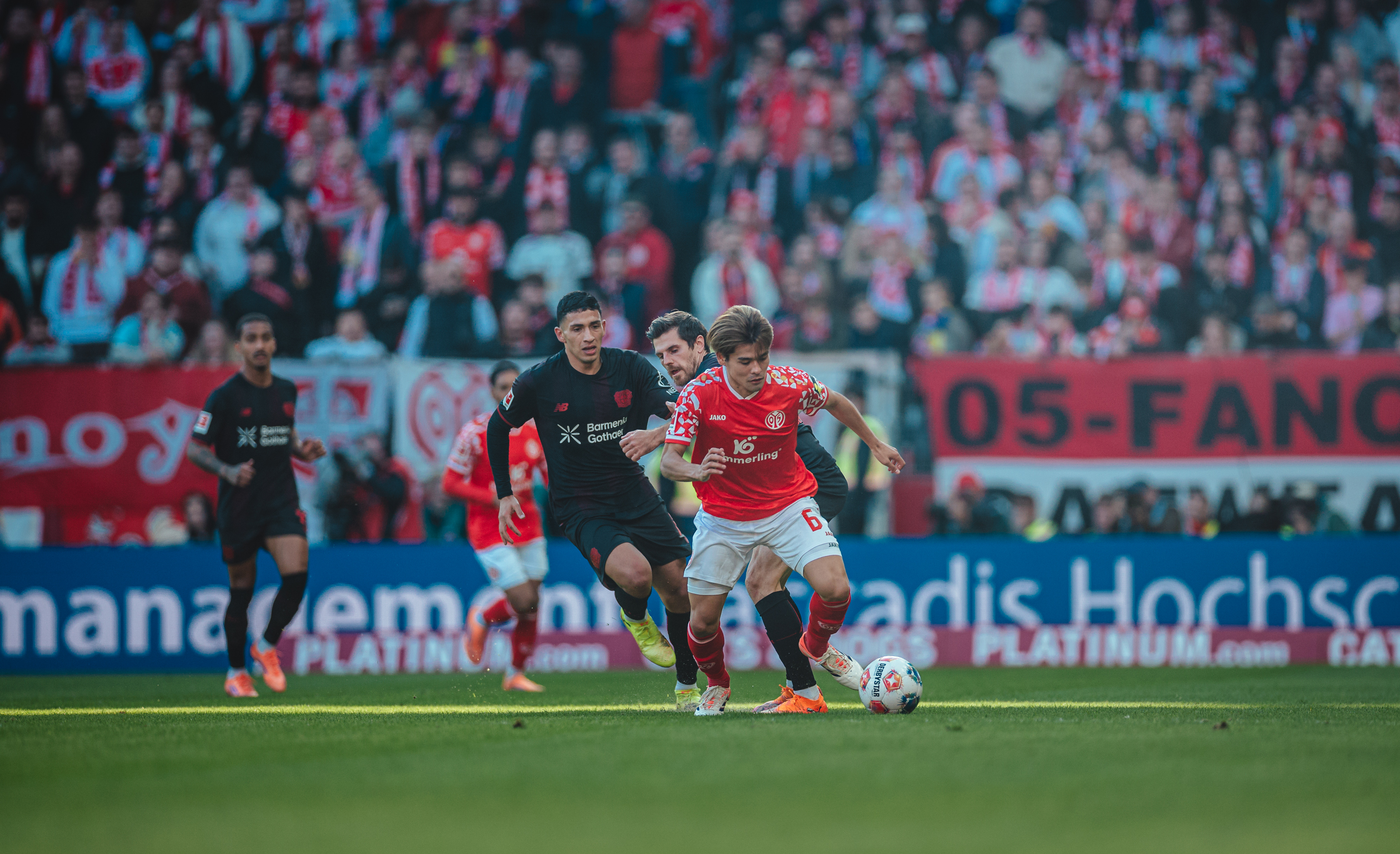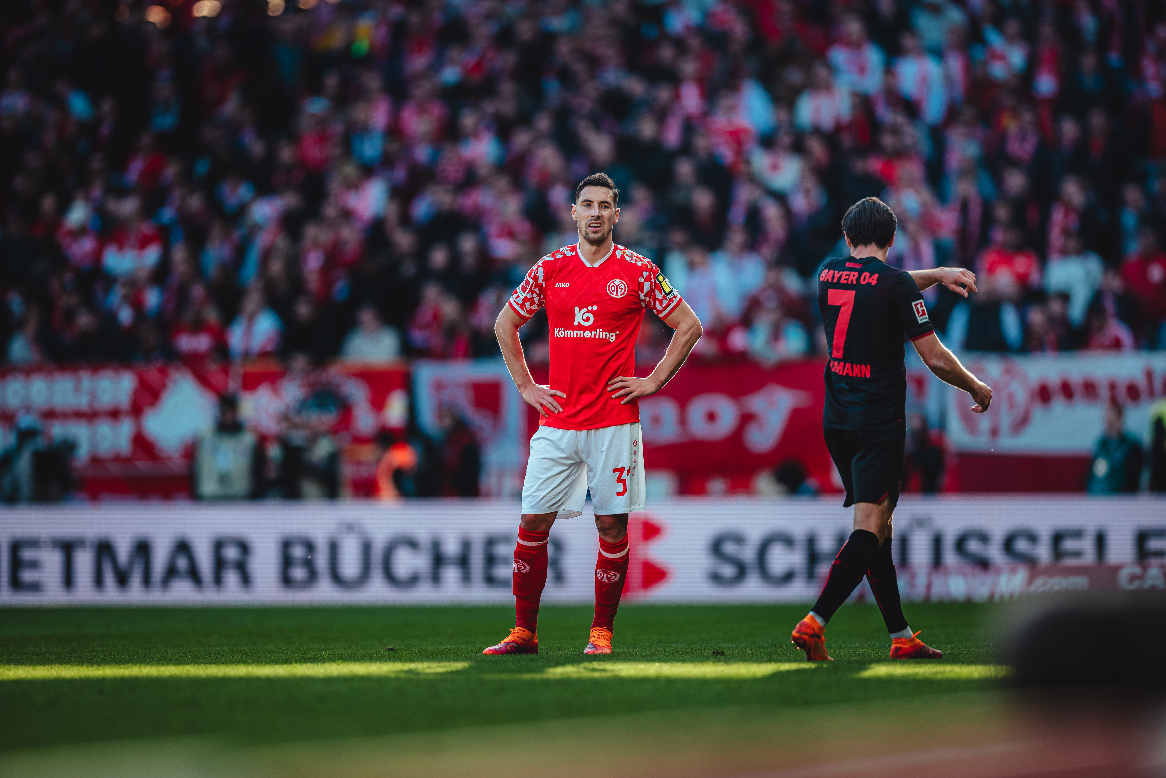 Es war ein Treffer, der eine mit offenem Visier ausgetragene Schlussphase einläuten sollte, in der der FSV nun ein völlig anderes Gesicht zeigte, während die Leverkusener zunehmend nervös wirkten. So druckvoll die 05ER auch auftraten und die Gäste tief in die eigene Hälfte drängten, so ungefährlich blieben die Bemühungen Richtung Tor in letzter Konsequenz. Das Team von Kasper Hjulmand tat nicht mehr viel, was aber reichen sollte, um drei Minuten vor Ablauf der regulären Spielzeit die vermeintliche Vorentscheidung zu besorgen. Terrier vollendete in dieser Szene eine Hereingabe Ben Seghirs im dritten Anlauf. Die hart getroffenen Mainzer nahmen trotz dieses erneuten Nackenschlags einen weiteren Anlauf und verkürzten nur zwei Minuten später erneut. Amiri hatte Joker Sieb glänzend in Szene gesetzt, der technisch anspruchsvoll seinen zweiten Saisontreffer markierte. Kurz darauf begannen acht Minuten Nachspielzeit, in denen es kaum noch einen der 33.305 Anwesenden auf ihren Sitzen halten sollte. Das Anrennen der letzten halben Stunde sollte letztendlich aber nicht mehr reichen für einen Punktgewinn, der lange außer Reichweite schien, spät aber doch noch möglich wurde aufgrund einer klaren Leistungssteigerung ab der 60. Minute.