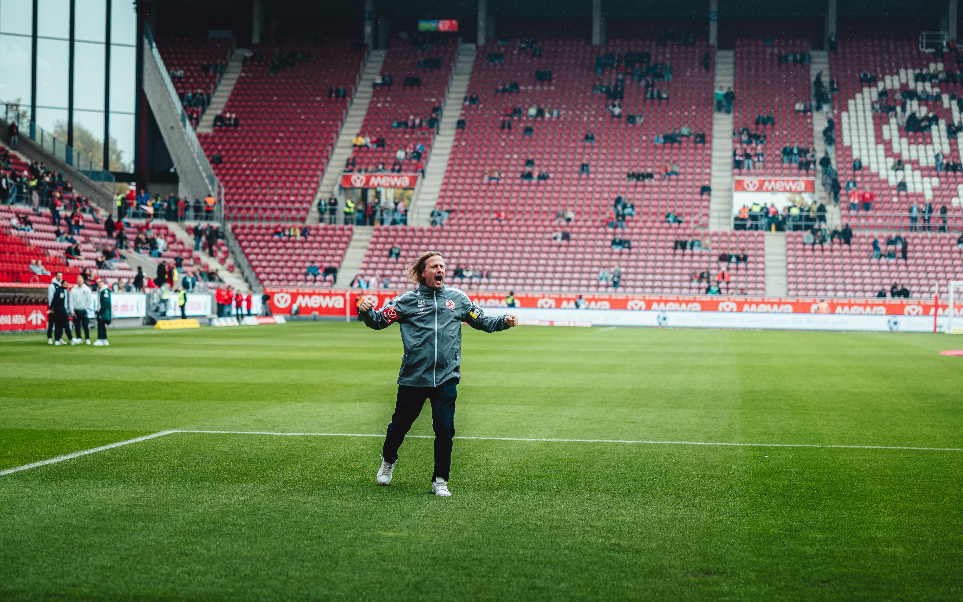 Während die Norddeutschen zur Pause einmal wechselten, schickte Bo Henriksen sein Team personell unverändert zurück auf den Rasen. Und der FSV knüpfte zunächst da an, wo er in Durchgang eins aufgehört hatte. Keine 120 Sekunden waren gespielt nach Wiederbeginn, da landete ein Eckball Amiris bei Lennard Maloney, der Backhaus per Kopf bereits überwunden hatte, dann aber Pech hatte, dass Amos Pieper kurz vor der Linie klären konnte (47.). Die Mainzer blieben dran, schalteten gar nicht erst in den Verwaltungsmodus, sondern drückten weiter. Nach einem 50-Meter-Solo-Lauf brachte der umtriebige Hollerbach das Leder vors Tor, wo jedoch Backhaus vor Lee und Nebel am Ball war (52.). Fünf Minuten später spielte der noch torlose Angreifer dann einen Doppelpass mit Lee, zog aus 20 Metern ab, scheiterte aber erneut am Bremer Schlussmann (57.). Bremen fand offensiv auch in der Folge quasi gar nicht statt, was fehlte war jedoch Treffer Nummer zwei aus 05-Sicht, der an diesem Nachmittag sicher früh die Vorentscheidung bedeutet hätte. Diese lag nach einer guten Stunde erneut in der Luft, als Nebel von rechts flankte, Hollerbach die Hereingabe im Zentrum aber um Zentimeter verpasste, so dass Backhaus erneut zupacken konnte (62.). Dass die 05ER die Führung nicht längst ausgebaut hatten, hätte sich wenig später beinahe schon gerächt: Der soeben eingewechselte Justin Njinmah steuerte nach einem Steckpass von Cameron Puertas frei auf Zentner zu, scheiterte letztlich aber an einem klasse Reflex des Keepers (65.). Wenig später wechselte dann auch Henriksen erstmals, als er Sieb für den ausgepowerten Hollerbach ins Spiel schickte (69.).