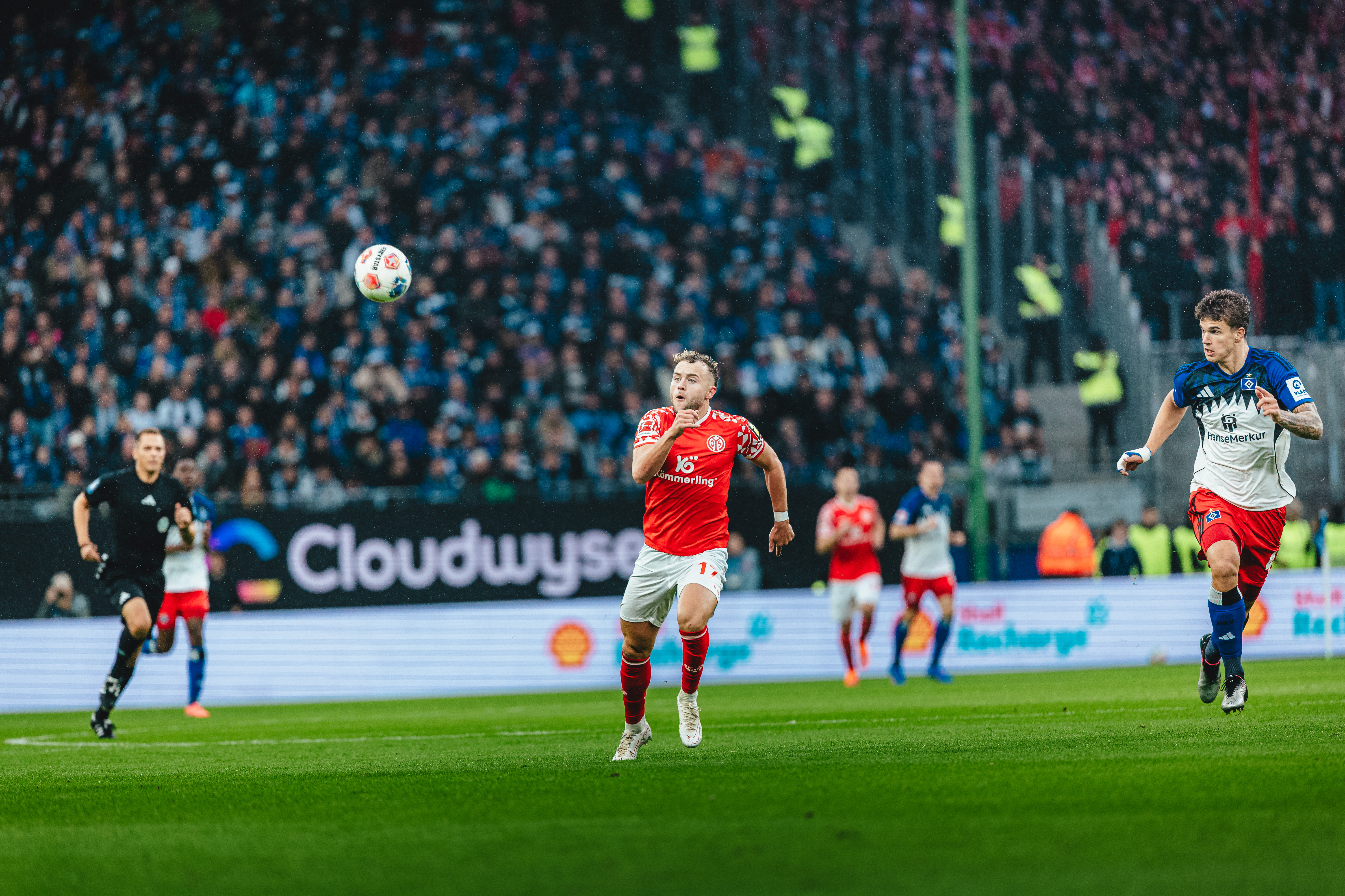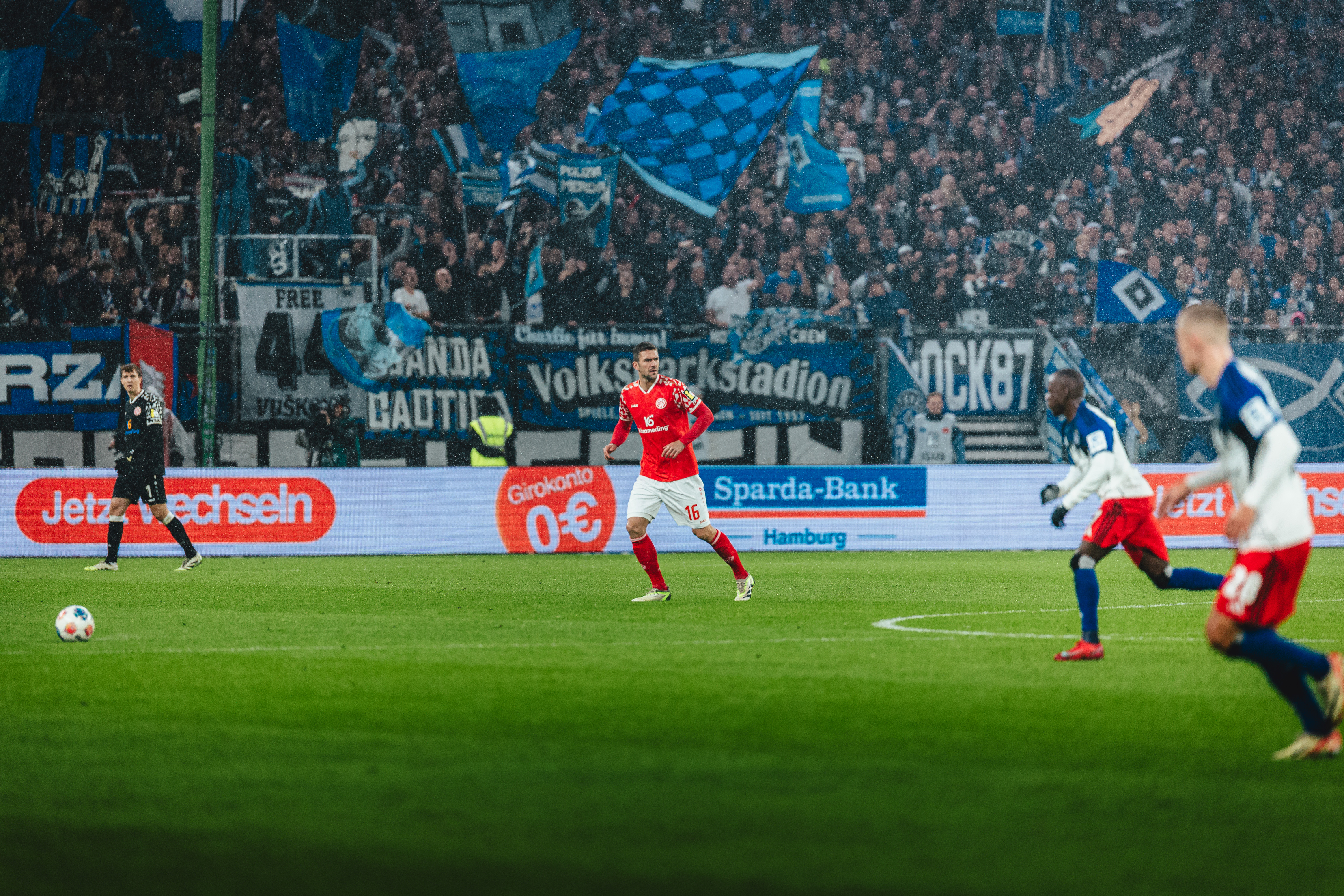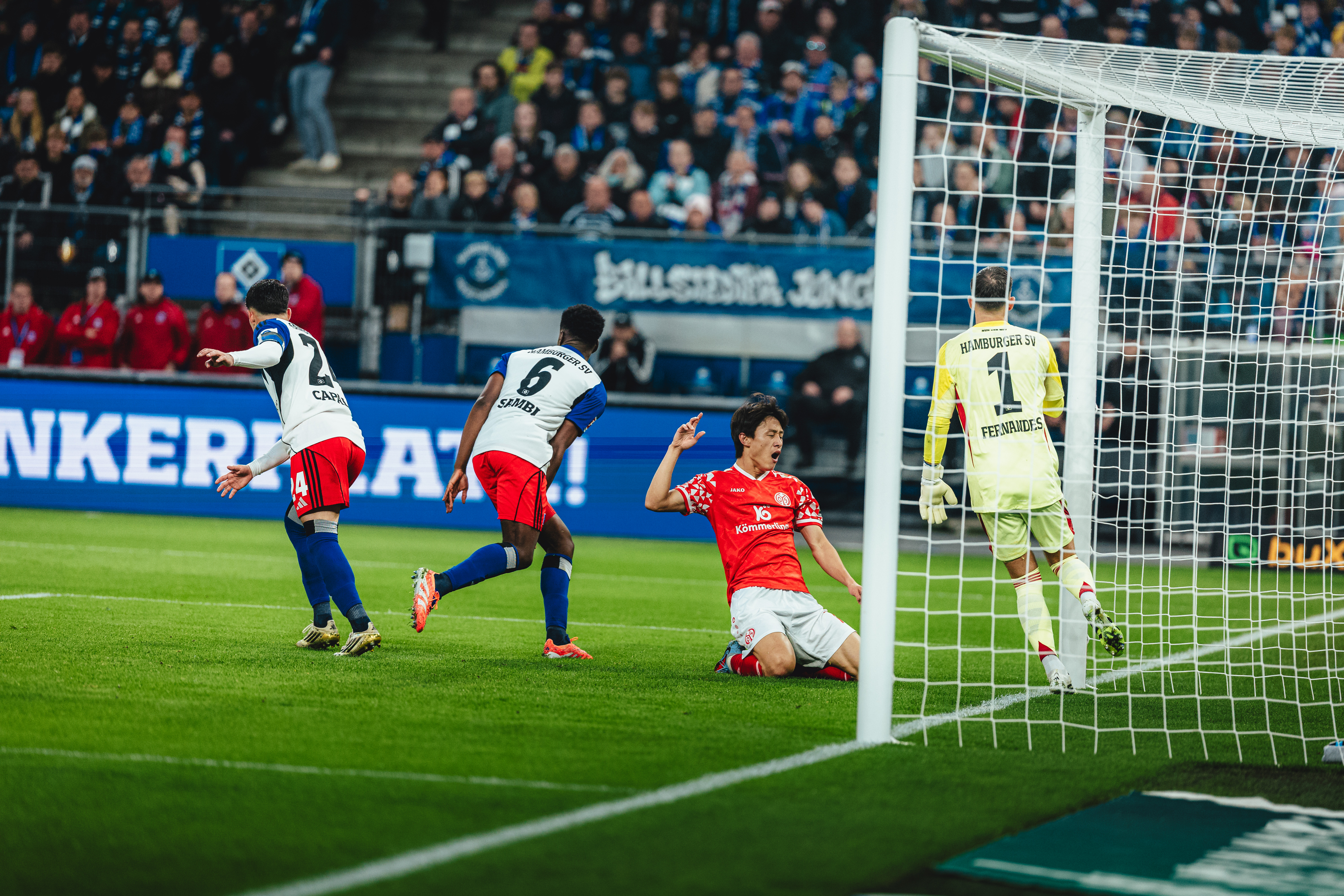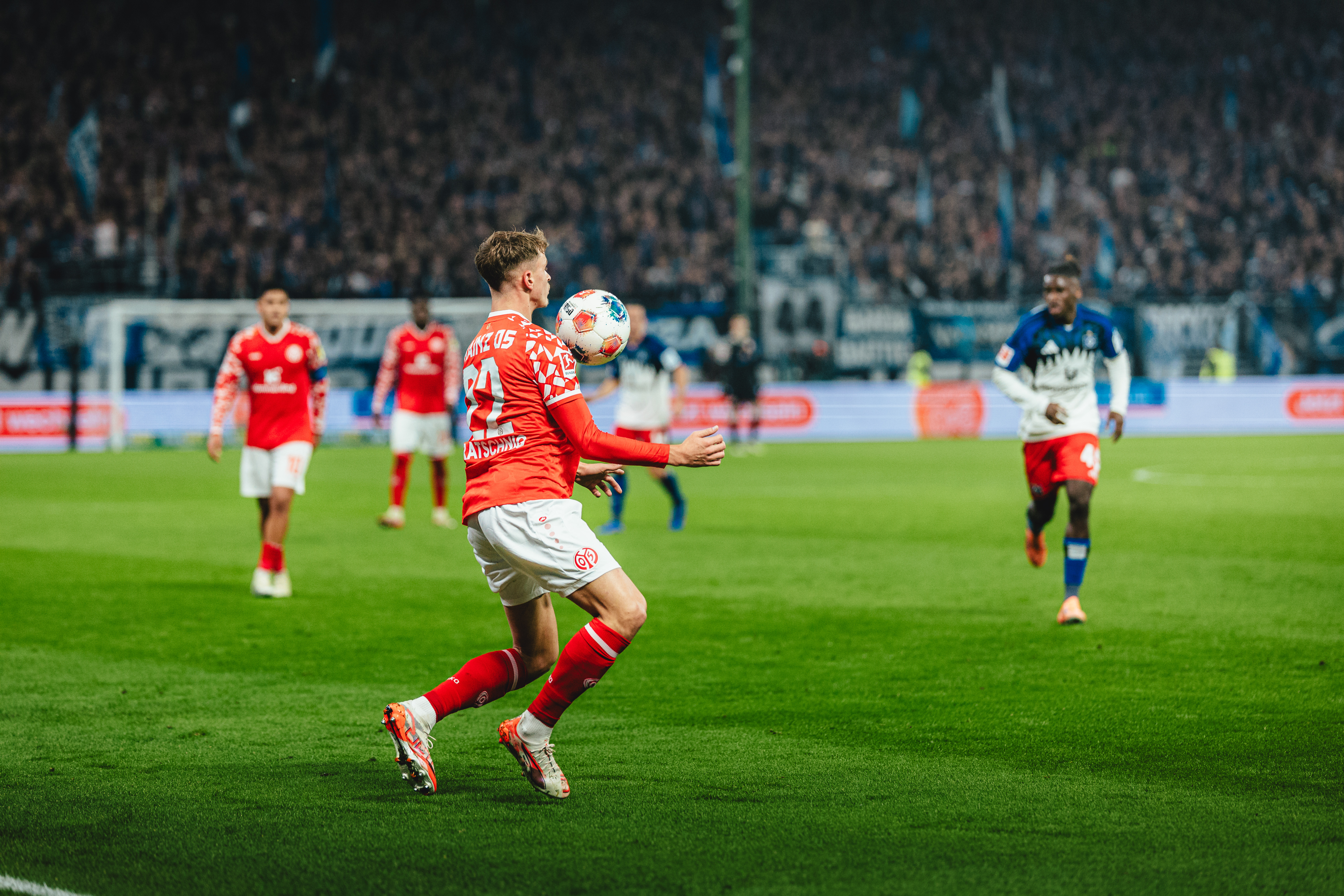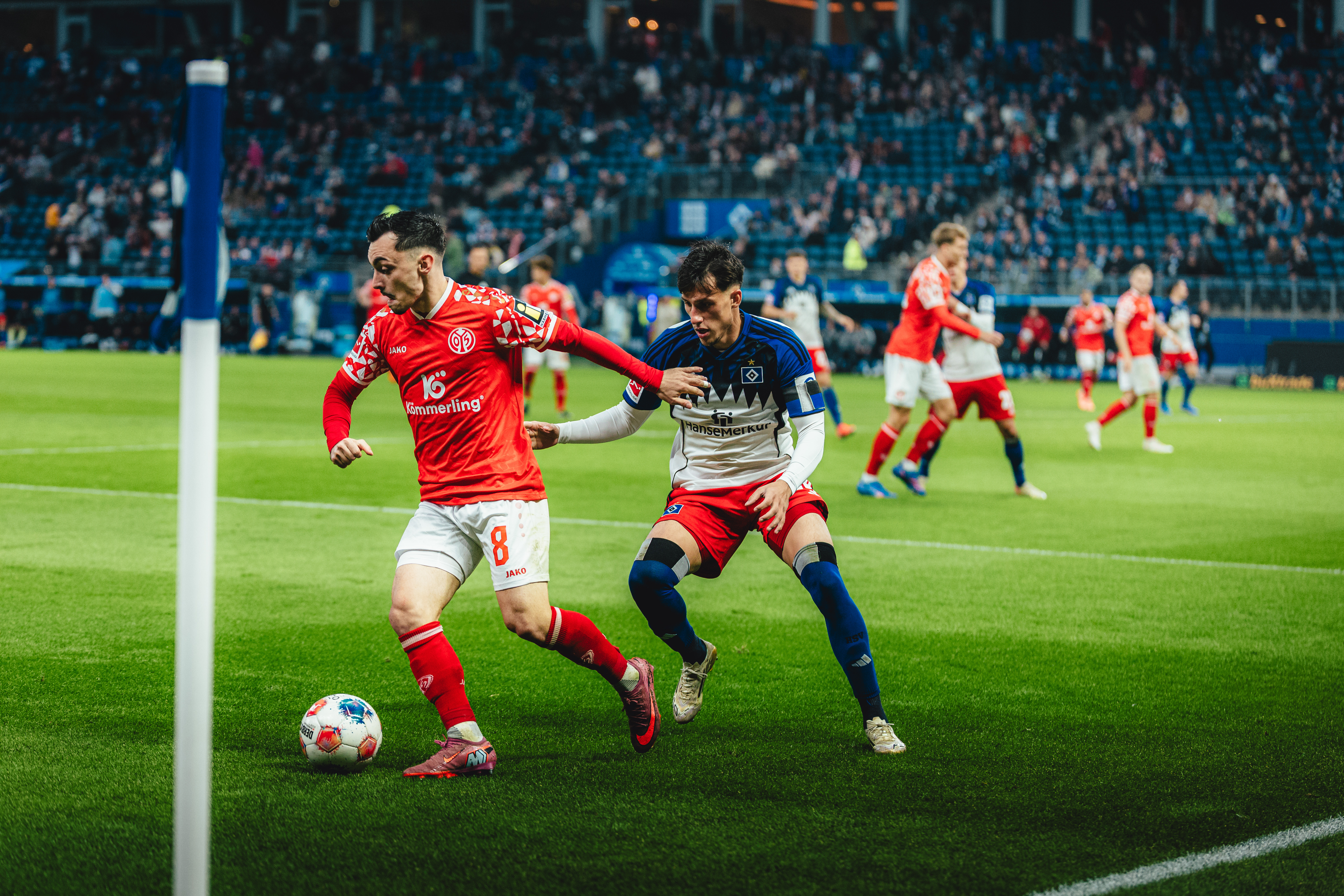 Die erste Torannäherung des FSV ließ bis zur 19. Minute auf sich warten und resultierte aus einem ruhenden Ball: Paul Nebel war 25 Meter vor dem Tor gefoult worden, Nadiem Amiri übernahm die Verantwortung und zwang Daniel Heuer Fernandes zur ersten Parade der Partie. Die Mainzer übernahmen nun immer mehr die Kontrolle, mussten aber auch ins Spiel finden, wenn sie verhindern wollten, dass diese Partie allzu früh entschieden sein würde. Und die Gäste näherten sich an, wenngleich sie mit fast 70 Prozent Ballbesitz zu selten etwas anzufangen wussten. Nach einer halben Stunde spielte der FSV Kaishu Sano kurz vor der Hamburger Strafraumgrenze frei, dessen Schlenzer Heuer Fernandes aber genauso entschärfen, wie einen Nordin-Kopfball sechs Minuten später im Anschluss an eine Hereingabe von Danny da Costa (36.). Die Hamburger agierten zwar deutlich verhaltener als zu Beginn, hatten sich diese komfortable Ausgangslage aber auch erarbeitet. Die Mainzer hatten in der Folge zwar klar mehr vom Spiel gehabt, waren aber zu selten zwingend vors HSV-Tor gekommen und hatten Zielspieler Hollerbach - ihn suchten sie zu häufig per Flugball tief aus der eigenen Hälfte - kaum einmal am Spiel teilhaben lassen. Die Führung der Gastgeber zur Pause war eine verdiente.