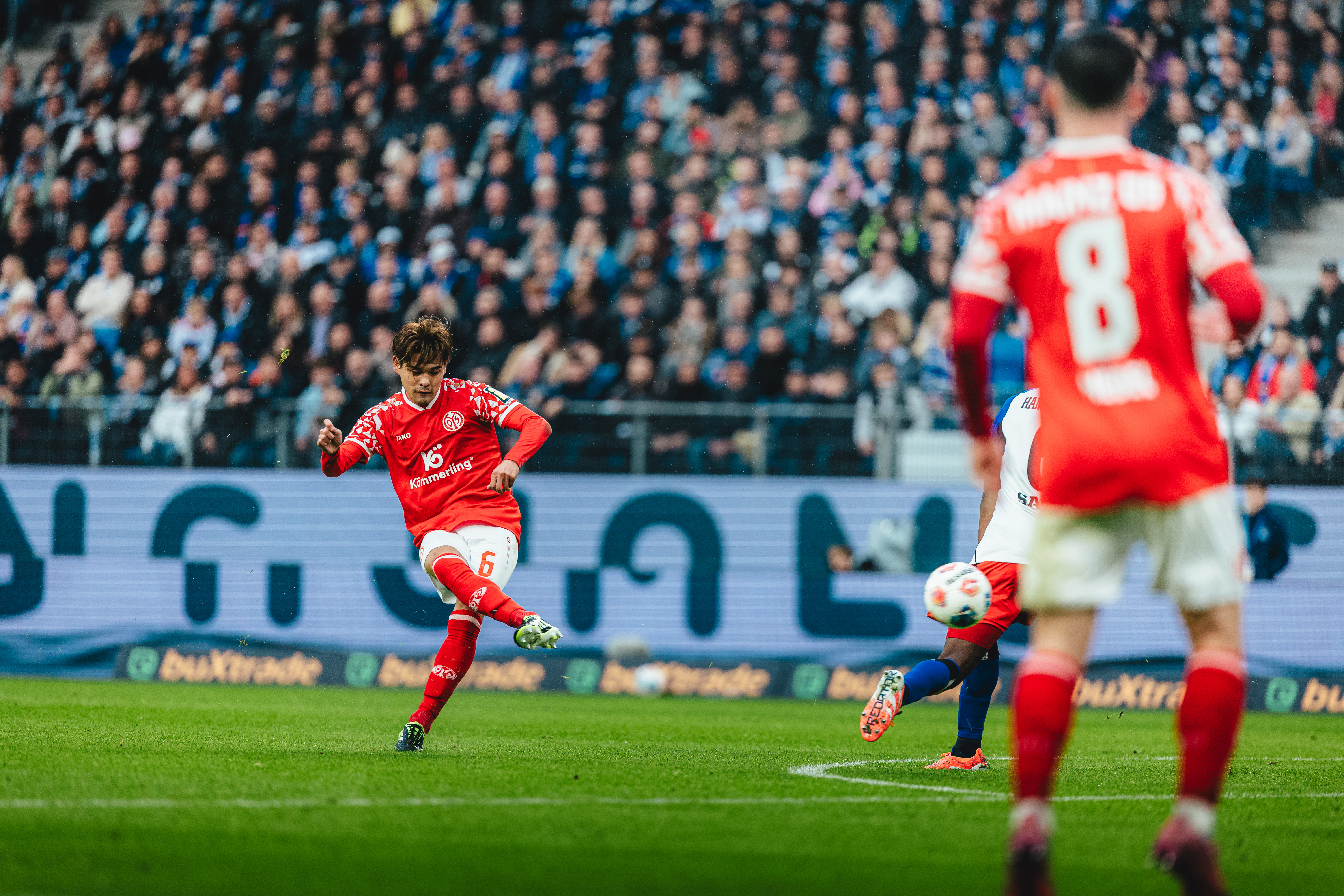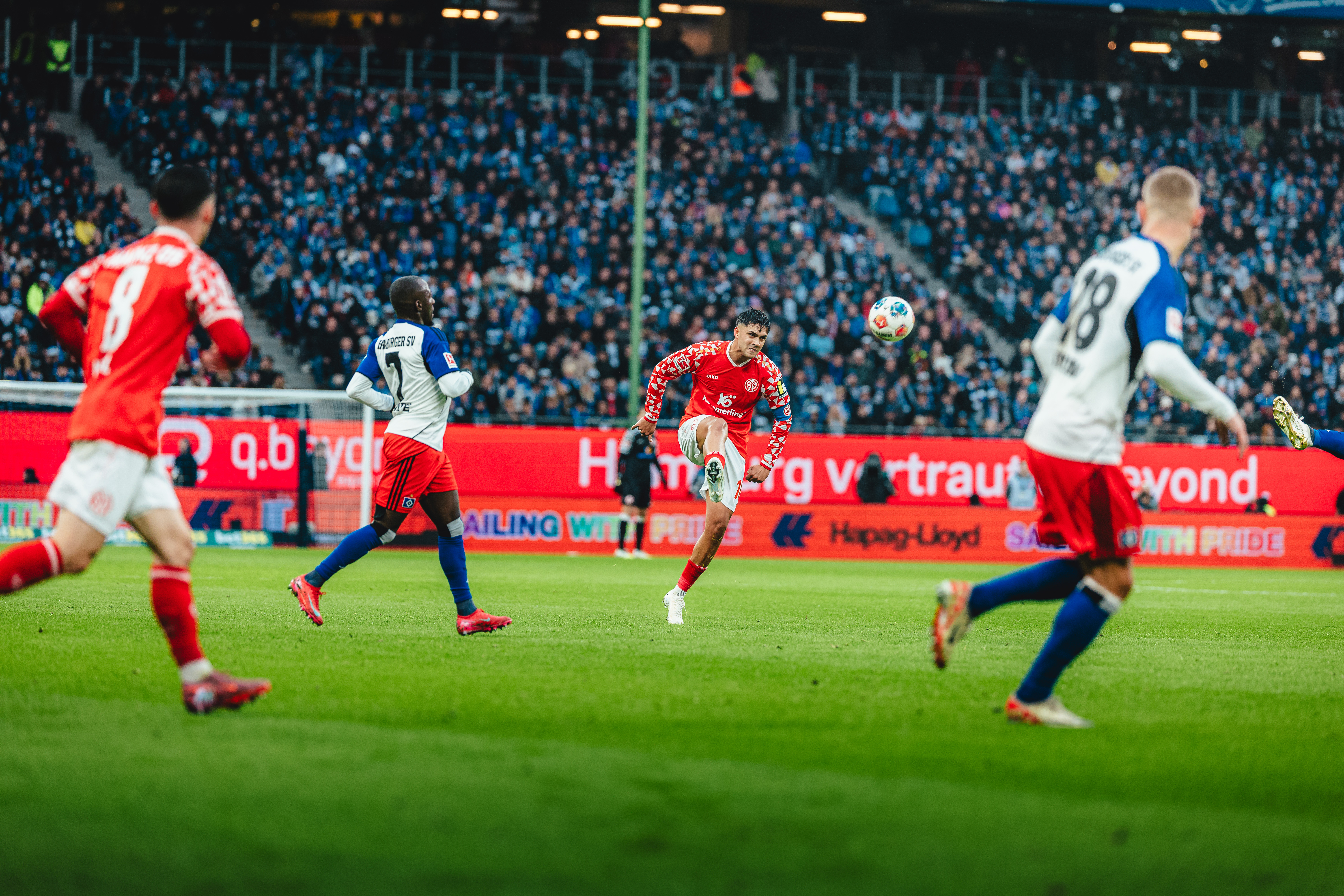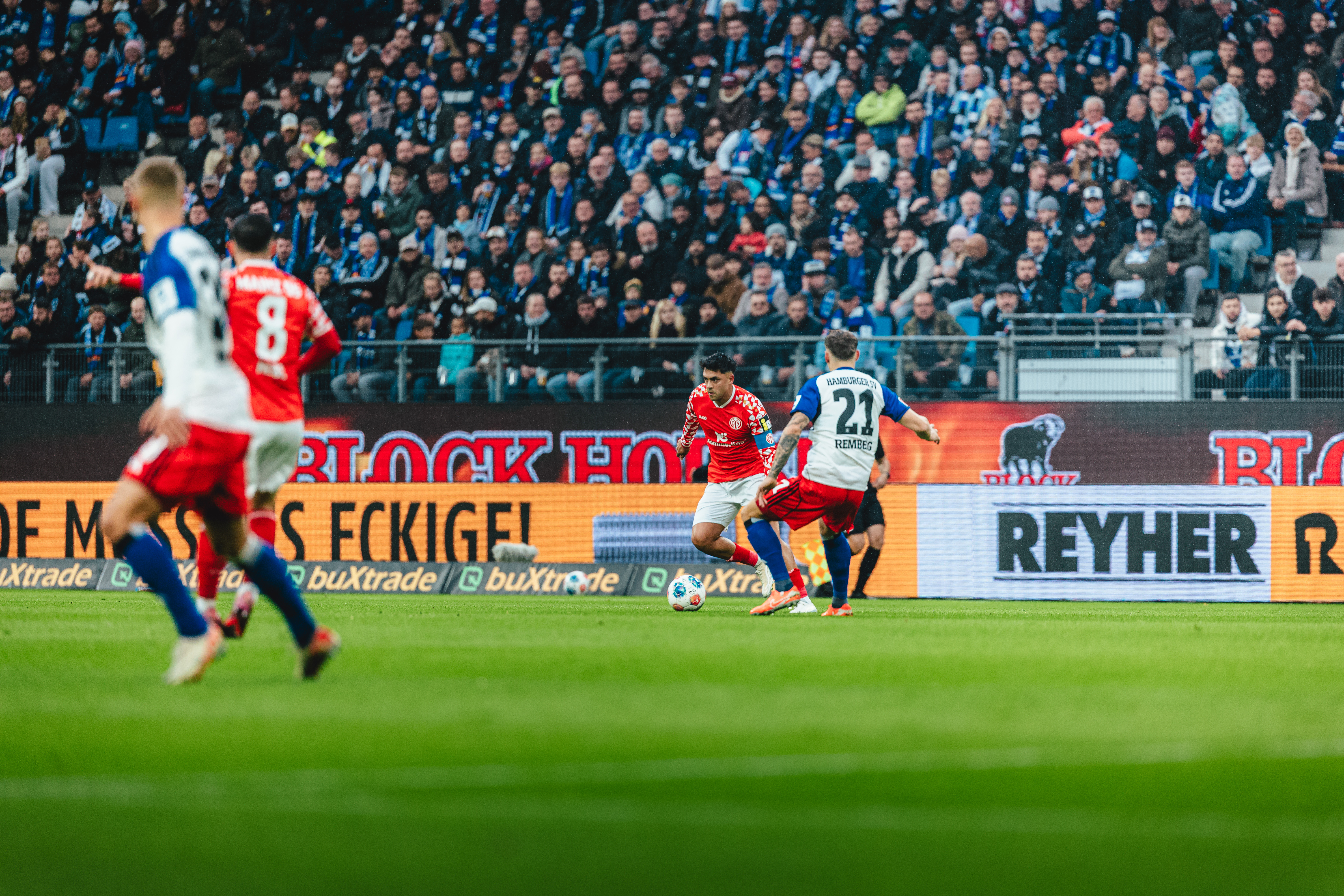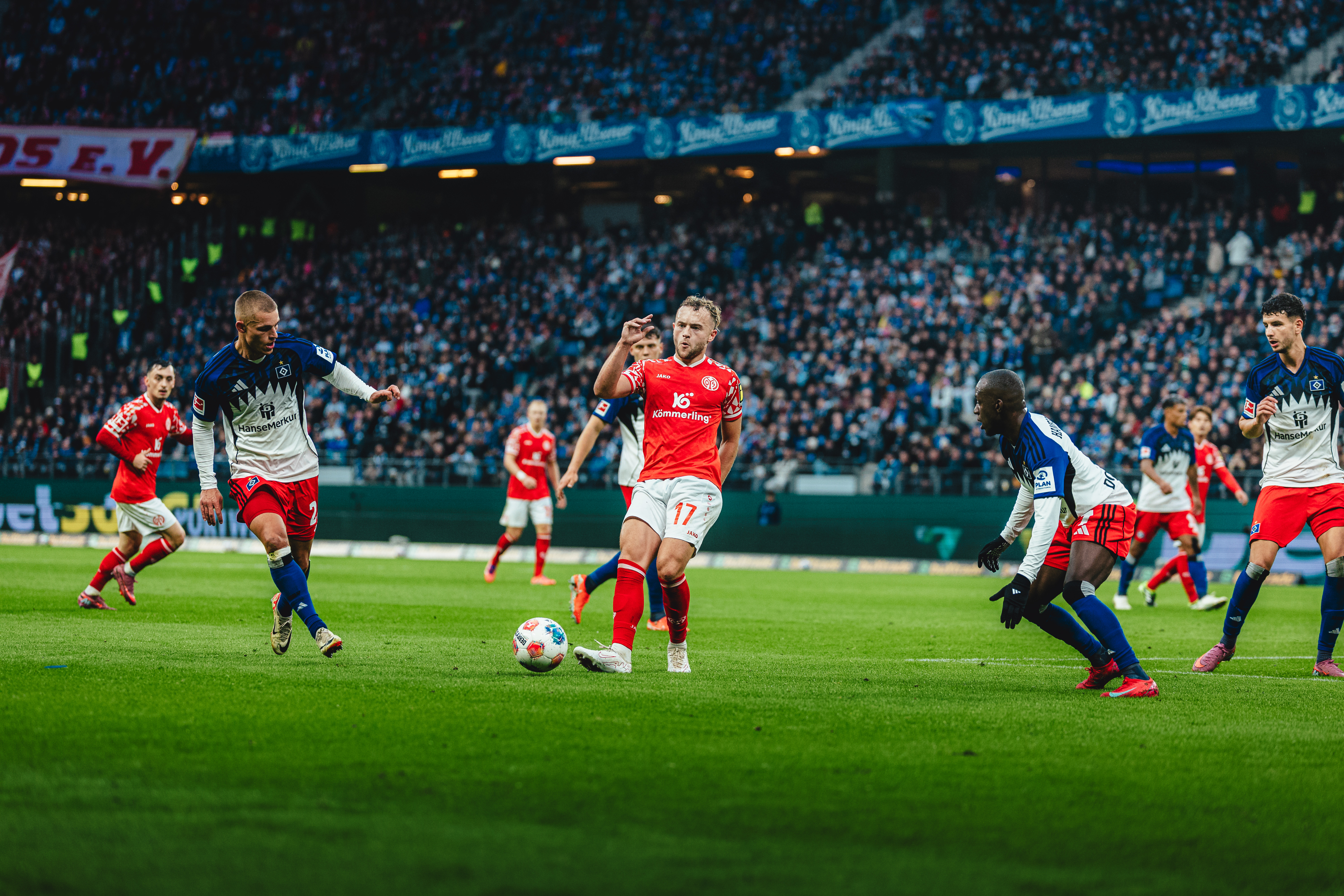 Die erste Torannäherung des FSV ließ bis zur 19. Minute auf sich warten und resultierte aus einem ruhenden Ball: Paul Nebel war 25 Meter vor dem Tor gefoult worden, Nadiem Amiri übernahm die Verantwortung und zwang Daniel Heuer Fernandes zur ersten Parade der Partie. Die Mainzer übernahmen nun immer mehr die Kontrolle, mussten aber auch ins Spiel finden, wenn sie verhindern wollten, dass diese Partie allzu früh entschieden sein würde. Und die Gäste näherten sich an, wenngleich sie mit fast 70 Prozent Ballbesitz zu selten etwas anzufangen wussten. Nach einer halben Stunde spielte der FSV Kaishu Sano kurz vor der Hamburger Strafraumgrenze frei, dessen Schlenzer Heuer Fernandes aber genauso entschärfen, wie einen Nordin-Kopfball sechs Minuten später im Anschluss an eine Hereingabe von Danny da Costa (36.). Die Hamburger agierten zwar deutlich verhaltener als zu Beginn, hatten sich diese komfortable Ausgangslage aber auch erarbeitet. Die Mainzer hatten in der Folge zwar klar mehr vom Spiel gehabt, waren aber zu selten zwingend vors HSV-Tor gekommen und hatten Zielspieler Hollerbach - ihn suchten sie zu häufig per Flugball tief aus der eigenen Hälfte - kaum einmal am Spiel teilhaben lassen. Die Führung der Gastgeber zur Pause war eine verdiente.