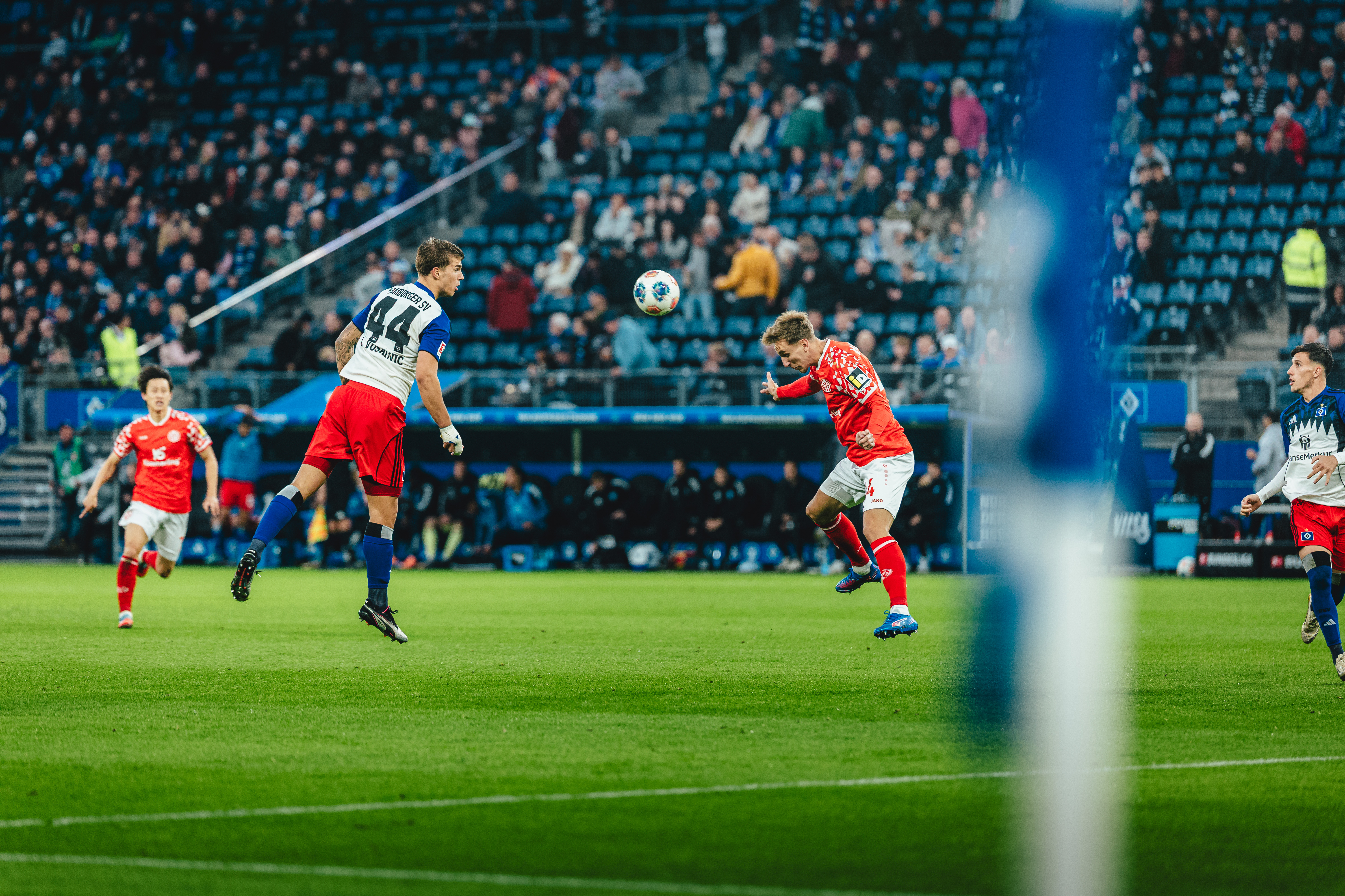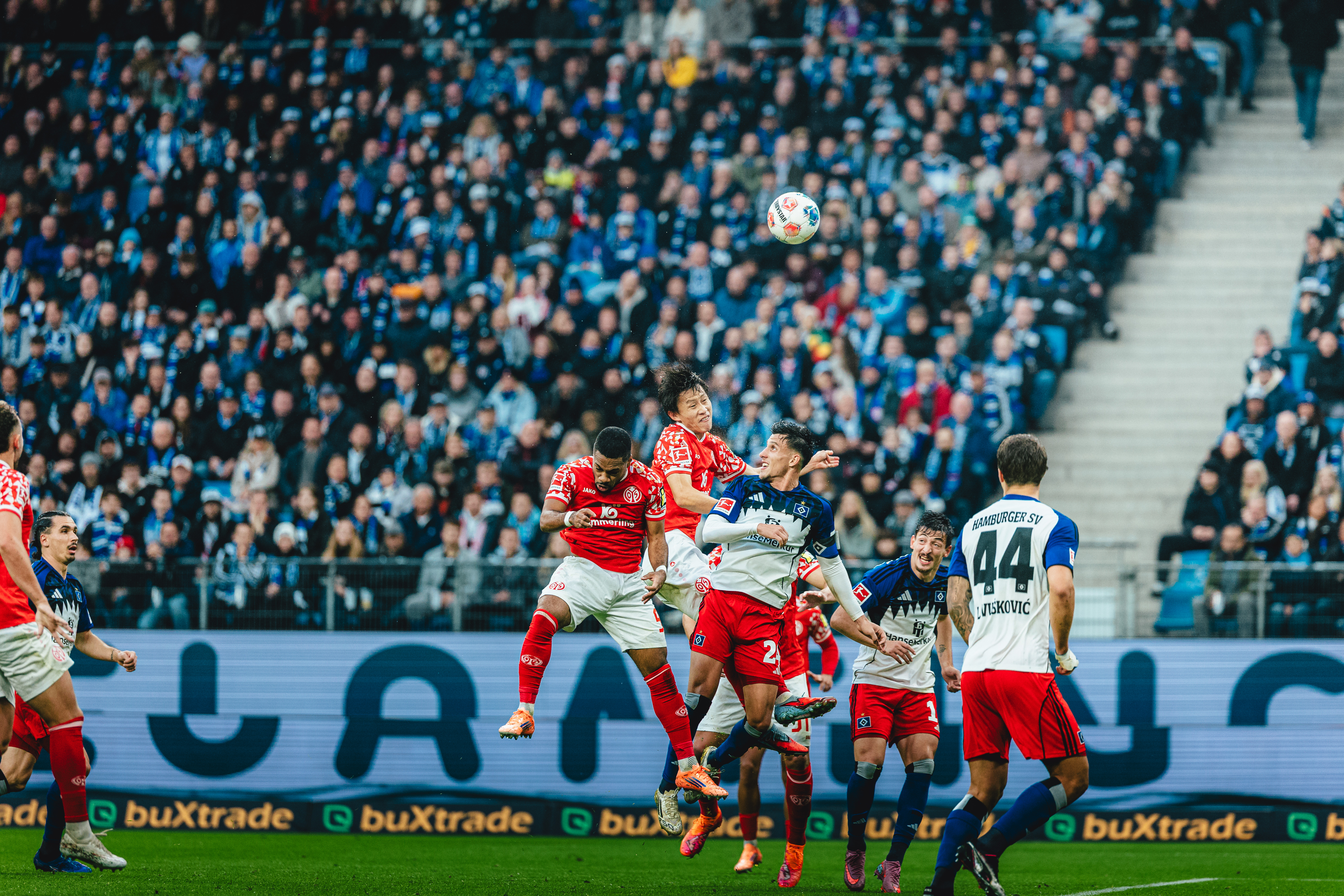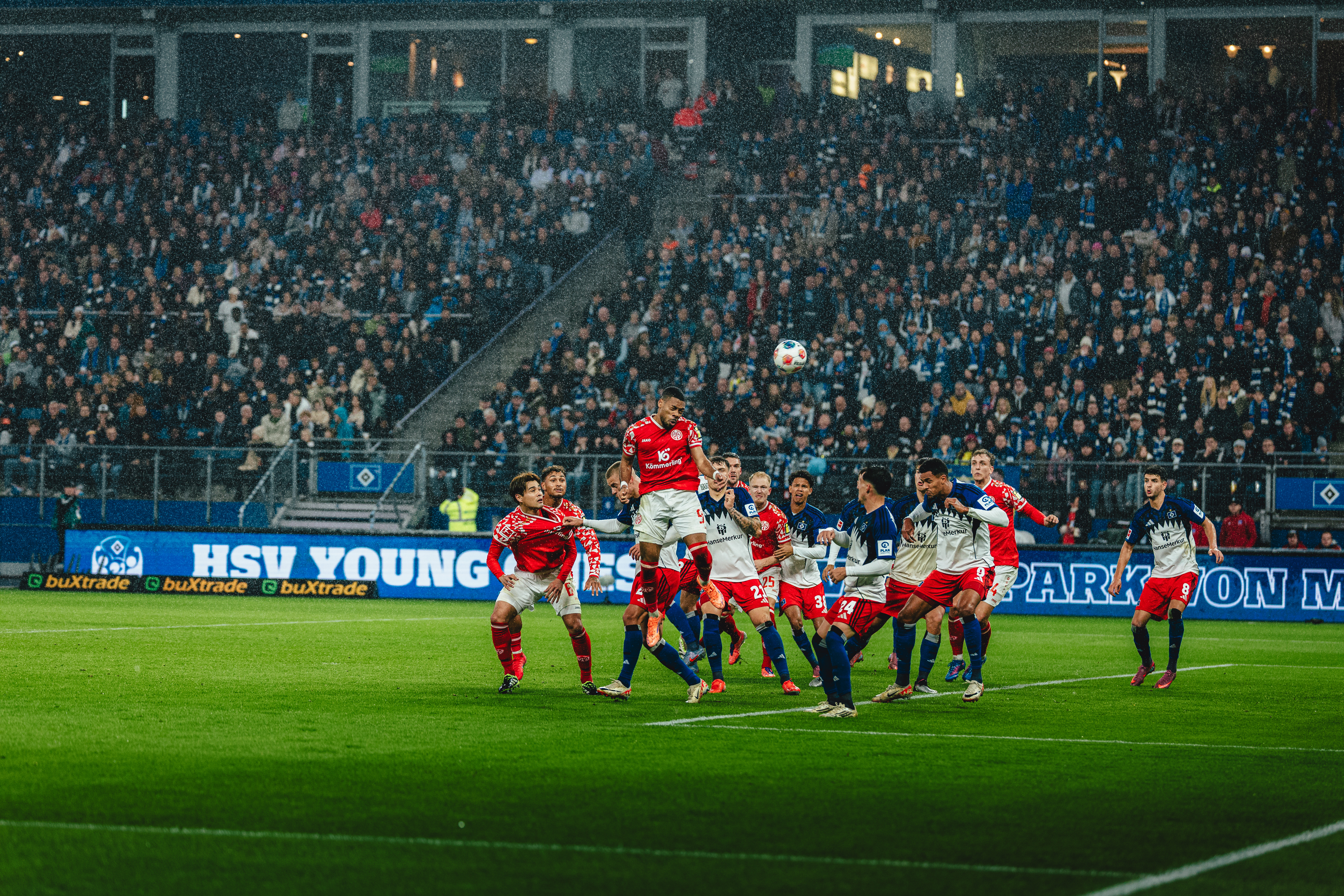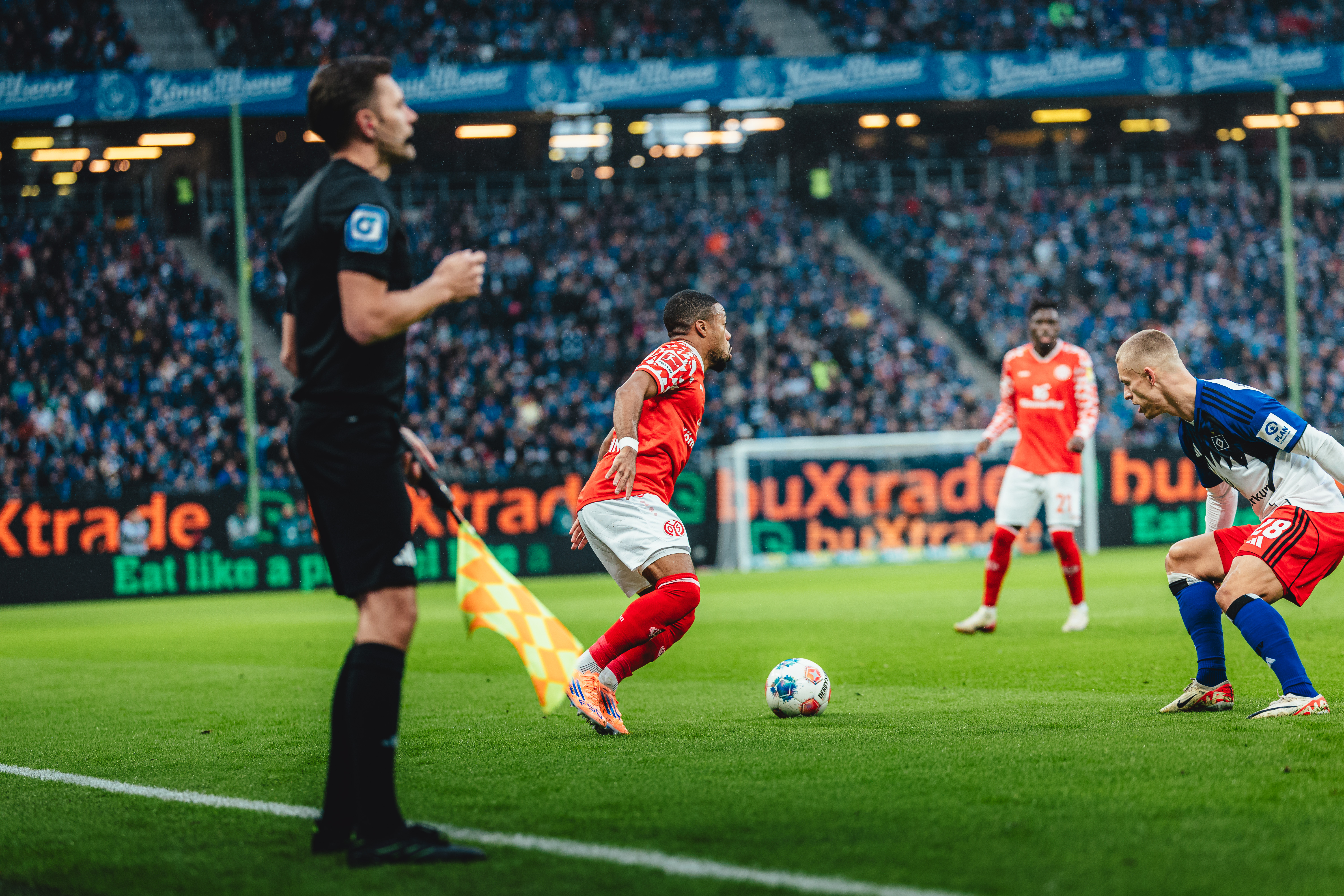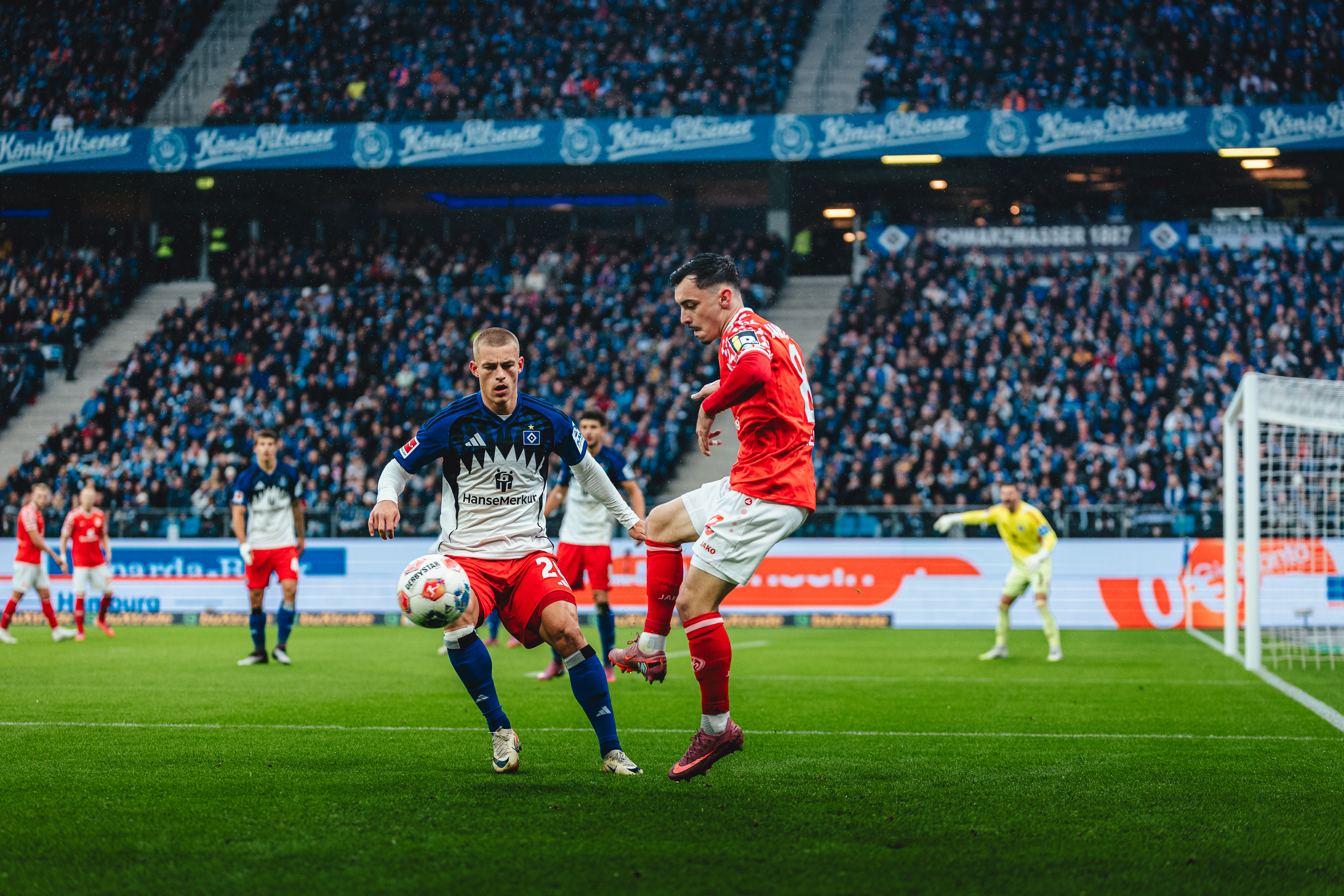 Die erste Torannäherung des FSV ließ bis zur 19. Minute auf sich warten und resultierte aus einem ruhenden Ball: Paul Nebel war 25 Meter vor dem Tor gefoult worden, Nadiem Amiri übernahm die Verantwortung und zwang Daniel Heuer Fernandes zur ersten Parade der Partie. Die Mainzer übernahmen nun immer mehr die Kontrolle, mussten aber auch ins Spiel finden, wenn sie verhindern wollten, dass diese Partie allzu früh entschieden sein würde. Und die Gäste näherten sich an, wenngleich sie mit fast 70 Prozent Ballbesitz zu selten etwas anzufangen wussten. Nach einer halben Stunde spielte der FSV Kaishu Sano kurz vor der Hamburger Strafraumgrenze frei, dessen Schlenzer Heuer Fernandes aber genauso entschärfen, wie einen Nordin-Kopfball sechs Minuten später im Anschluss an eine Hereingabe von Danny da Costa (36.). Die Hamburger agierten zwar deutlich verhaltener als zu Beginn, hatten sich diese komfortable Ausgangslage aber auch erarbeitet. Die Mainzer hatten in der Folge zwar klar mehr vom Spiel gehabt, waren aber zu selten zwingend vors HSV-Tor gekommen und hatten Zielspieler Hollerbach - ihn suchten sie zu häufig per Flugball tief aus der eigenen Hälfte - kaum einmal am Spiel teilhaben lassen. Die Führung der Gastgeber zur Pause war eine verdiente.