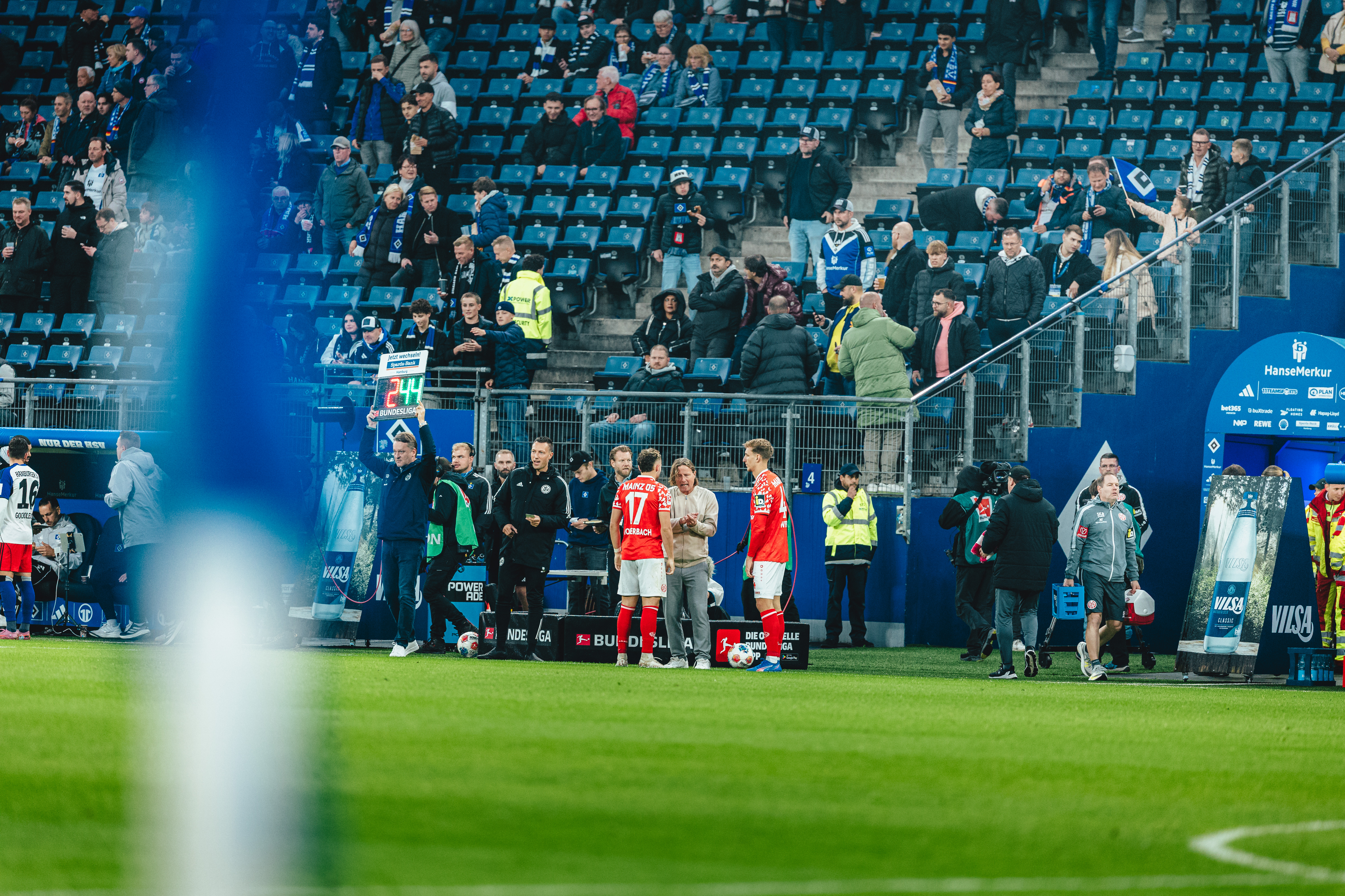 Mit Wiederbeginn reagierte Bo Henriksen und brachte Nelson Weiper für Phillipp Mwene. Was bedeutete, das Nebel den rechten Flügel übernahm, während Nordin auf links rückte. Die ersten Chancen sollten trotz der offensiveren Ausrichtung die Gastgeber haben. Zunächst scheiterte Philippe an Rieß (48.), zwei Minuten später jagte Dompé den Ball übers Tor. Immer wieder ging es blitzschnell durch die teils verwaiste Mitte, der FSV fand selten Mittel und konnte so auch den dritten Einschlag nicht verhindern. Dompé hatte auf rechts viel Zeit und Raum, zog aus spitzem Winkel ab und traf unter den Querbalken zum 3:0 (52.). Der 05-Plan aus der Pause war längst über den Haufen geworfen worden. Zeit blieb dennoch, um zurückzufinden. Wenig später flankte Nebel scharf vors Tor, doch Lee verpasste die Hereingabe um Zentimeter (53.). Es schien ein komplett gebrauchter Abend für alle Rot-Weißen zu werden - was sich nach spätestens 60 Minuten bestätigen sollte. Hamburg konterte, Philippe startete aus der eigenen Hälfte und überwand Rieß schließlich per Lupfer (60.). Danach kamen Bell für Kohr und Sieb für Hollerbach. An eine Aufholjagd glaubte aber wohl niemand mehr ernsthaft. Und dazu sollte es in der letzten halben Stunde auch nicht mehr kommen. Einige Halbchancen auf beiden Seiten hatten lediglich statistischen Wert.