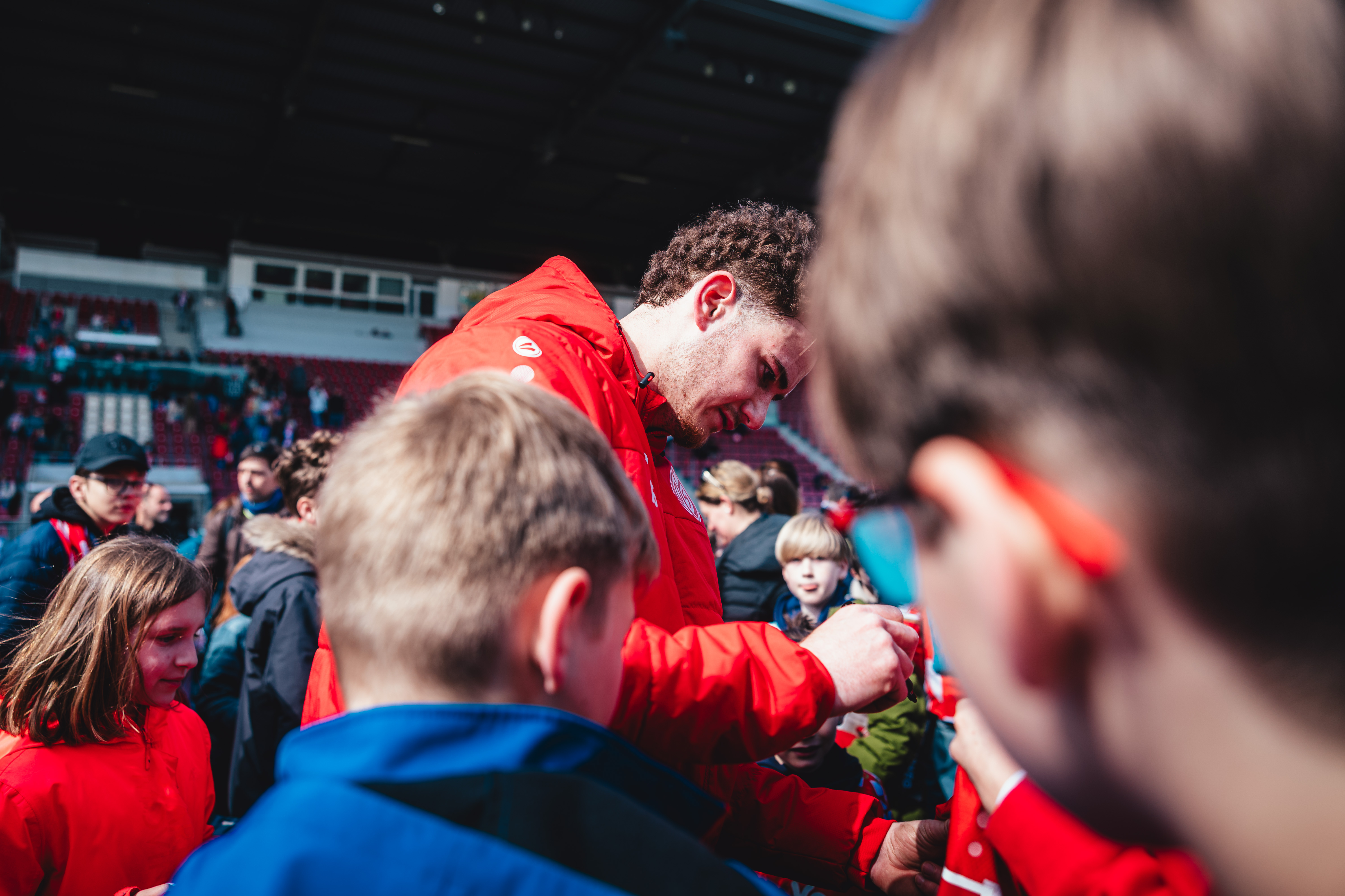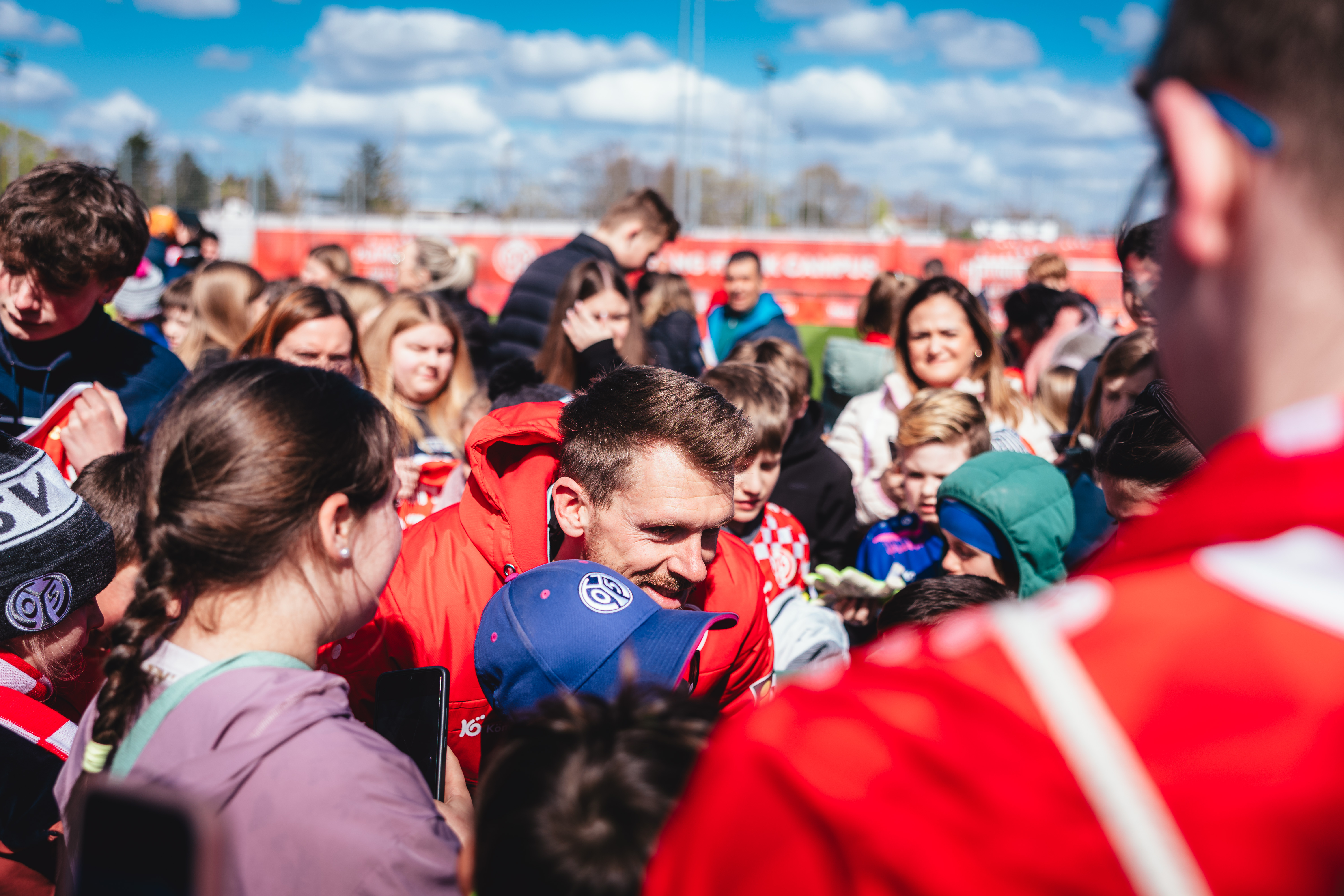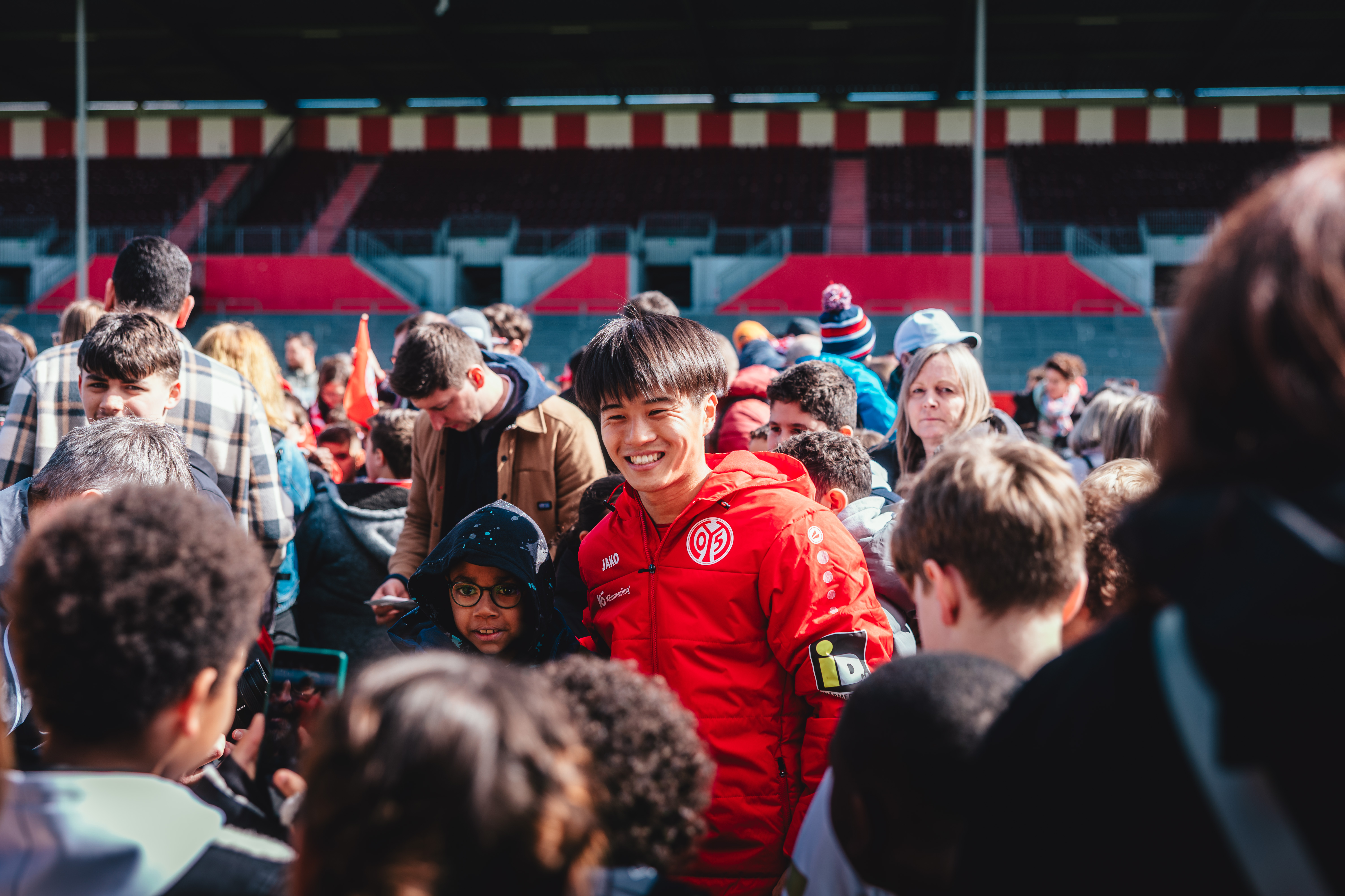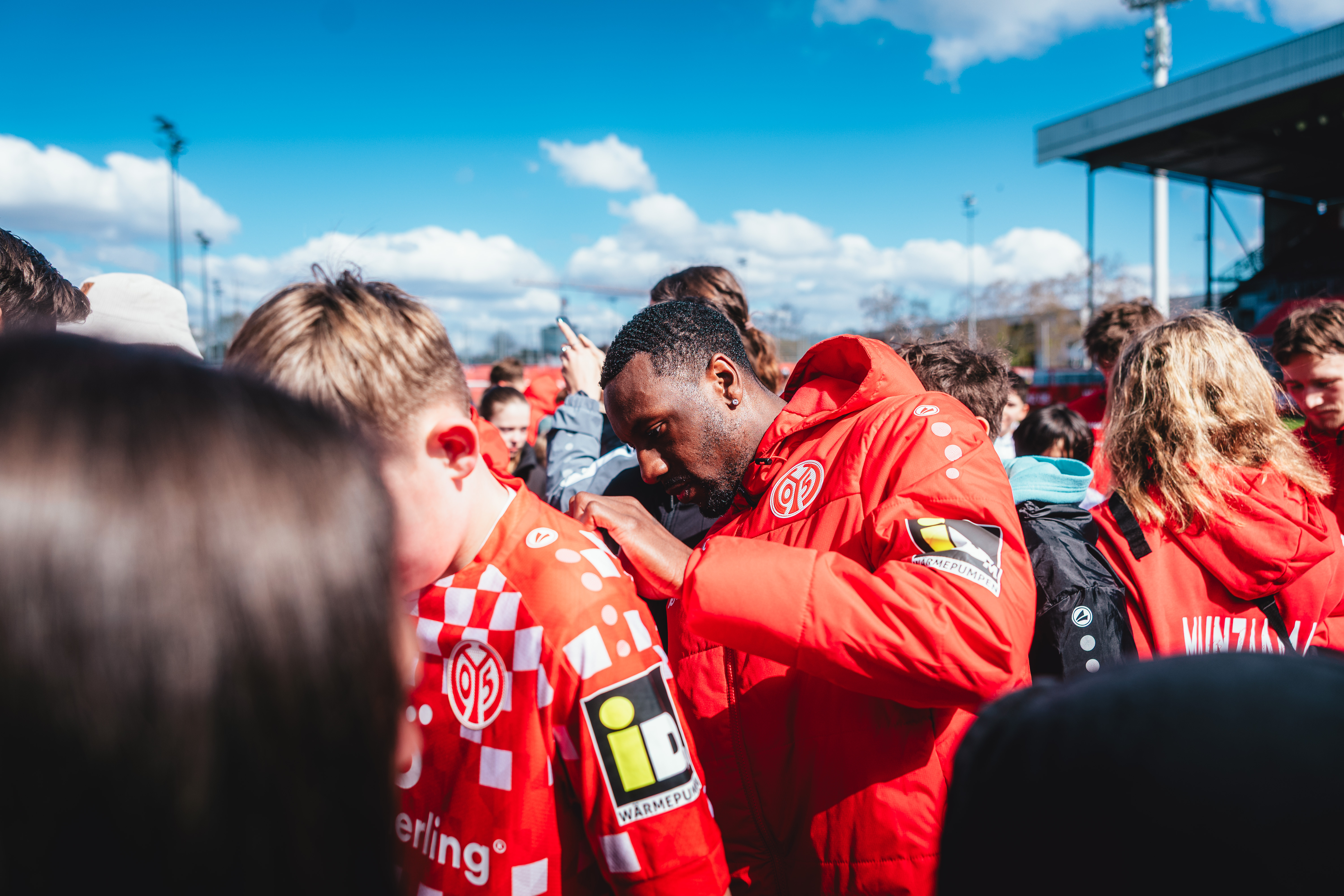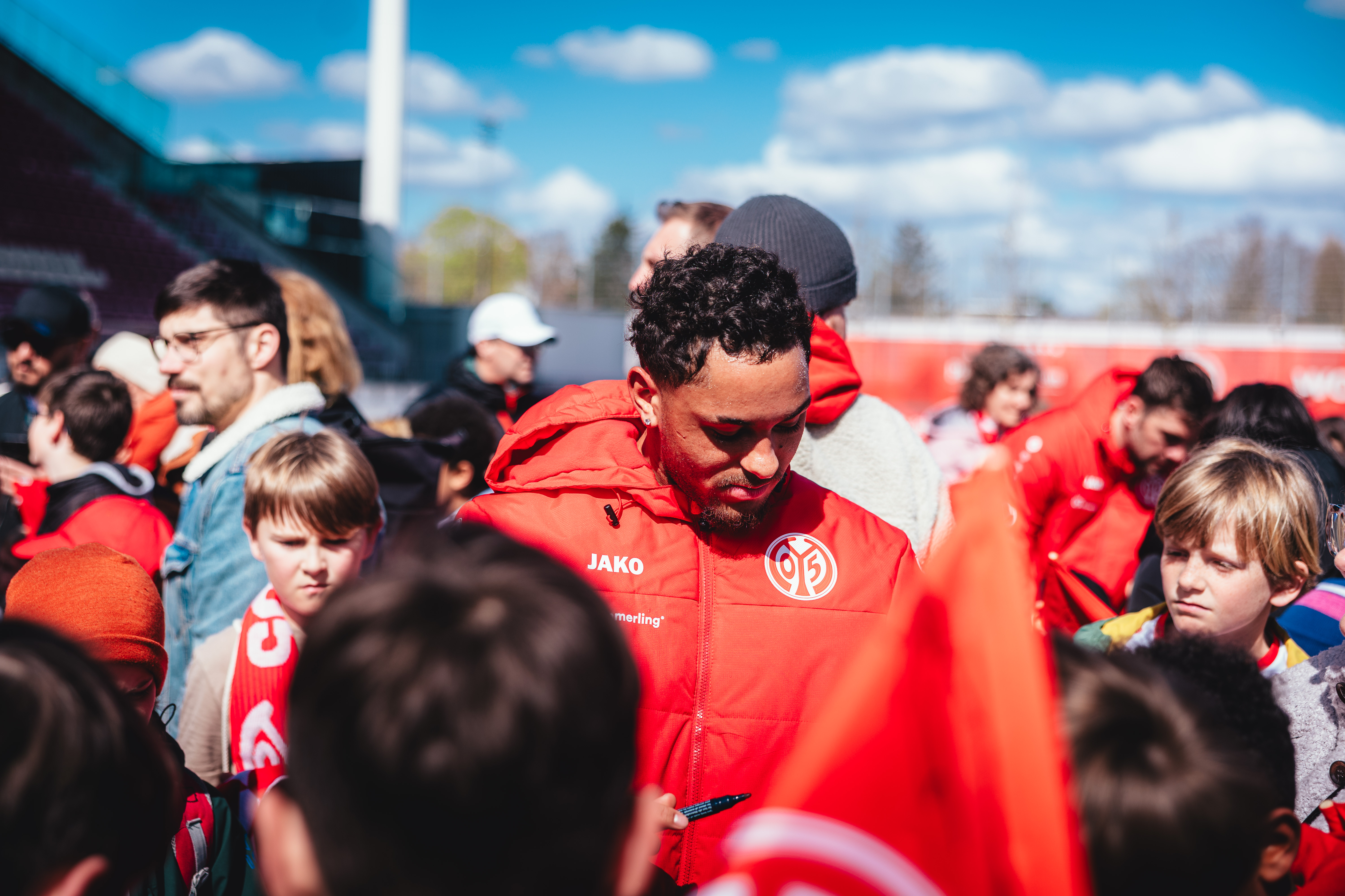Den krönenden Abschluss bildete wie üblich der direkte Kontakt zu den Mainzer Spielern: Nach der Einheit durften alle Kinder das Spielfeld stürmen, um sich von ihren Vorbildern Autogramme und Selfies zu sichern, wofür sich die Profis der Rheinhessen viel Zeit nahmen und bemüht waren, alle Wünsche zu erfüllen. Auch in diesem Jahr sorgte der Kidstag am Bruchweg für zahlreiche strahlende Kinderaugen und eine unvergessliche Zeit in der Heimat des FSV.