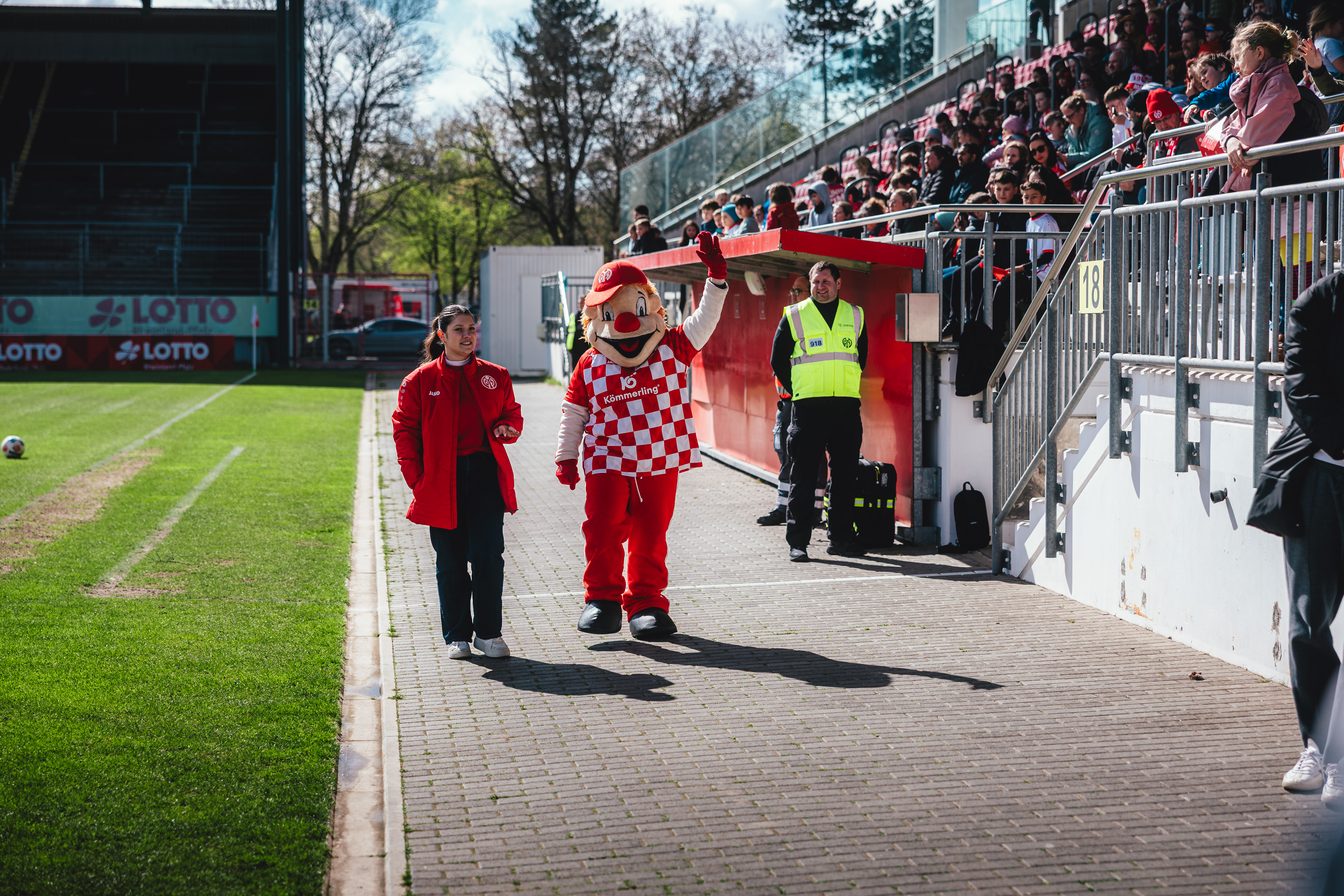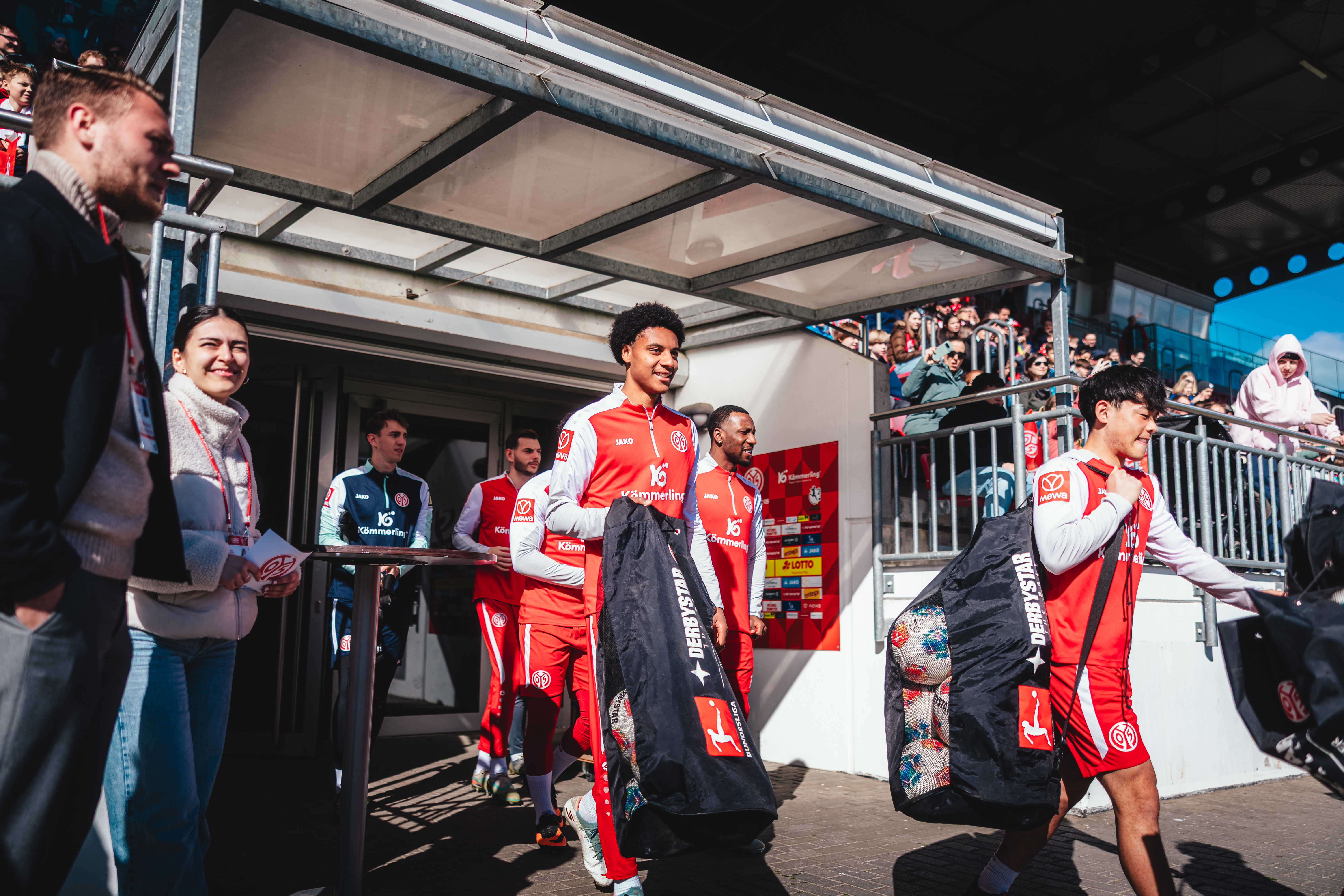 Wie bereits in den vergangenen Jahren hat der 05ER Kidsday am Bruchweg auch dieses Mal bei frühlingshaften Temperaturen stattgefunden und bei den zahlreichen Besuchern am WOLFGANG FRANK CAMPUS für unzählige große, glückliche Augen gesorgt. Auf die jungen 05-Fans wartete zunächst ein abwechslungsreiches Rahmenprogramm zwischen Stadion und Kunstrasenplätzen: Eine Hüpfburg, Kinderschminken, die Bum Bum Ballerbox und ein Dribbelparcours sowie Goodie-bags für die kleinen Gäste ließen keine Wünsche offen, an der eSports Gamingstation konnte zudem das Geschick am Controller beim EA FC zocken unter Beweis gestellt werden.