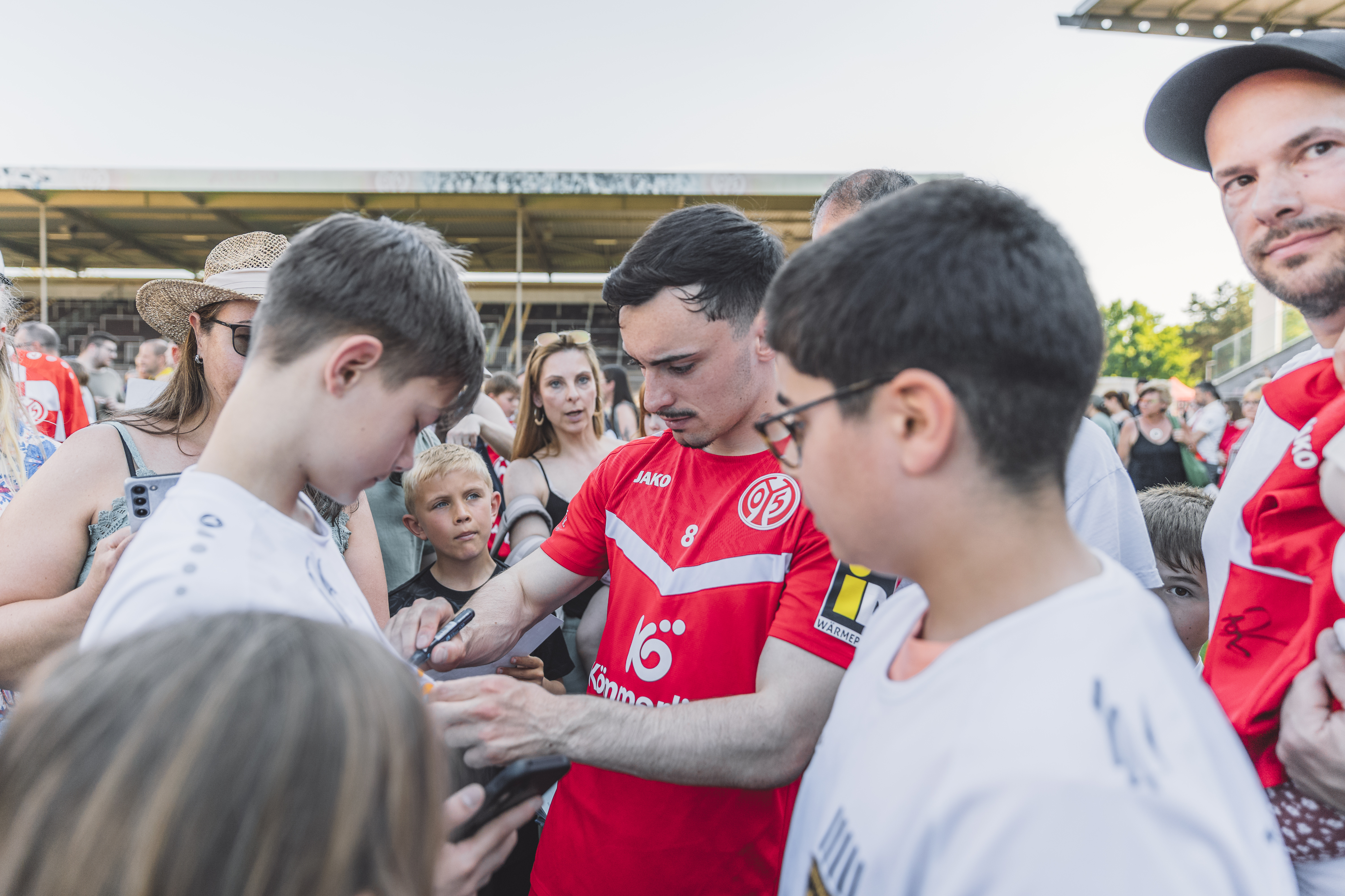 Nach der öffentlichen Trainingseinheit stehen die 05ER um Kapitän Silvan Widmer für Autogramme und Fotos bereit.