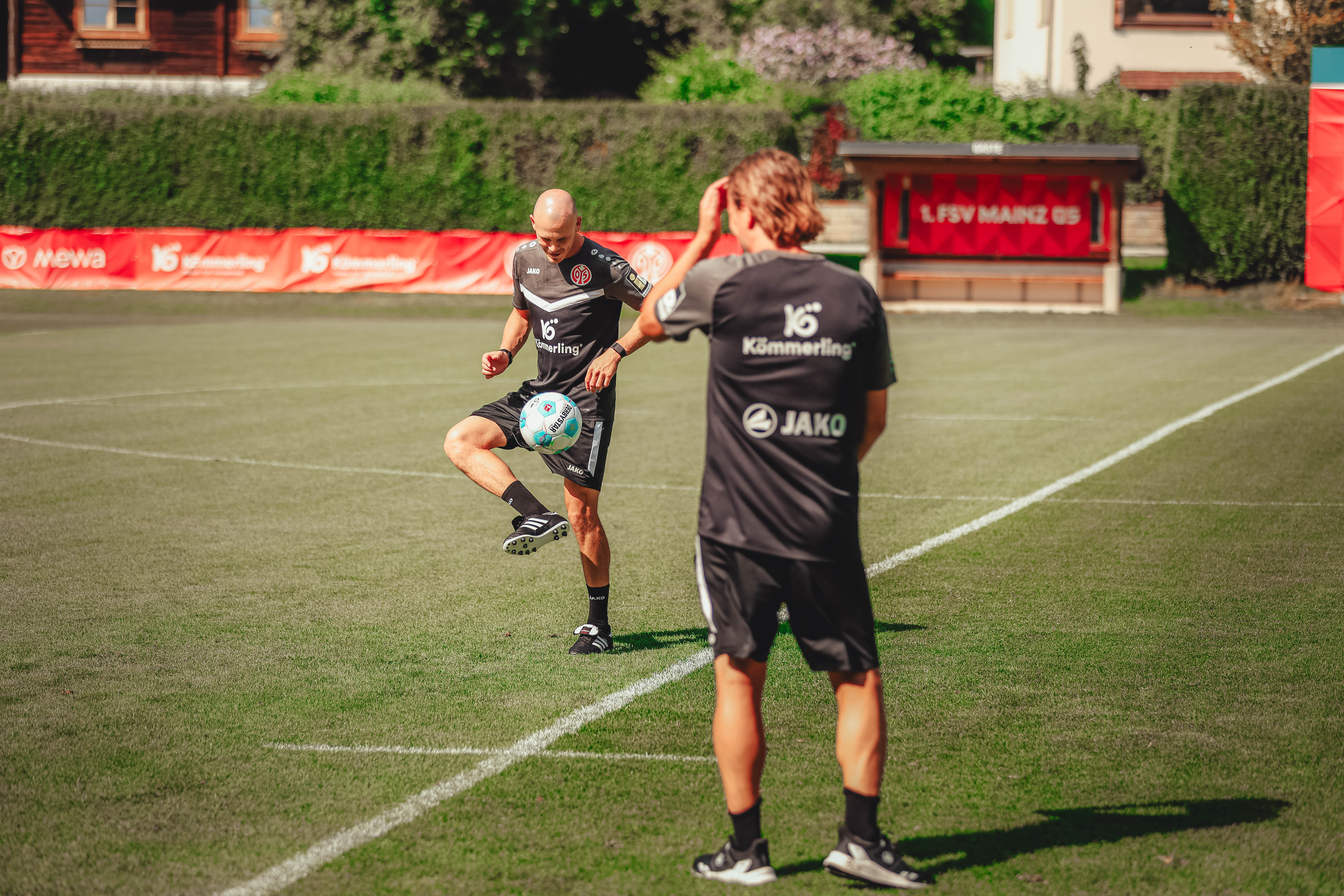 Nach einem kurzen Mittagessen rief Henriksen seinen Kader, dem mit Torhüter Max Kinzig, Verteidiger Philipp Schulz sowie den Mittelfeldspielern Daniel Gleiber und Jason Amann auch vier U23-Spieler angehören, bereits zur ersten Trainingseinheit auf dem wunderschön gelegenen Gelände des FC Bruckhäusl im nahegelegen Kirchbichl. Der japanische Neuzugang Kaishu Sano reist, nach den gegen ihn eingestellten Ermittlungen, am Donnerstag an. Neben den täglichen Trainingseinheiten ist aktuell auch ein Testspiel geplant. Am kommenden Freitag, 2. August um 15 Uhr treten die 05ER gegen Bundesliga-Aufsteiger Holstein Kiel an. Die Partie wird über 3 x 45 Minuten in der Silberstadt Arena in Schwaz im Inntal ausgetragen. Hier gibt's alle Infos für die 05-Anhänger vor Ort.