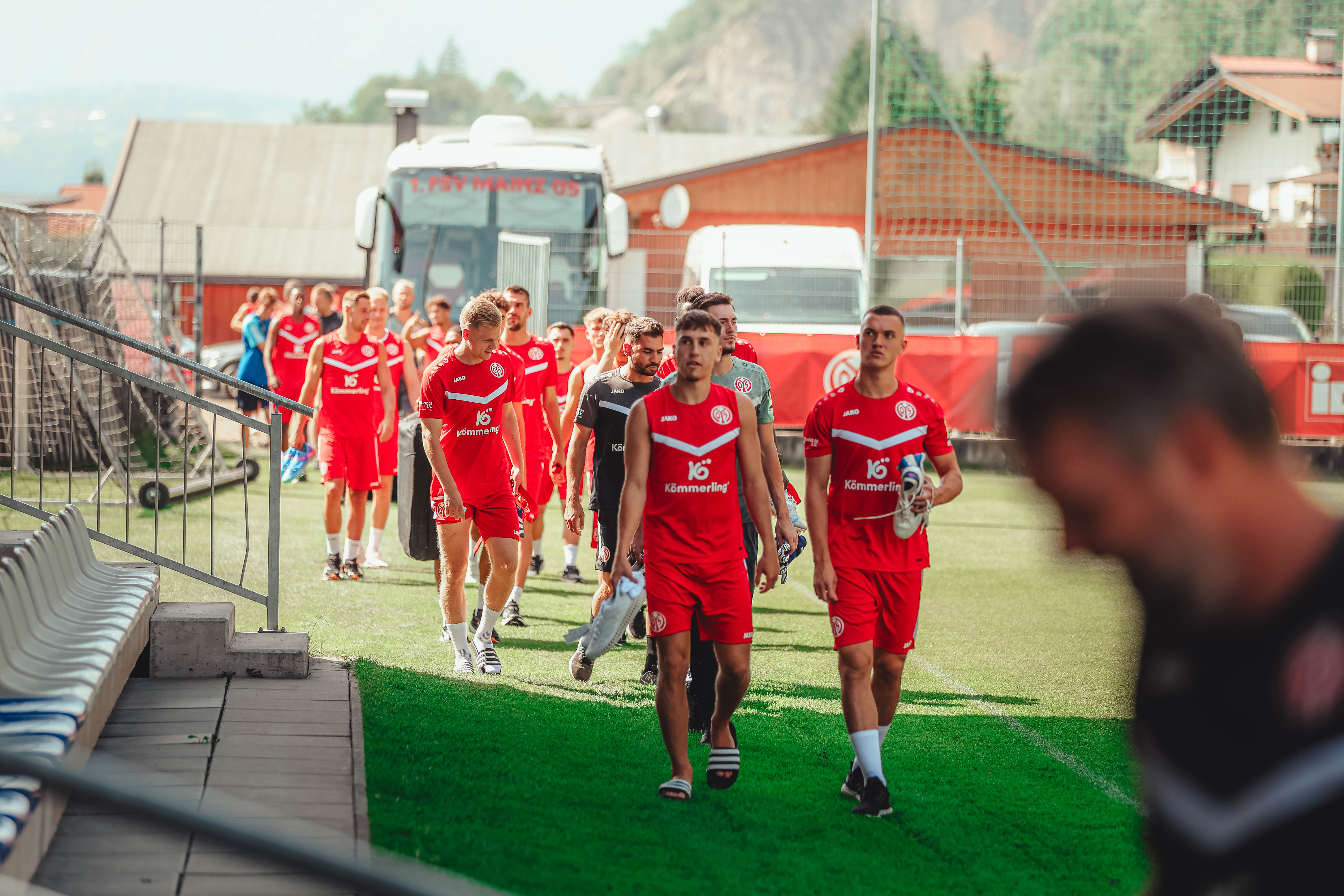 Um 7 Uhr in der Früh war Treffpunkt am Bruchweg, gegen 14 Uhr kamen die Profis von Mainz 05 an ihrem Ziel an. Eine Woche lang beherbergt das "Hohe Salve Sportresort", welches zur familiengeführten Tiroler Unternehmensgruppe Pletzer gehört, im Tiroler Brixental den 05-Tross. Sieben Tage lang werden sich die 05ER um ihren Cheftrainer Bo Henriksen intensiv vorbereiten auf die neue Saison, die am Freitag, 16.8. mit der ersten DFB-Pokalrunde beim SV Wehen Wiesbaden startet.