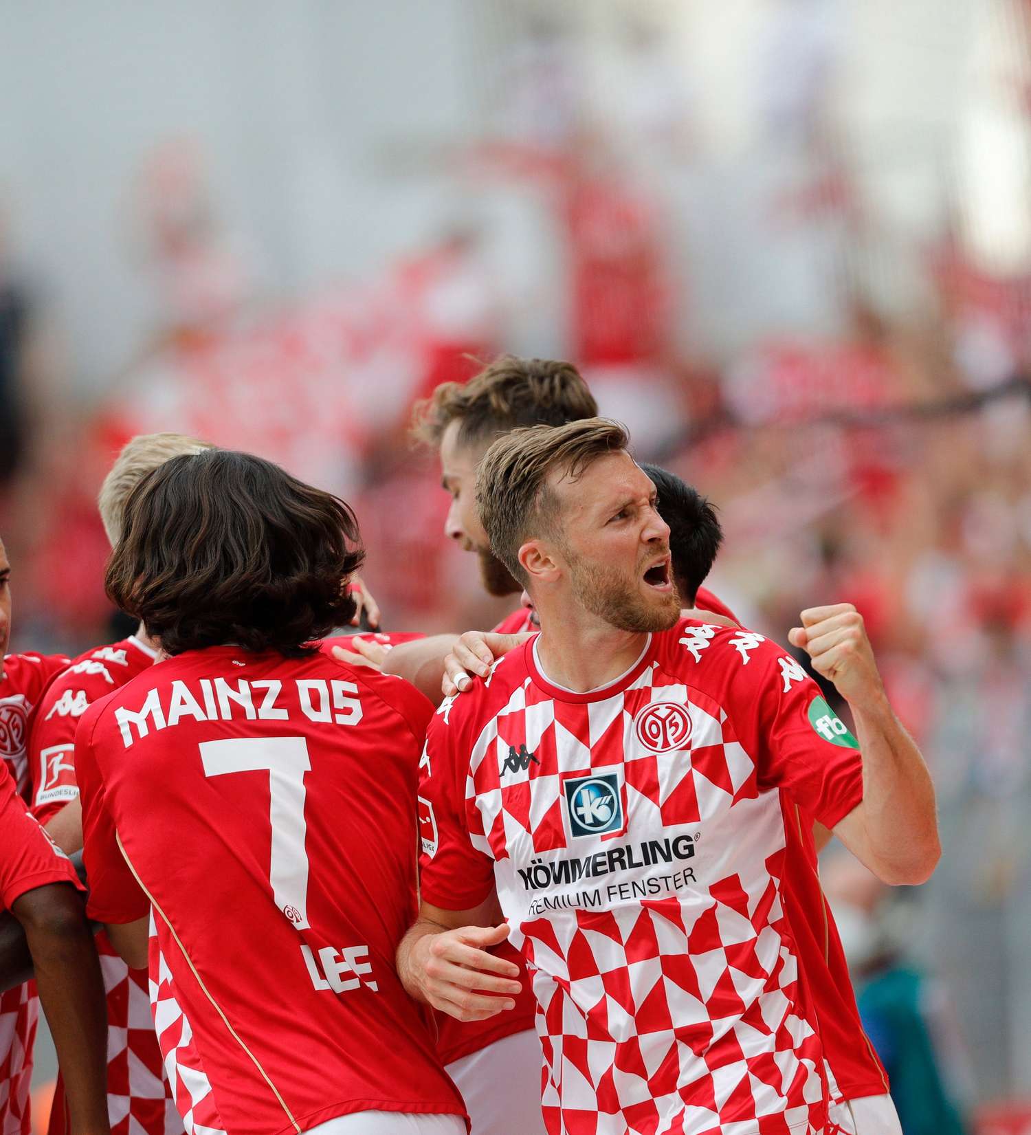 Wer im ersten Pflichtspiel in der MEWA ARENA einen abwartenden oder gar verunsicherten FSV erwartet hatte, sah sich schnell getäuscht. Nur zehn Sekunden waren gespielt, da war Burkardt nach einem feinern Nebel-Zuspiel drauf und dran durchzubrechen, wurde aber im letzten Moment entscheidend gestört (1. Minute). Es war der Auftakt einer furiosen Anfangsphase, in der sich die Hausherren unheimlich giftig präsentierten und die Leipziger immer wieder überraschten. So auch nach fünf Minuten, als Lee nach einer Aarón-Flanke aus dem linken Halbfeld am Pfosten scheiterte, bevor Nebel den Nachschuss knapp neben das Gehäuse setzte - Gäste-Keeper Peter Gulacsi wäre wohl machtlos gewesen (5.). Die Gäste taten sich gegen aggressive Mainzer schwer, kamen aber dennoch wenig später zu einer ersten Halbchance, als Zentner beim Versuch von Angelino aus spitzem Winkel zur Stelle war (9.). Die folgerichtige und zu diesem Zeitpunkt verdiente 05-Führung fiel dann nach einem Standard. Aaróns Ecke erreichte Bell, der Klärungsversuch von Nordi Mukiele misslang völlig, so dass Niakhaté keine Mühe hatte, aus kurzer Distanz einzuschieben - 1:0 (13.). Die ersten Minuten dieser Saison waren, und das nicht nur angesichts der Begleitumstände, äußerst vielversprechend. Und die Rheinhessen sollten in Sachen Intensität auch im Anschluss kein Stück nachlassen.