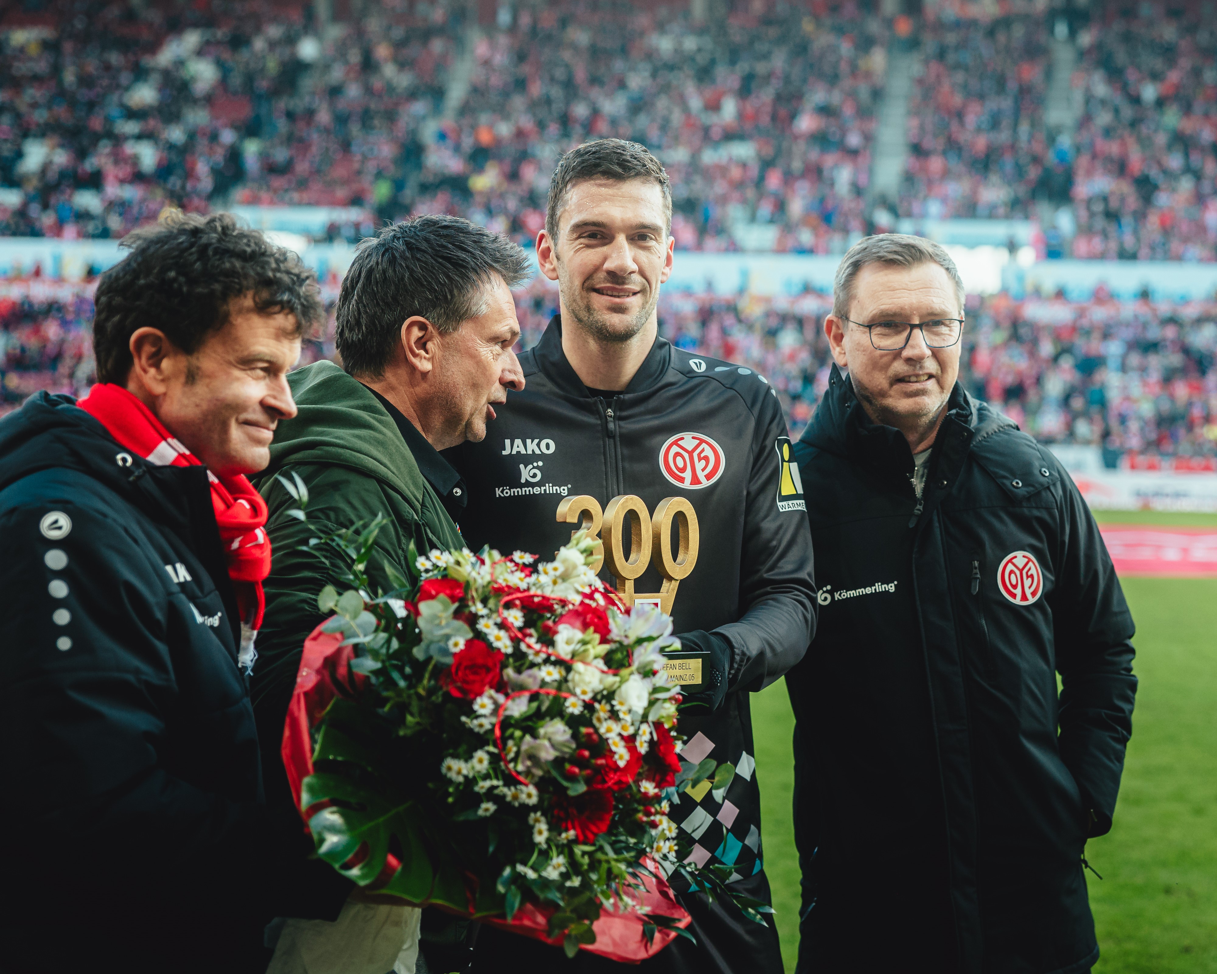 Routinier Stefan Bell wurde vor dem Anpfiff durch den gesamten 05-Vorstand für 300 Bundesliga-Einsätze geehrt.