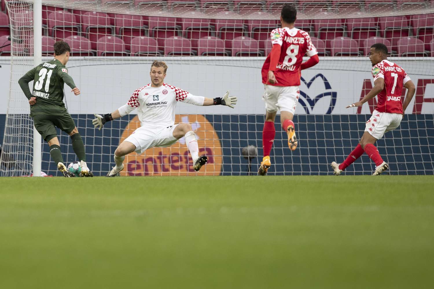 Auch in Teil zwei dieses ersten Durchgangs war dann von zahlreichen Ungenauigkeiten geprägt, nun allerdings auch auf Seiten der Gäste, die nach 36 Minuten dennoch am Ausgleich schnuppern durften: Wamangitukas Schlenzer verfehlte das Gehäuse aber knapp. Als alles auf eine Mainzer Pausenführung hinzudeuten schien, fingen sich die 05ER dann in der Nachspielzeit der ersten 45 Minuten einen Konter. VfB-Kapitän Gonzalo Castro bediente Wamangituka, der gegen Zentners Laufrichtung zum 1:1 abschloss (45.+1).