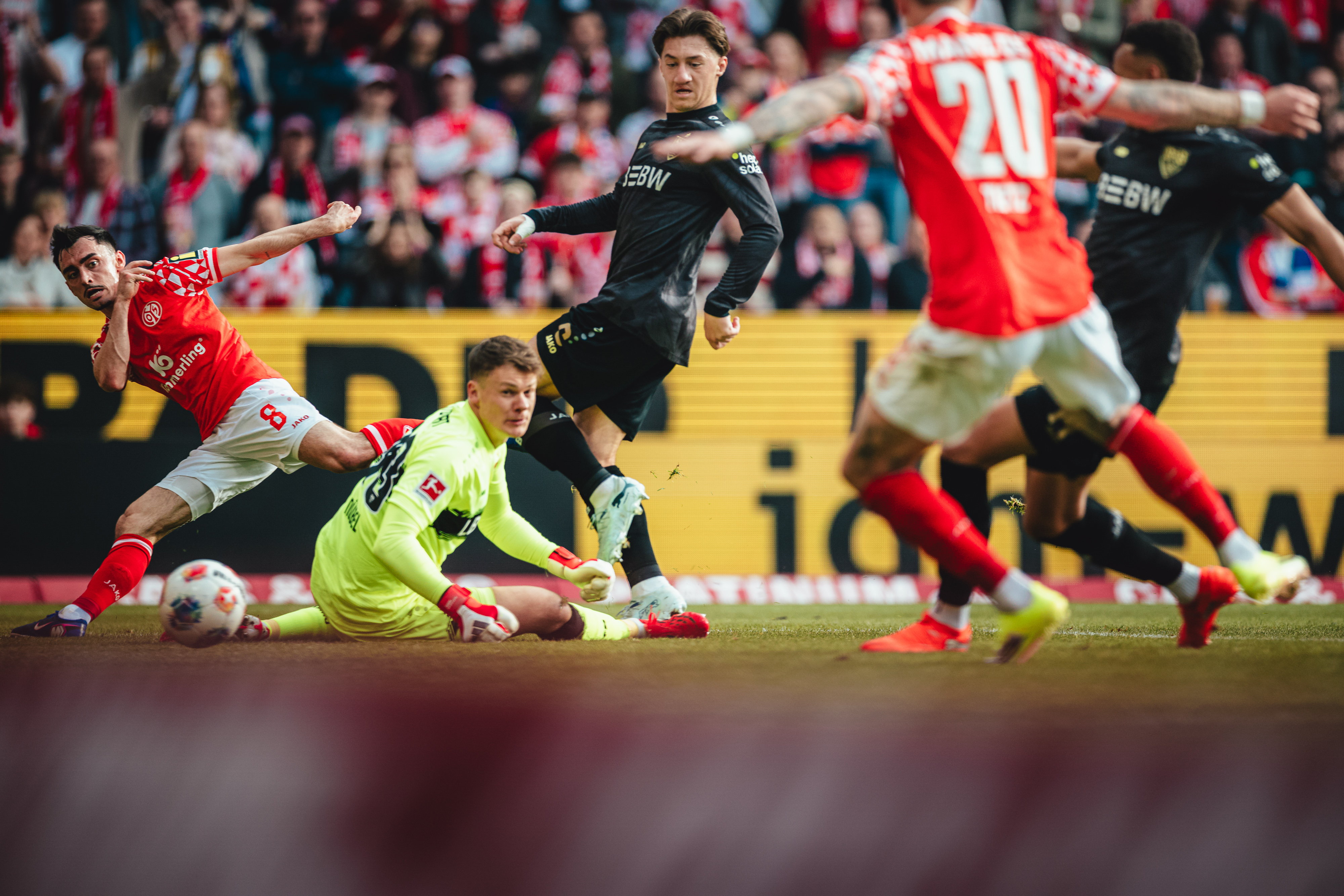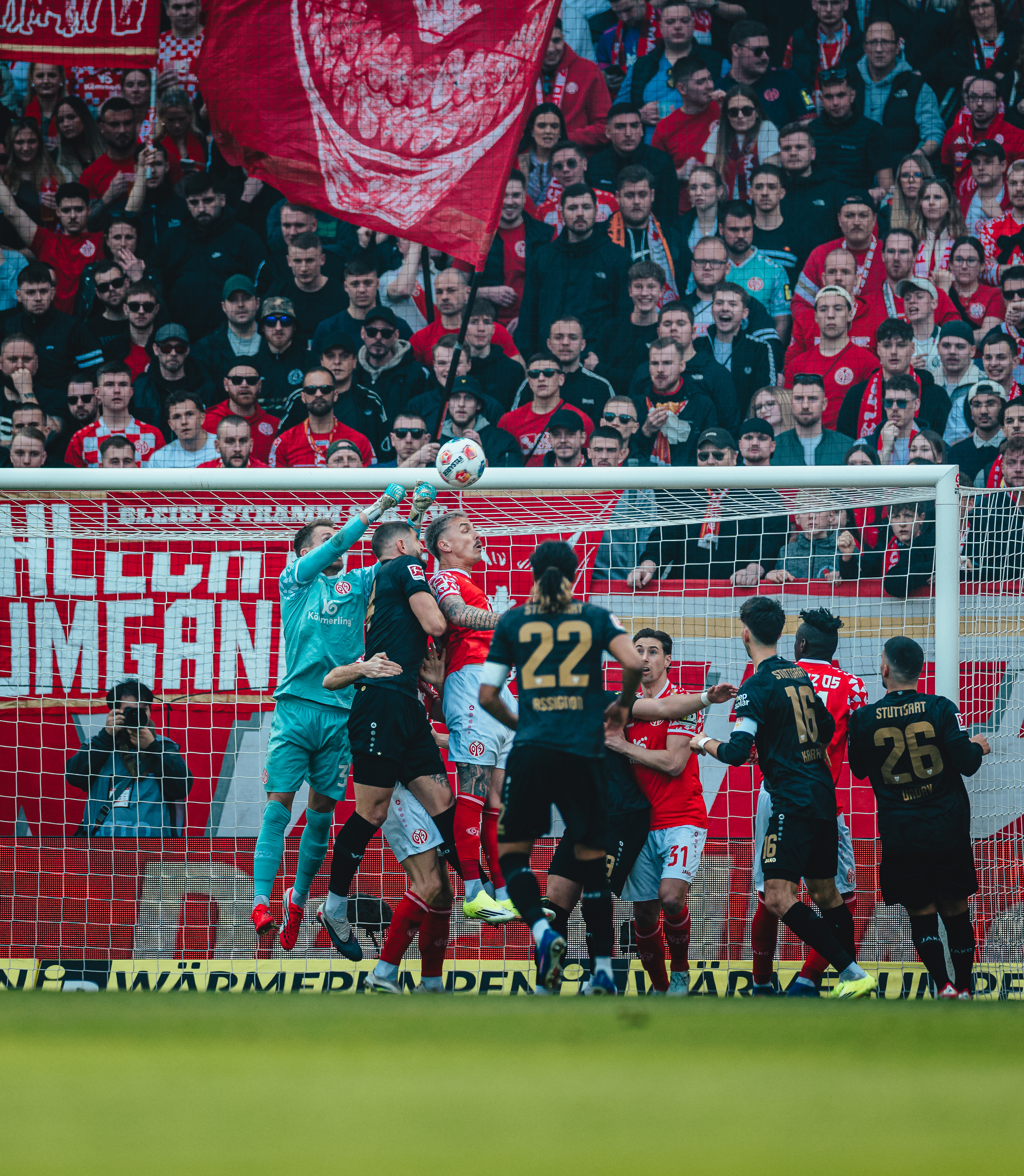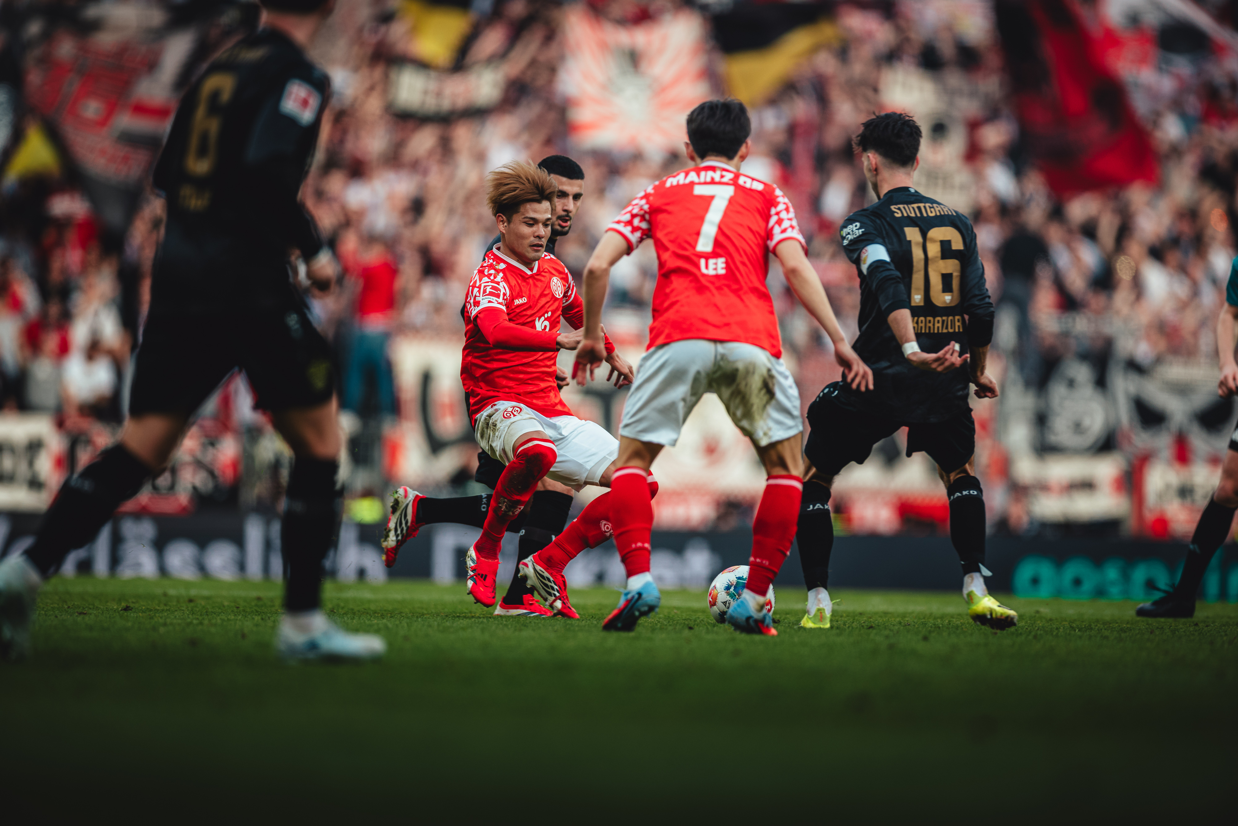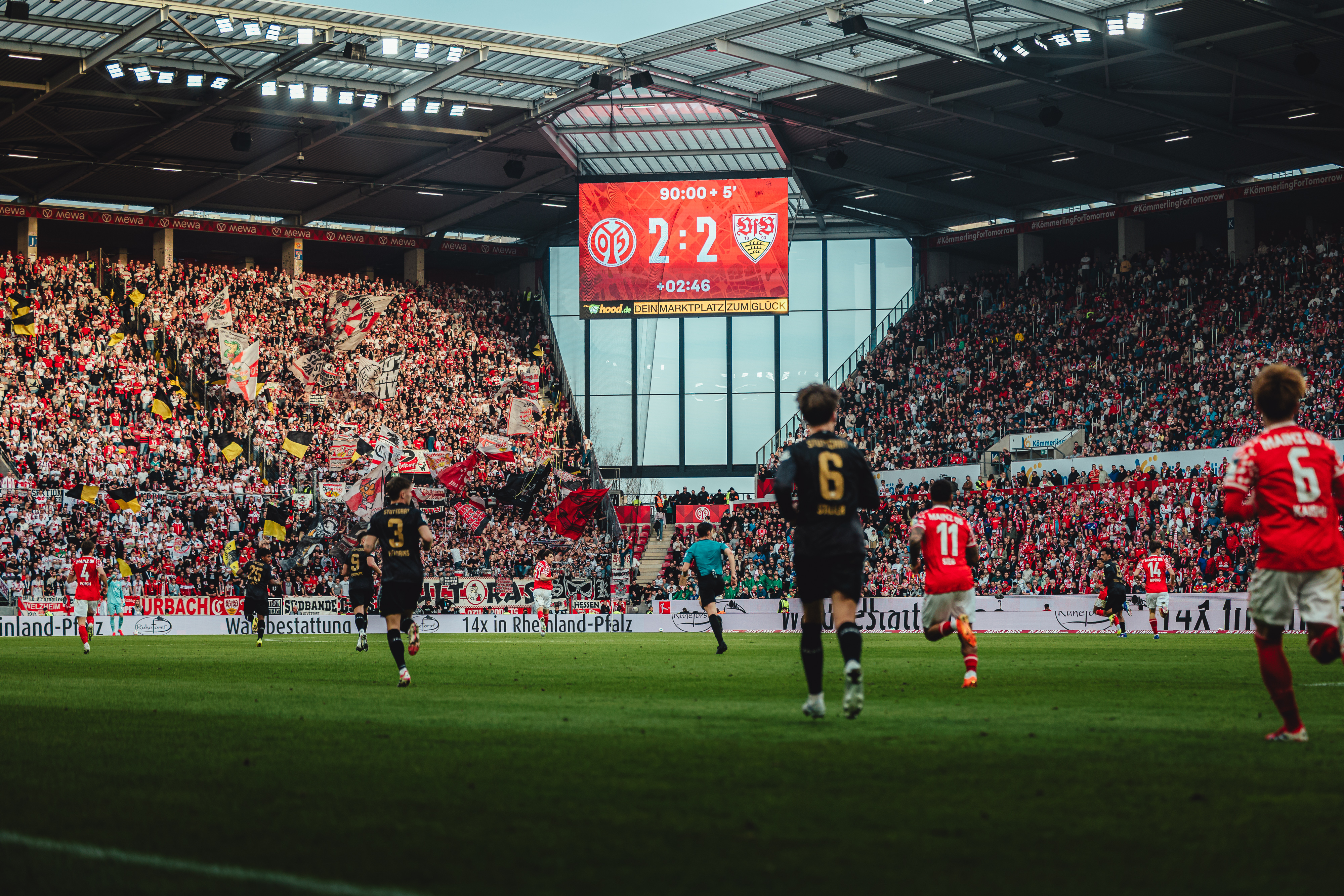 Zum dritten Remis in Serie kam der FSV am Samstagnachmittag beim 2:2 (1:0) gegen den VfB Stuttgart in der ausverkauften MEWA ARENA. Zwar hatten die Gäste die Anfangsphase dominiert, nach guten 20 Minuten aber kaum noch stattgefunden gegen immer dominanter werdende 05ER, die vor der Pause durch Jae-sung Lee verdient in Führung gingen. An die Druckphase vor der Pause knüpften die Mainzer nach Wiederbeginn dann nahtlos an, ließen aber gleich mehrere Hochkaräter liegen, so dass die Schwaben in der Schlussphase aus dem Nichts per Doppelschlag in Führung gehen konnten - Ermedin Demirovic und Deniz Undav waren die glücklichen Torschützen. Dass der VfB keinen Dreier, den sie sich selbst kaum hätten erklären können, aus Mainz mitnahmen, verhinderte letztlich da Costa, der in der Nachspielzeit von Paul Nebels Solo und Phillipp Mwenes Lattentreffer profitierte, nachdem der Verteidiger am schnellsten reagierte und aus Nahdistanz abstaubte.