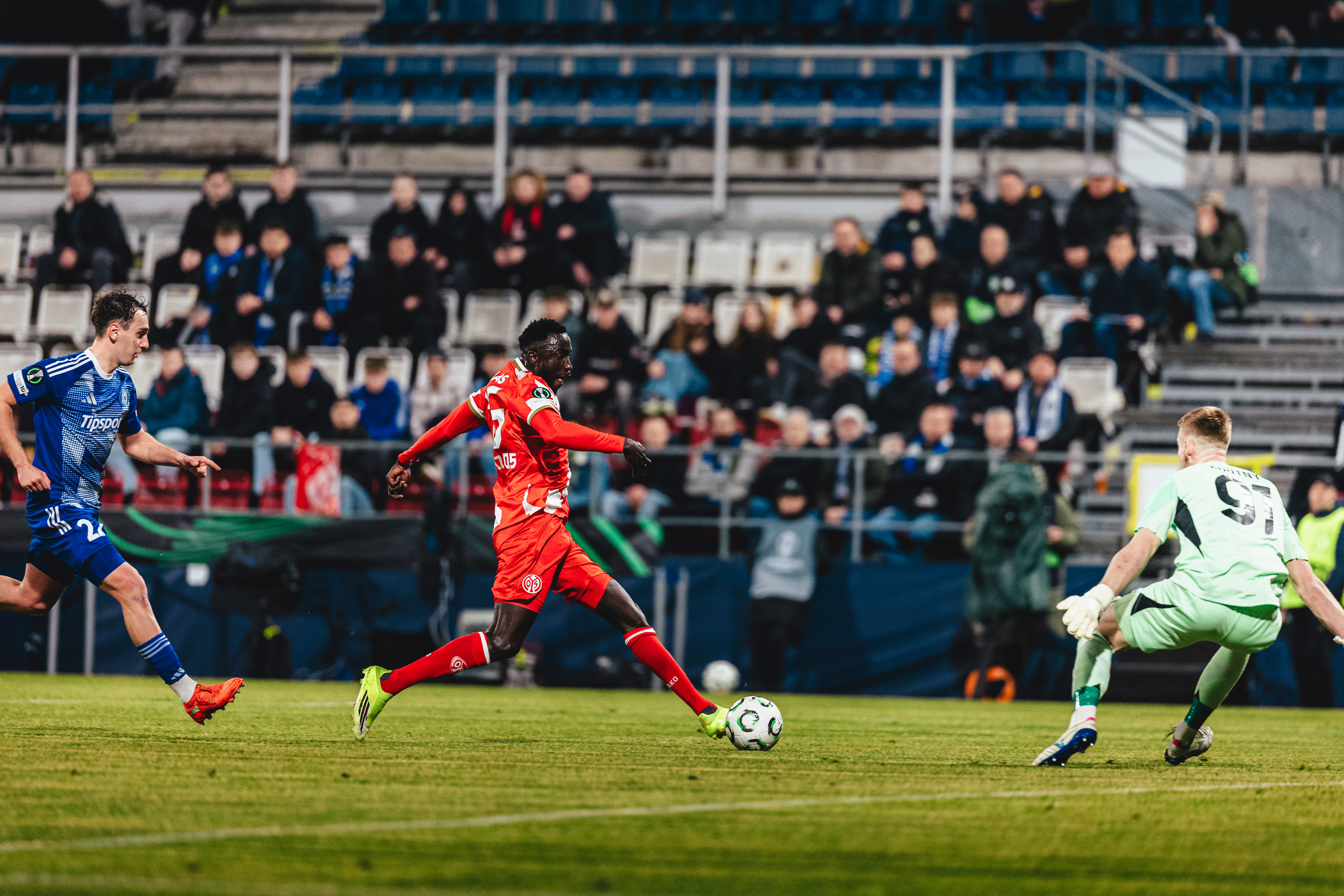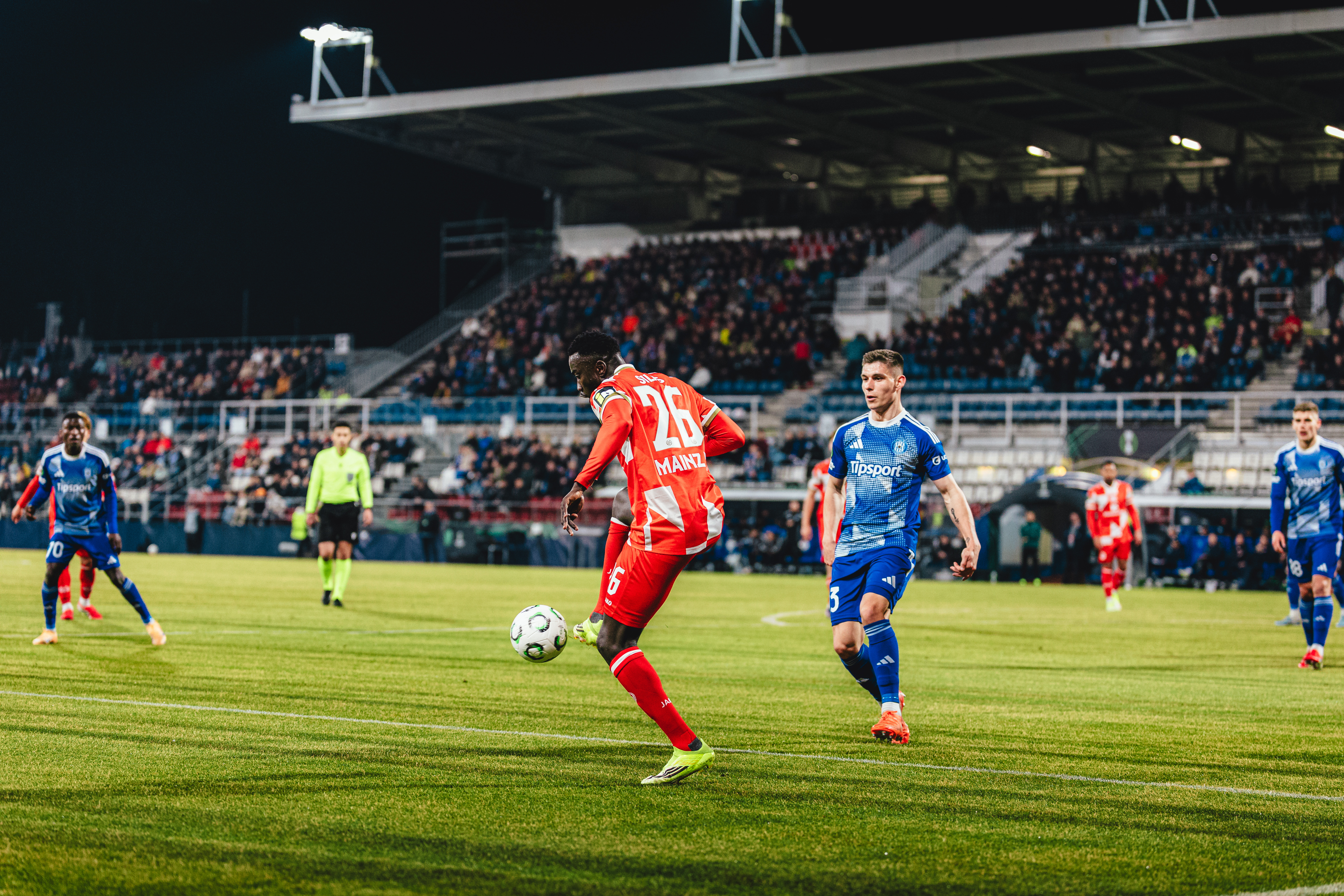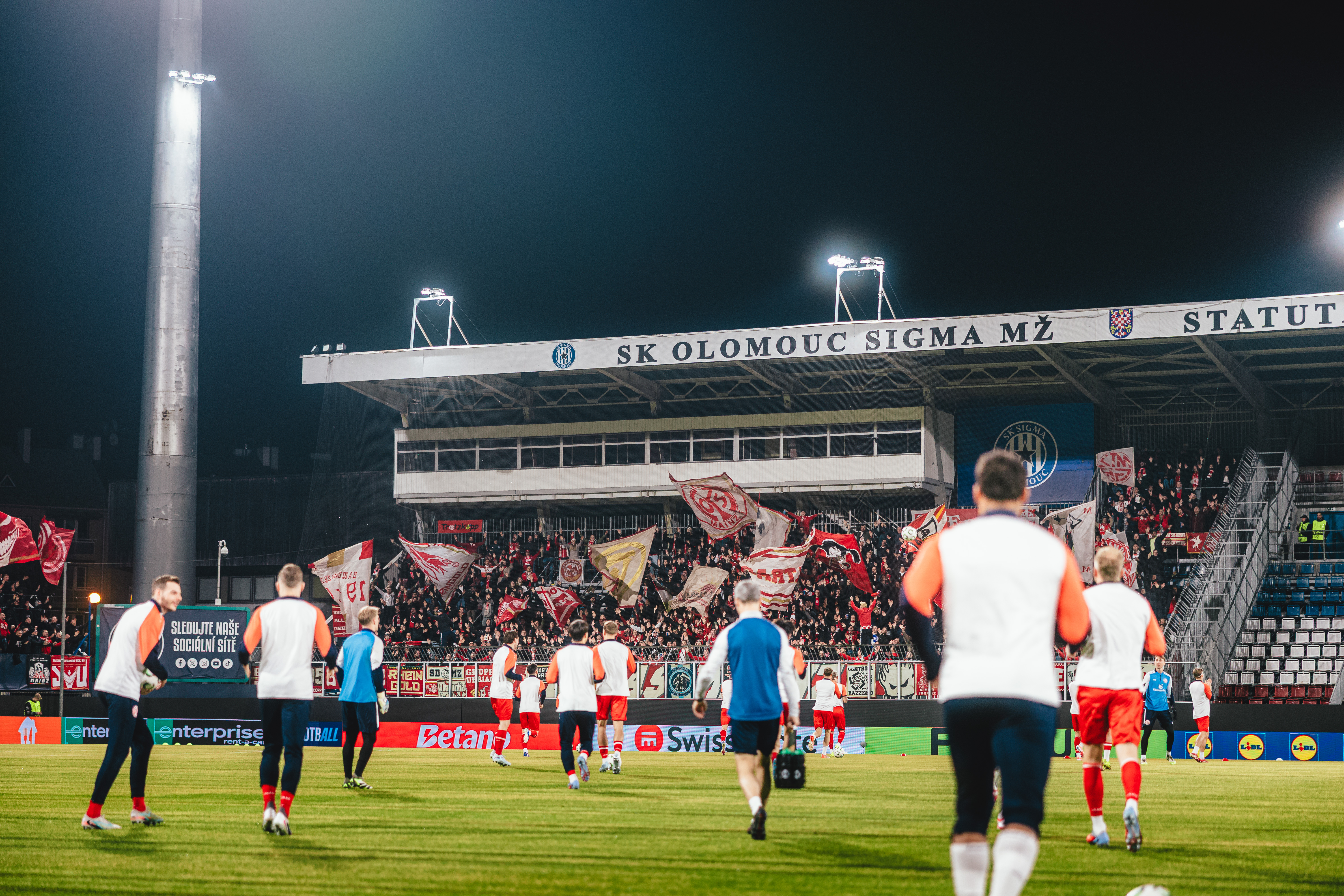In einem über weite Strecken chancenarmen Spiel trennte sich Mainz 05 im Hinspiel des Conference-League-Achtelfinals mit einem 0:0-Remis von Sigma Olmütz. Nachdem es vor rund 1.500 mitgereisten Mainzern im Stadion in der ersten Halbzeit kaum zu nennenswerten Szenen im letzten Drittel beider Teams gekommen war, wurde die Partie nach dem Seitenwechsel durch die schwere Verletzung von Silas überschattet, der ohne gegnerische Einwirkung zu Fall kam und mit einer Trage in die Katakomben gebracht werden musste. Hoch her ging es nochmal in der Schlussphase, in der beide Teams am Siegtor schnupperten. Letztlich zählte aber auch der vermeintlich ganz späte Lucky Punch von Joker Armindo Sieb aufgrund einer Abseitsstellung zurecht nicht. Vor dem Rückspiel in Mainz (19.03., 18.45 Uhr, live bei RTL + und bei 05ER.fm) bleibt somit alles offen im ersten K.o-Runden-Duell der 05-Vereinsgeschichte.