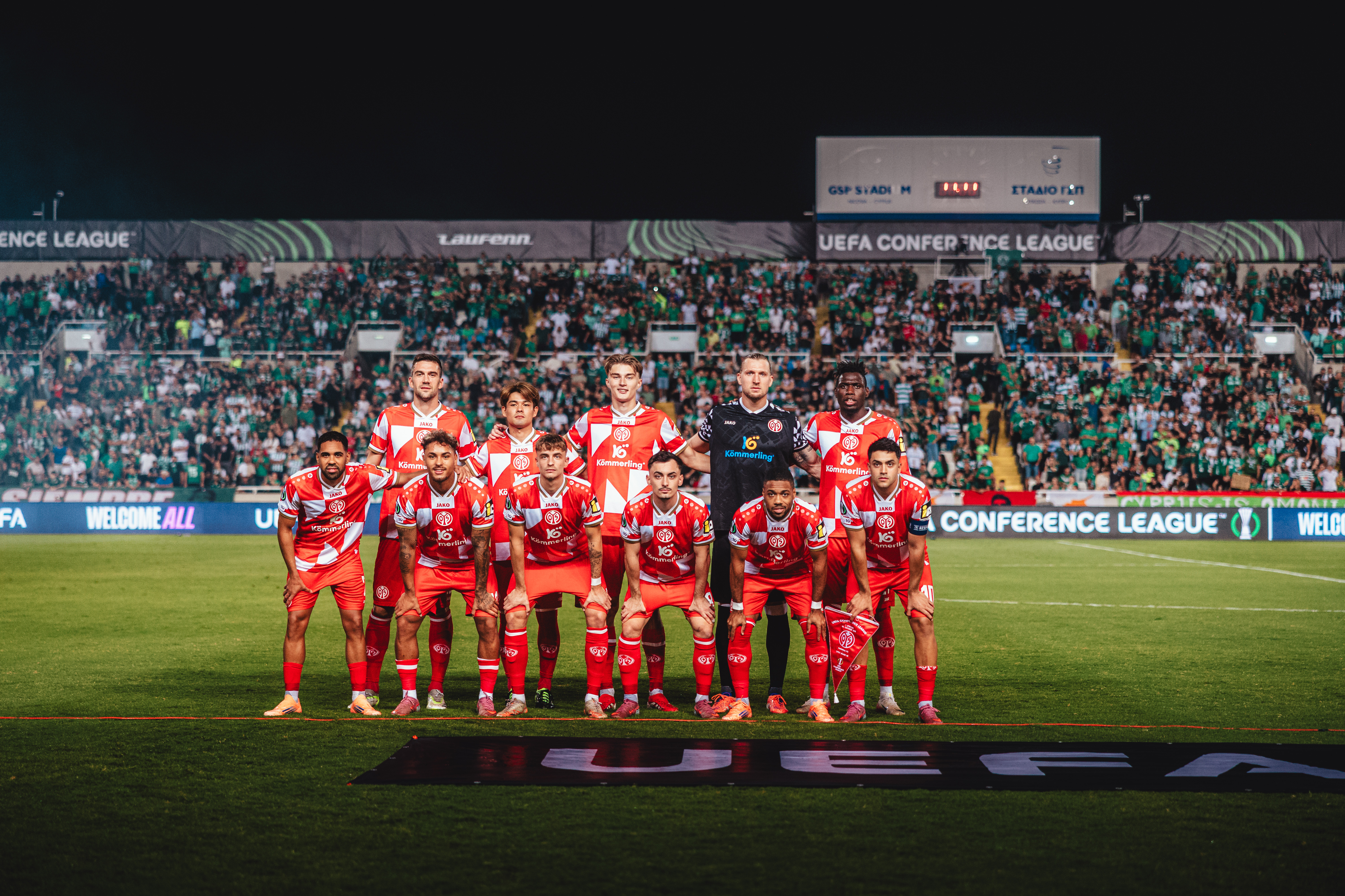 Erfolgreicher Auftakt in die UEFA Conference League für den 1. FSV Mainz 05. Dank eines Elfmetertreffers von Nadiem Amiri in der zweiten Halbzeit, der einzige der Partie bei Omonia Nikosia, nahmen die 05ER am ersten Spieltag der Ligaphase alle drei Punkte mit nach Mainz. Während sich der FSV im ersten Durchgang zeitweise schwer tat und der Pfosten die mögliche Führung verhinderte, kontrollierte das Team von Bo Henriksen spätestens in den zweiten 45 Minuten Ball und Gegner. Der knappe Sieg war hart erarbeitet, alles in allem aber verdient, weil die Rheinhessen, angetrieben von 1.500 mitgereisten Fans, die reifere Spielanlage gezeigt und sich im Spielverlauf deutlich gesteigert hatten.