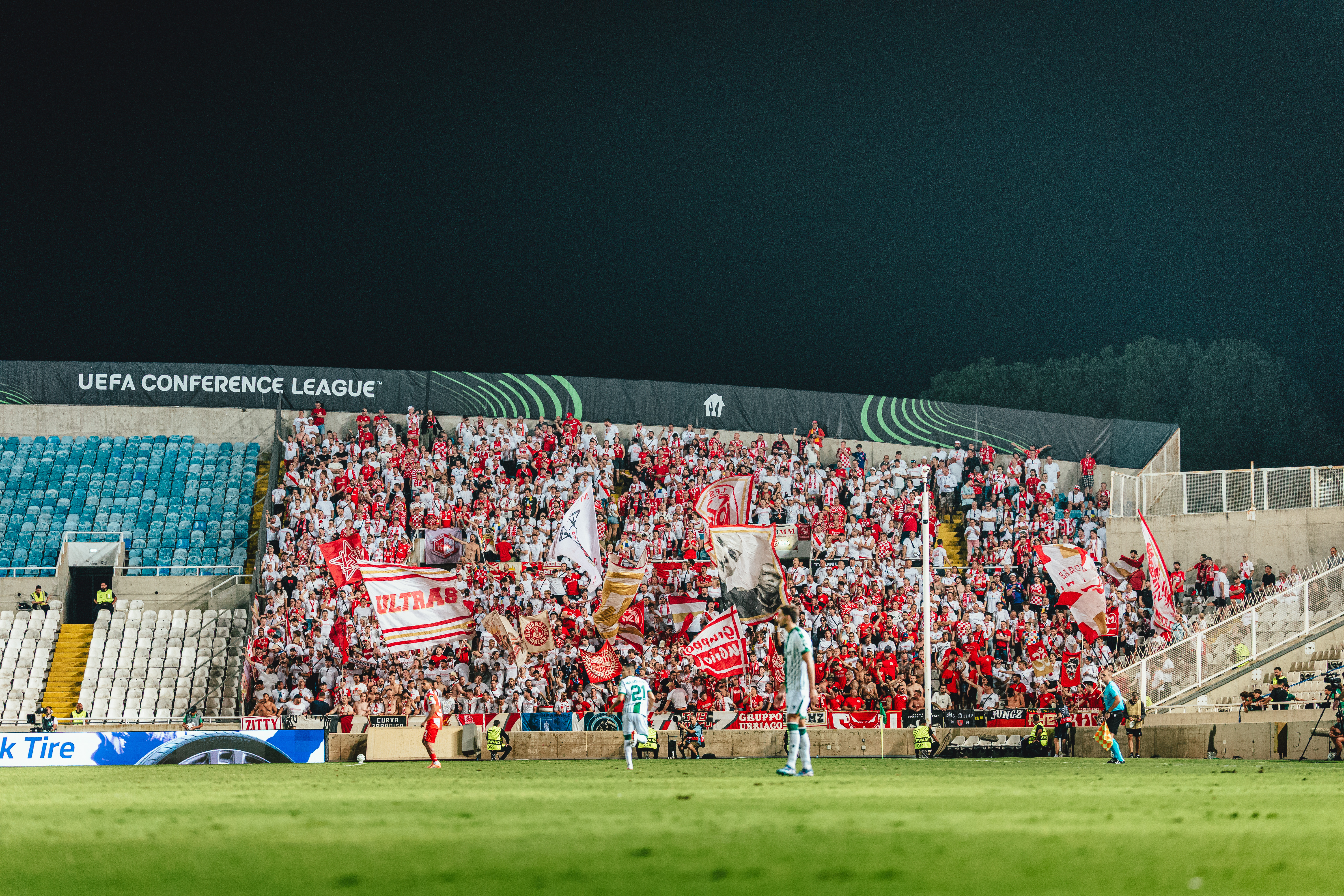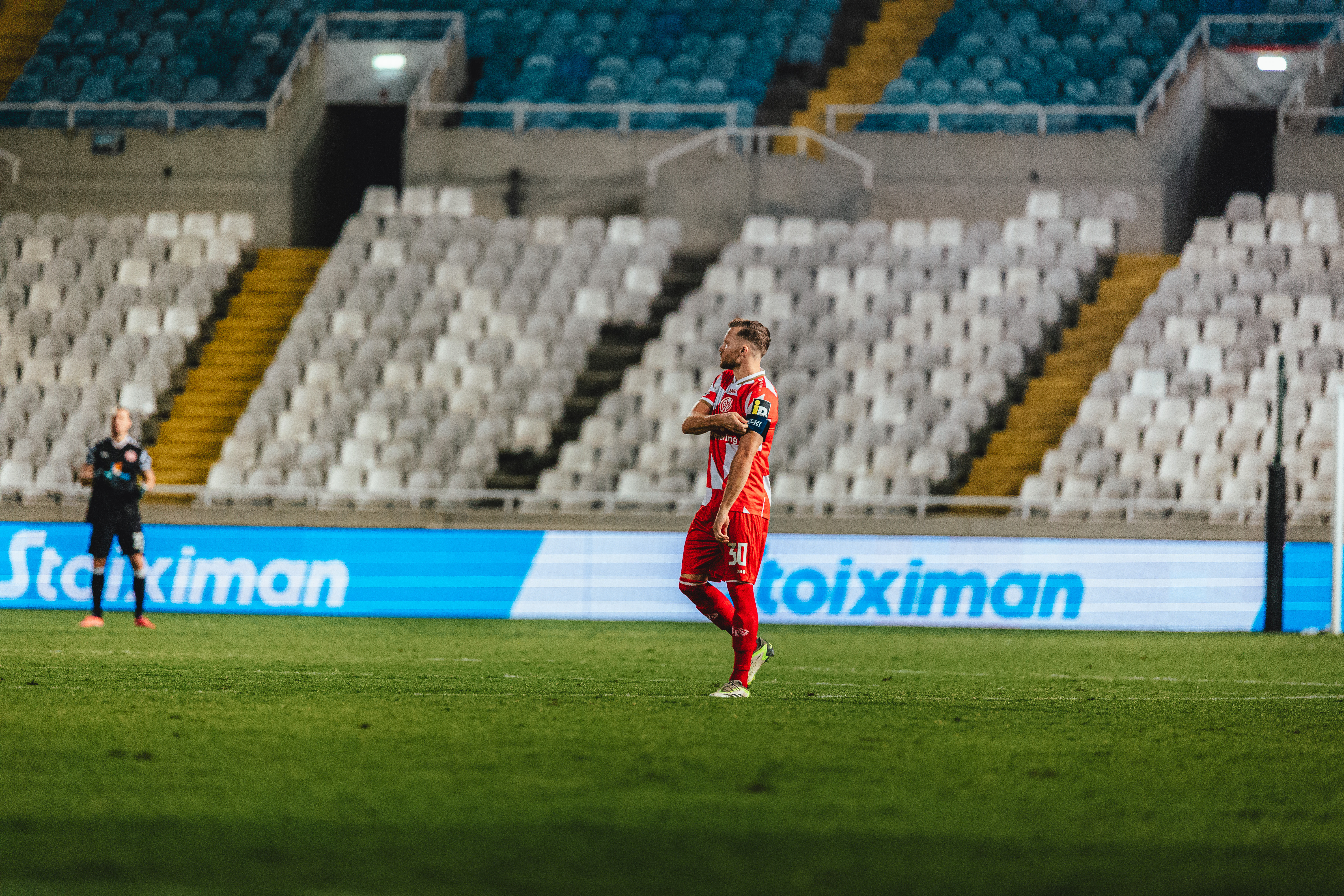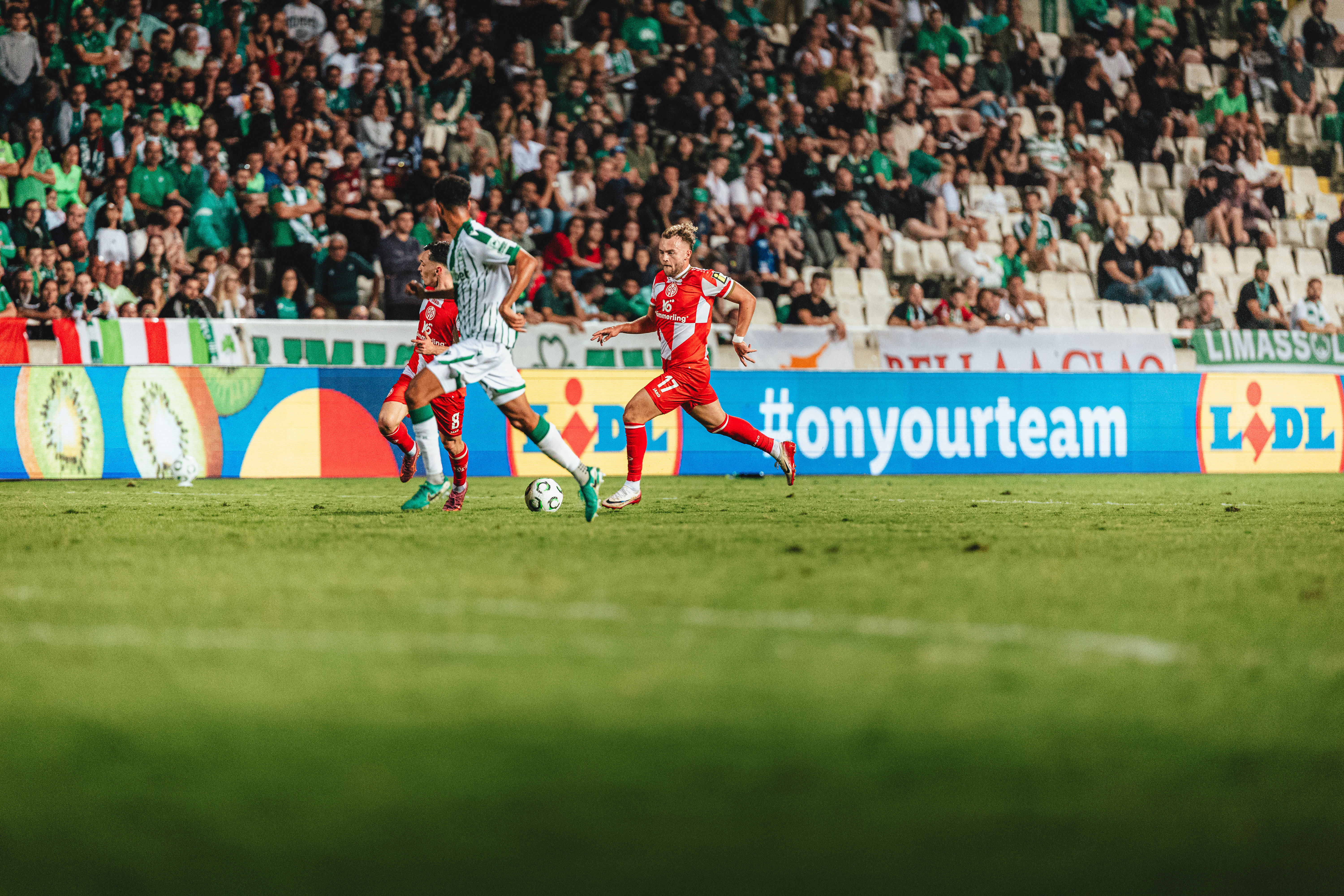 Die Partie fand nun fast ausschließlich in der Hälfte von Nikosia statt. Aus der Ballzirkulation rund um den Strafraum der Gastgeber entwickelte der FSV aber weiterhin zu wenig Torgefahr und kam selten zum Abschluss. Auf der Gegenseite vergab Stefan Simic bei einem der seltenen Entlastungsangriffe der Zyprer eine gute Einschussmöglichkeit (70.). Der wiedergenesene Benedict Hollerbach sollte in den letzten zwanzig Minuten die Abschlussstärke im Strafraum nochmal erhöhen. Es war aber der in den letzten Wochen auch offensiv immer stärker in Erscheinung tretende Sano, der mit einem beherzten Antritt in den Strafrraum eindrang und von Saad Agouzoul nur noch per Foul zu stoppen war. Den fälligen Elfmeter verwandelte Amiri sicher in die rechte Ecke zur Mainzer Führung (75.). Weil beim Torjubel zahlreiche Gegenstände auf die Mainzer Spieler flogen, unter anderem wurde Bobzien von einem Becher im Nacken getroffen, schickte Schiedsrichter Milos Milanovic beide Teams für eine kurze Unterbrechung vom Platz. Während sich das Geschehen abseits des Feldes wieder etwas beruhigt hatte, kontrollierten die 05ER weiterhin Ball und Gegner. Mit Lennard Maloney und Silvan Widmer für Mwene und Amiri brachten die Gäste auch die letzten Minuten ohne Gegentreffer über die Bühne und konnten nach dem Abpfiff gemeinsam mit ihren Fans den siegreichen Auftakt in der Conference League entsprechend bejubeln.