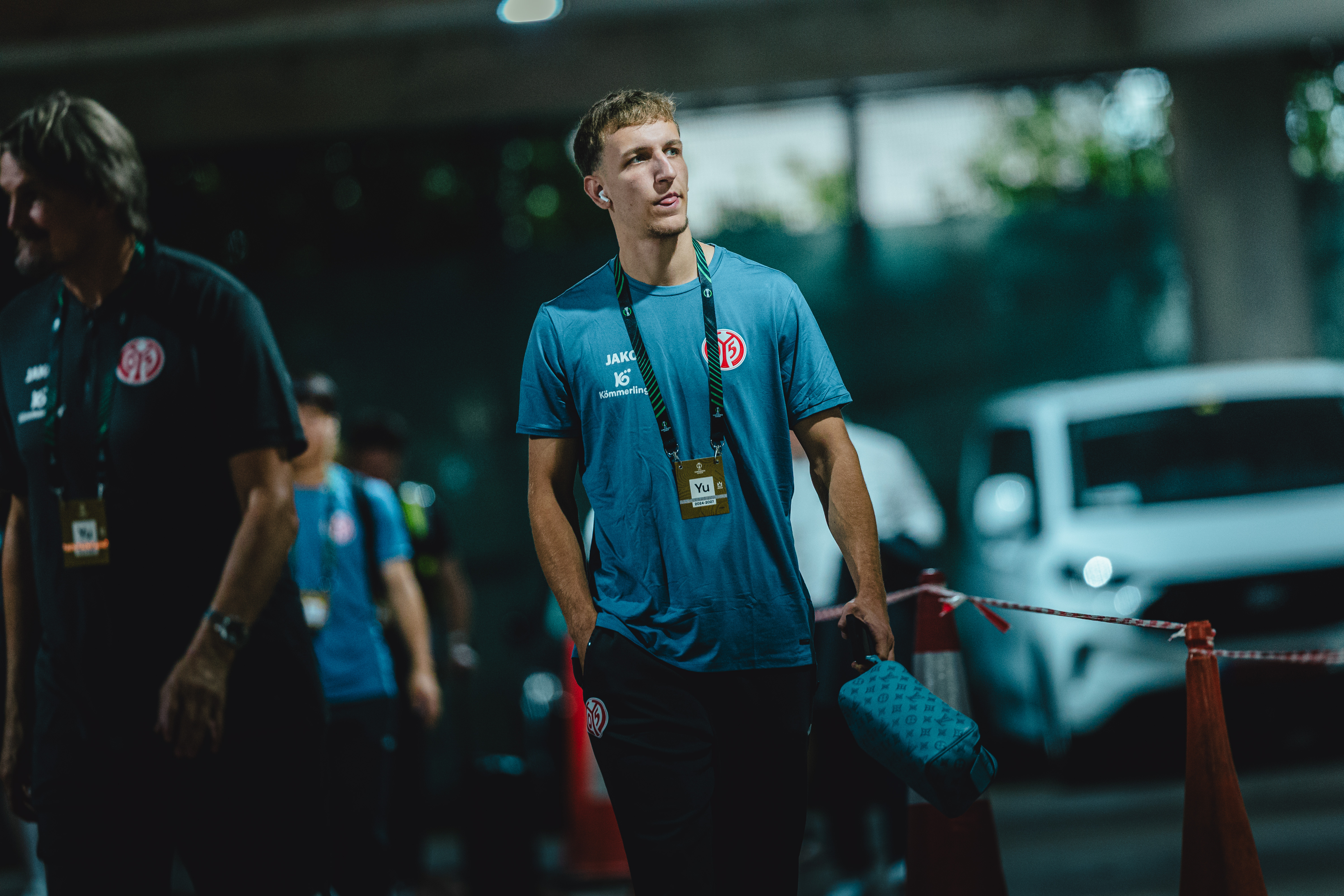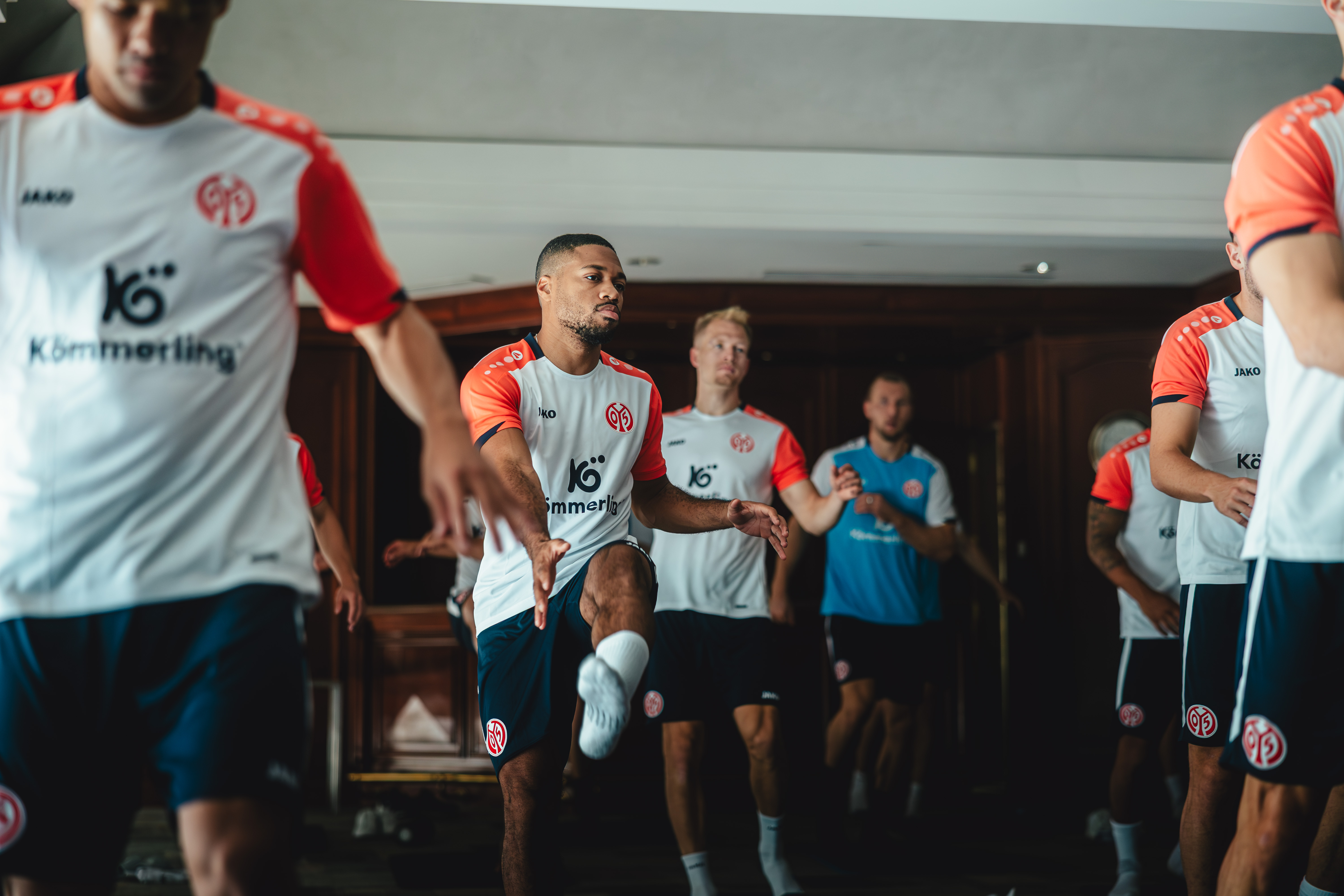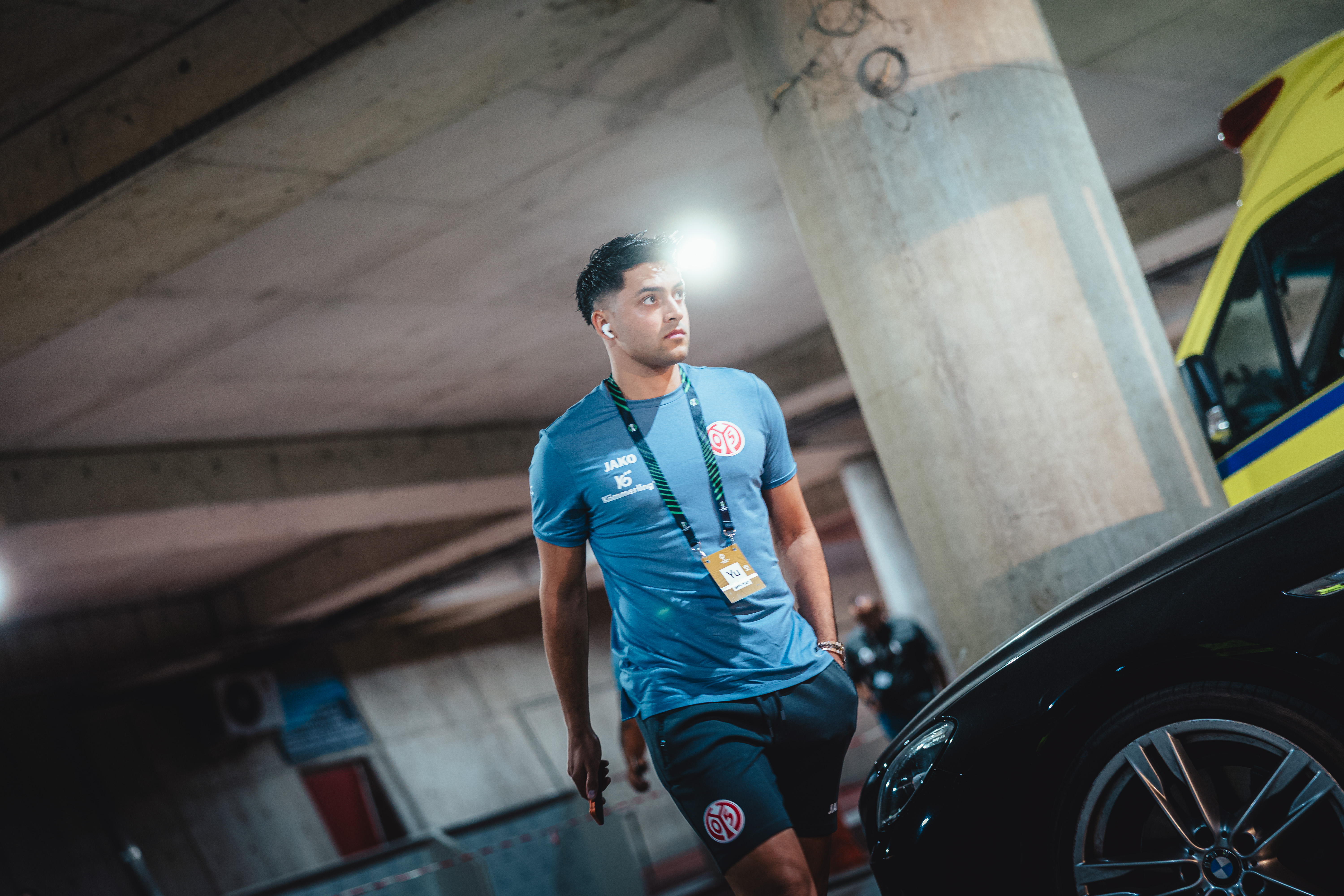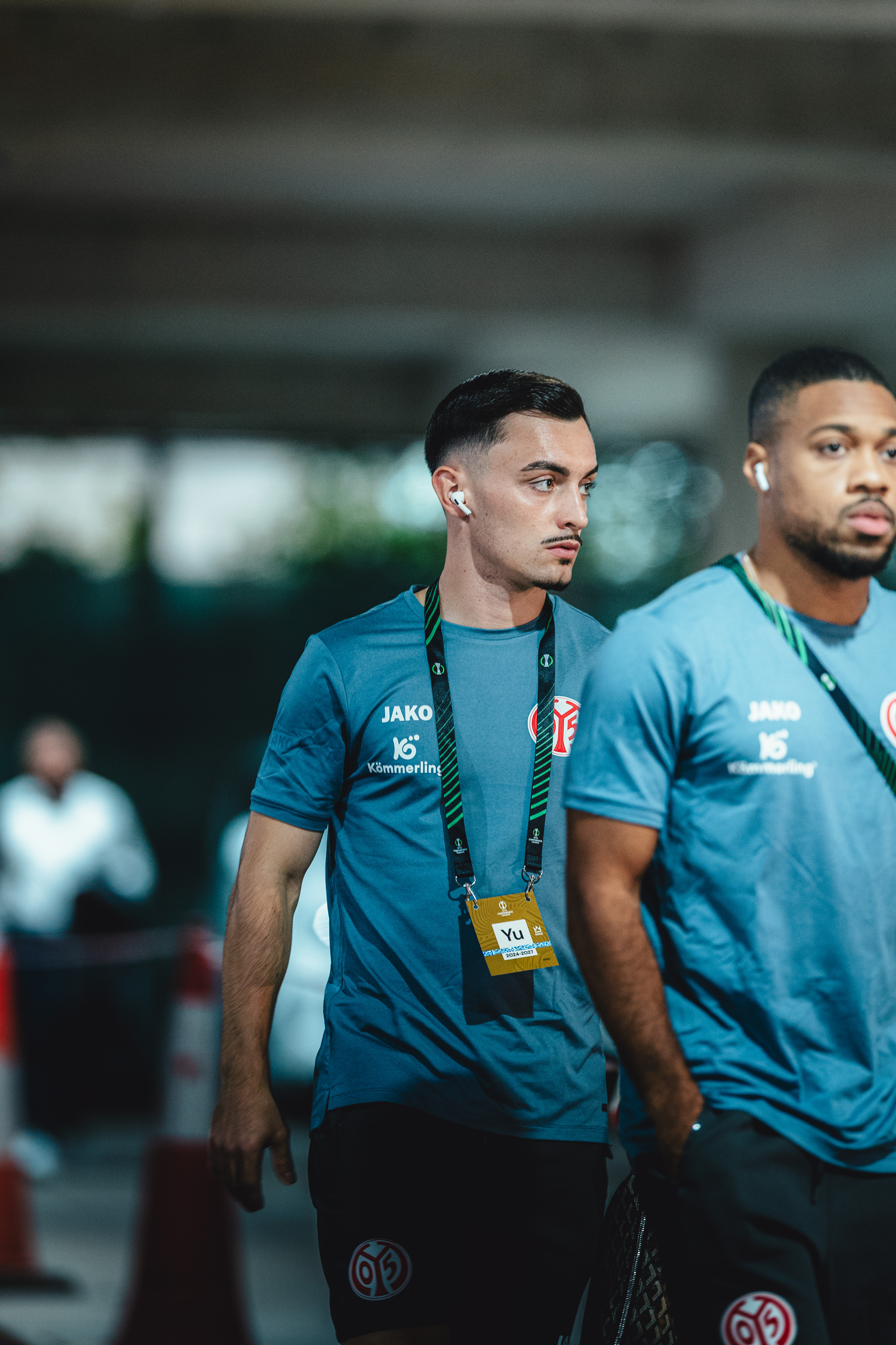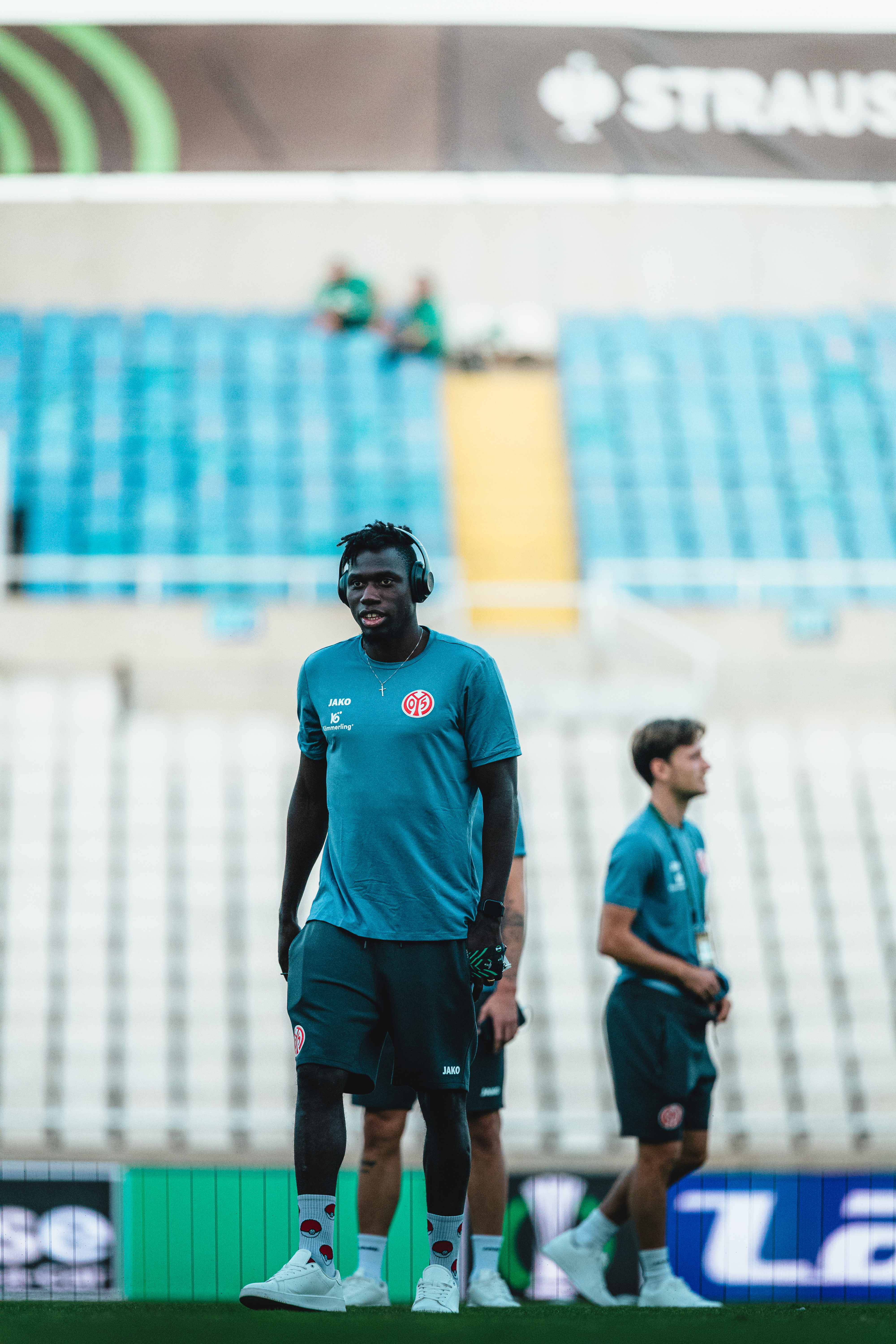 Omonia wählte aufgrund des hohen Mainzer Anlaufens oft den langen Ball, fand aber auch immer wieder den Raum zwischen der Mainzer Dreierkette und den beiden Sechsern Amiri und Kaishu Sano. Die Partie beruhigte sich im weiteren Verlauf, Abschlüsse waren auf beiden Seiten, abgesehen von Ewandros Schuss (26.), keine mehr zu verzeichnen. Für den nächsten Aufschrei des Heimpublikums sorgte Semedo, dessen Ball knapp links am Mainzer Tor vorbeiging (33.). Die Rheinhessen taten sich bislang schwer und wären dennoch nach 35 Minuten fast in Führung gegangen. Nach einer kurz ausgeführten Ecke visierte Nordin den zweiten Pfosten, von diesem sprang der Ball vor dem einschussbereiten Bell zurück in Francis Uzohos Arme. Gegen den Ball hatten die 05ER das Spiel nun gut im Griff, vorne sorgten sie in der Phase vor der Pause für mehr Gefahr. Phillipp Mwene verpasste nach einer Nordin-Flanke frei am zweiten Pfosten den Ball (44.). Potulskis Versuch in der Nachspielzeit wurde geblockt, der Nachschuss von Armindo Sieb ging weit über den Kasten von Omonia. Es blieb beim torlosen Unentschieden nach dem ersten Durchgang.