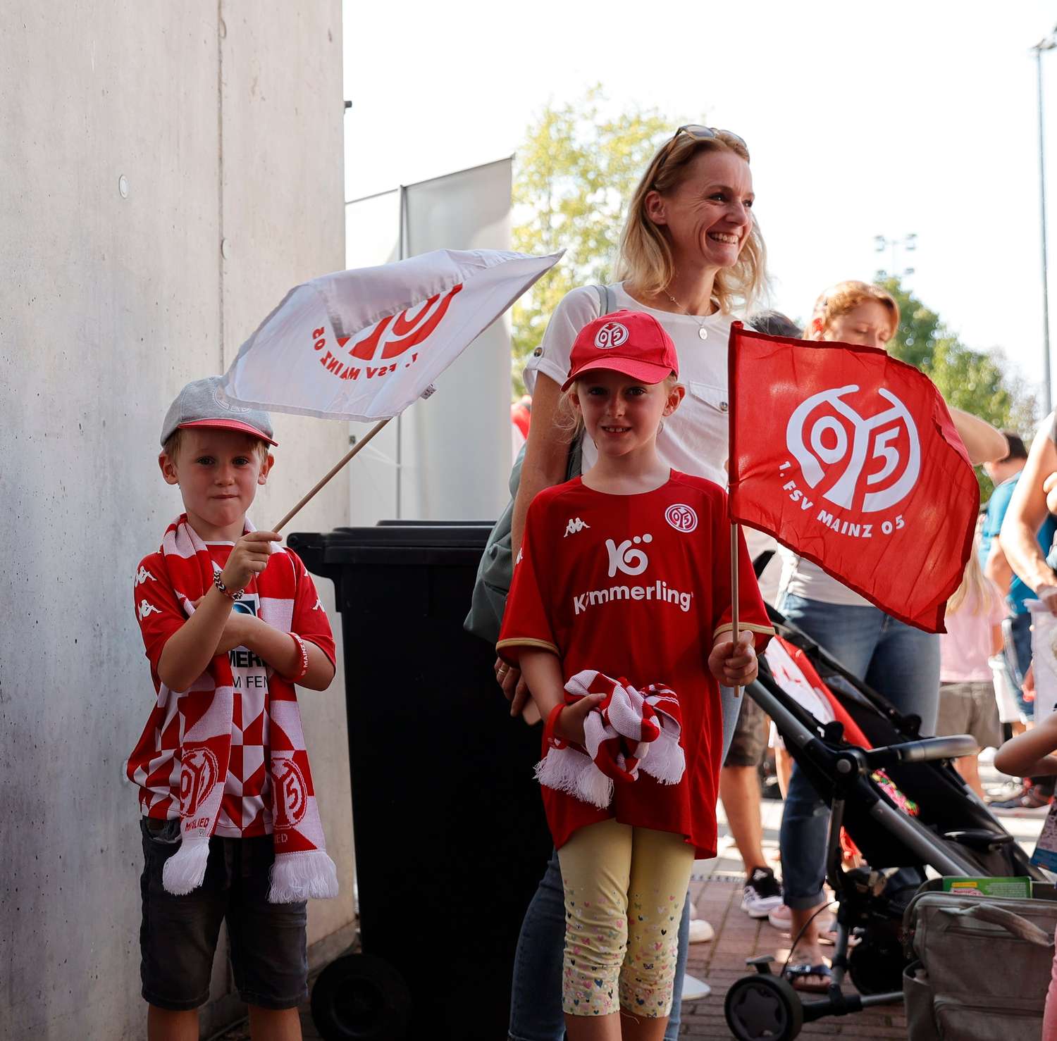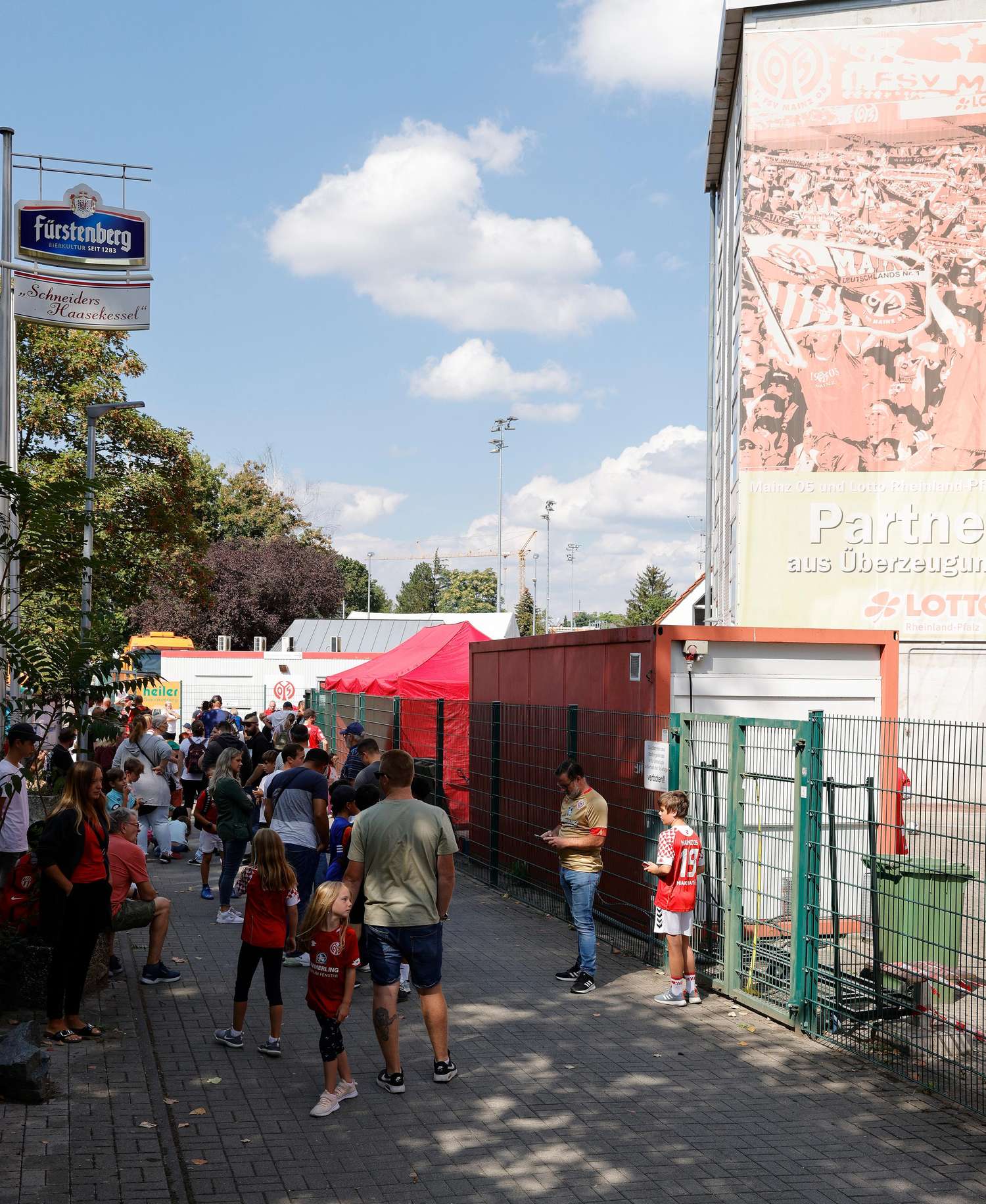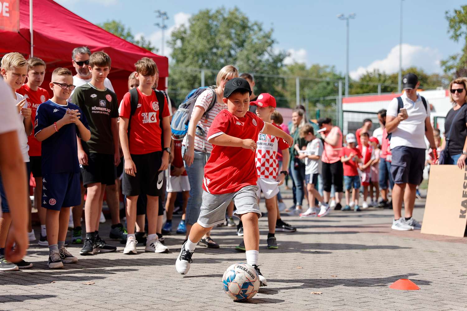 Drei Tage vor dem Auswärtsspiel bei Borussia Mönchengladbach (So., 17:30 Uhr, live auf DAZN und 05ER.fm) gewährte Cheftrainer Bo Svensson zahlreichen Kindern und ihren Eltern im Rahmen des Kindertrainings Einblicke in die Trainingsarbeit der Mannschaft. Schon rund 20 Minuten vor Tore-Öffnung am Bruchweg bildet sich eine kontinuierlich länger werdende Schlange am Einlass des Stadions. Pünktlich um 14:30 Uhr strömten die Kinder mit ihren Eltern auf das Gelände und konnten sich an der beliebten Bum Bum Baller Box, einer Torwand, einer Schminkstation und einigen weiteren Stände die Zeit bis zum Trainingsstart vertreiben.