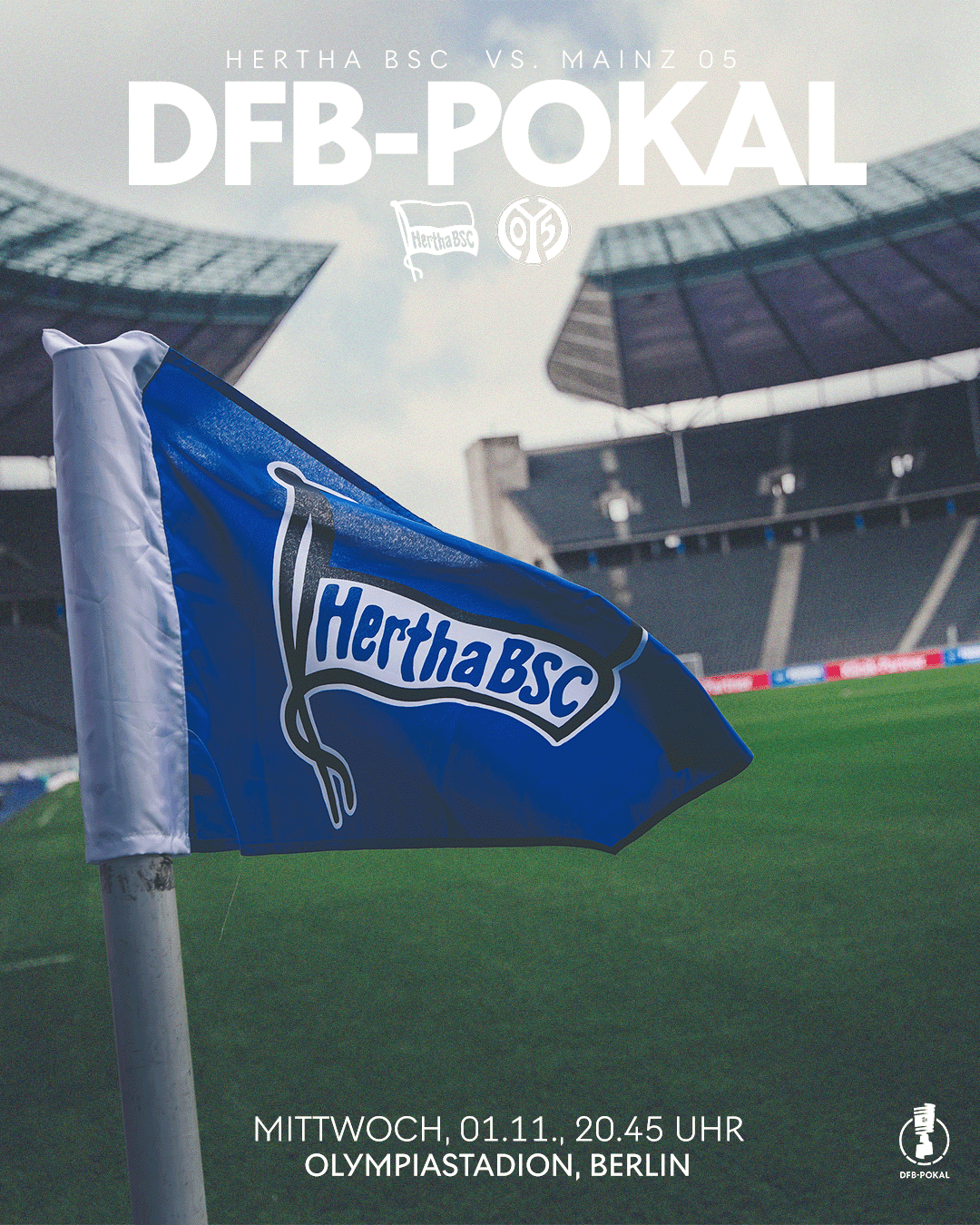 Der Deutsche Fußball-Bund (DFB) hat am Freitagnachmittag die zeitgenauen Ansetzungen der zweiten DFB-Pokal-Runde bekanntgegeben. Demnach ist der FSV am Mittwoch, den 01. November um 20.45 Uhr bei Zweitligist Hertha BSC gefordert. Im Olympiastadion streben die Rheinhessen nach dem Auswärtssieg in Runde eins bei der SV Elversberg den Einzug ins Achtelfinale des Wettbewerbs an. Informationen zu Ticketverkauf und etwaigen Anreiseoptionen folgen in Kürze.
