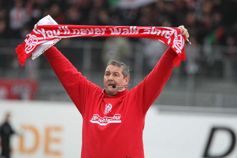 Irgendwann im Jahr 1989 war es gewesen, als der damalige 05-Vorsitzende Harald Strutz unter der Woche am Telefon gewesen sei und gesagt habe: "Dicker, du machst am Sonntag den Stadionsprecher. Warum er Dicker gesagt hat, weiß ich gar nicht", sagt Hafner lachend. Zwei Tage später habe Strutz erneut angerufen und ihn an den Termin erinnert. "Der meinte das wirklich ernst. Dann habe ich es halt gemacht. Wir haben vereinbart, dass ich es bis zum Ende der Saison weitermache und wir dann noch einmal darüber reden. So haben wir geredet bis heute."