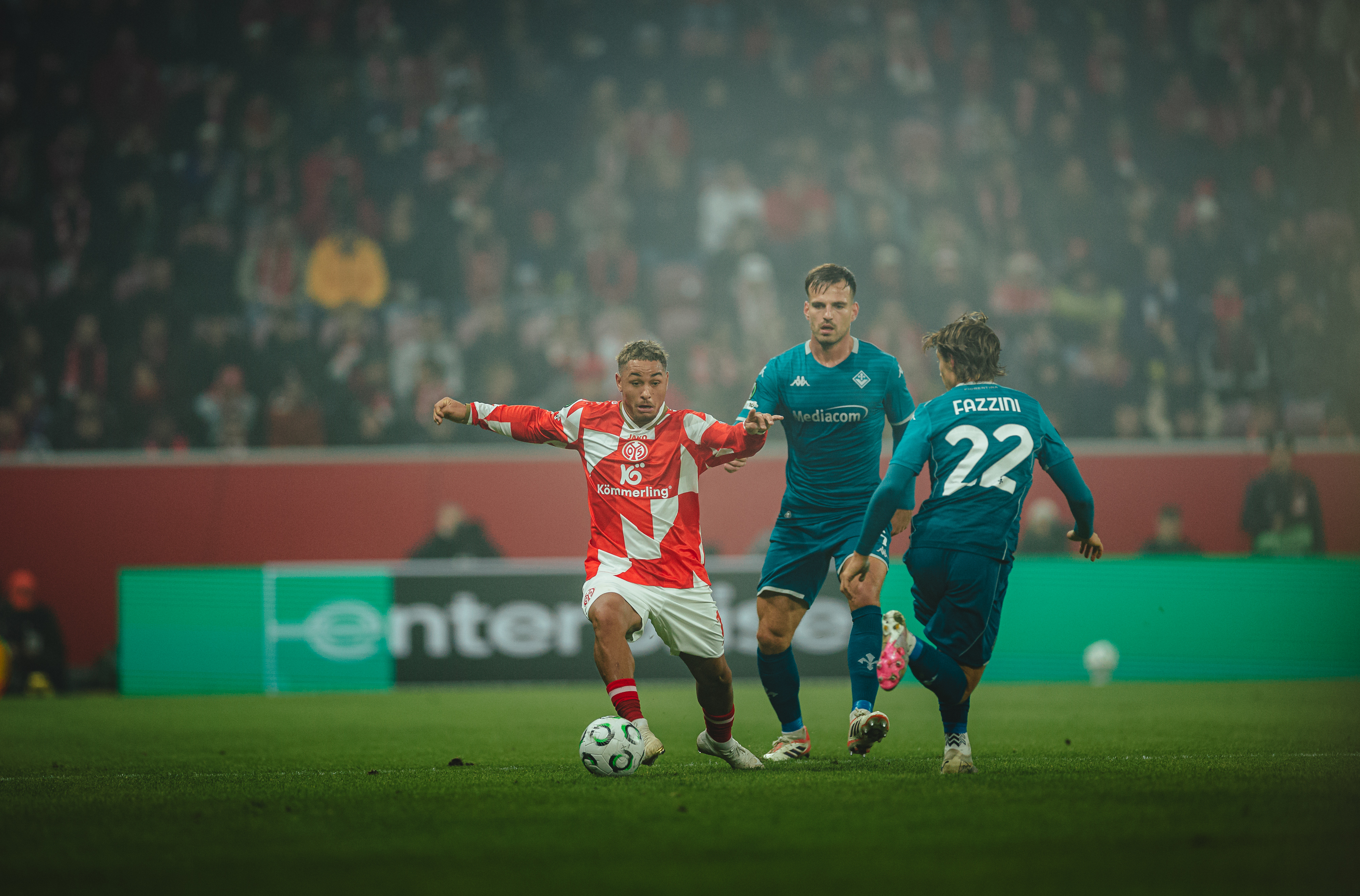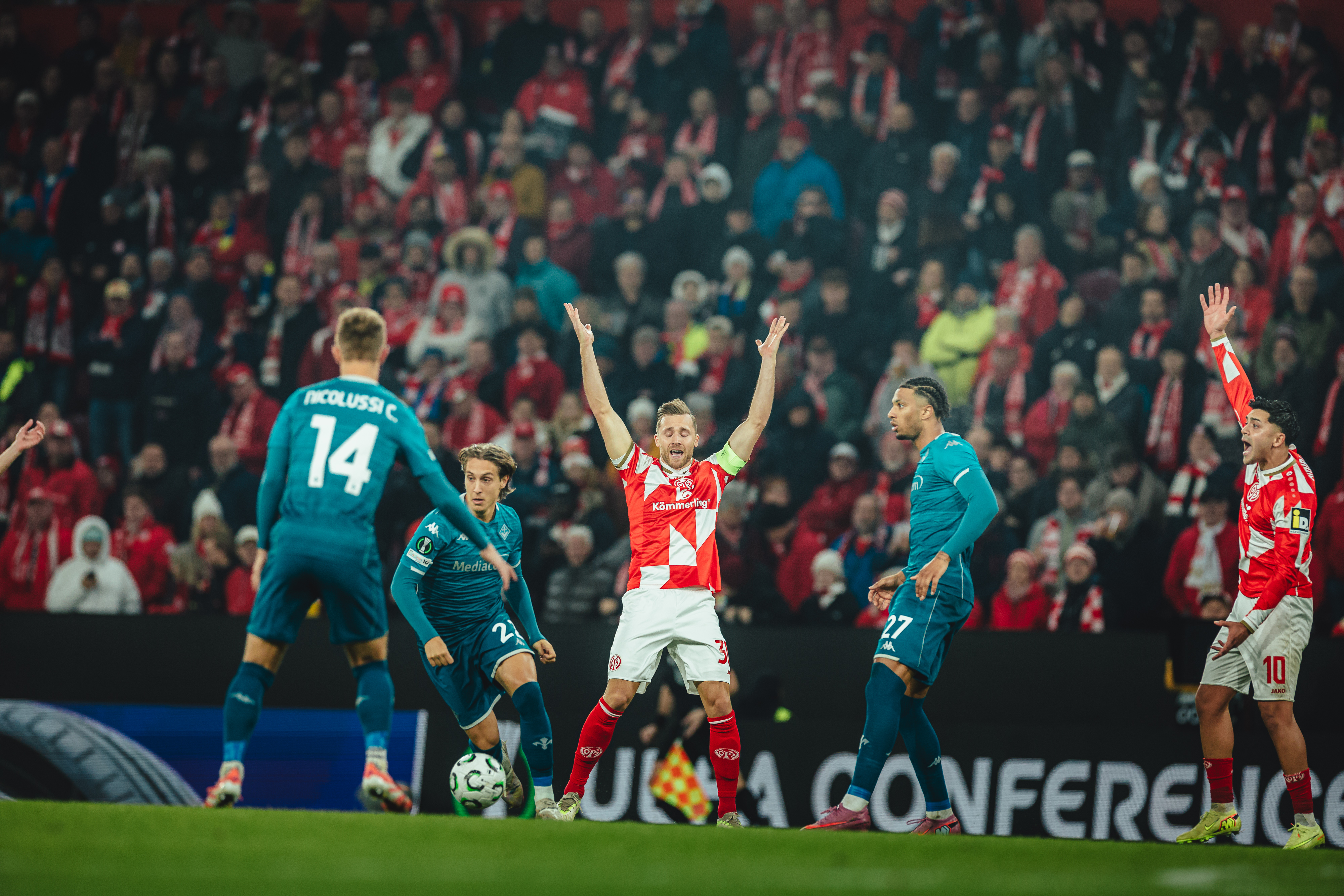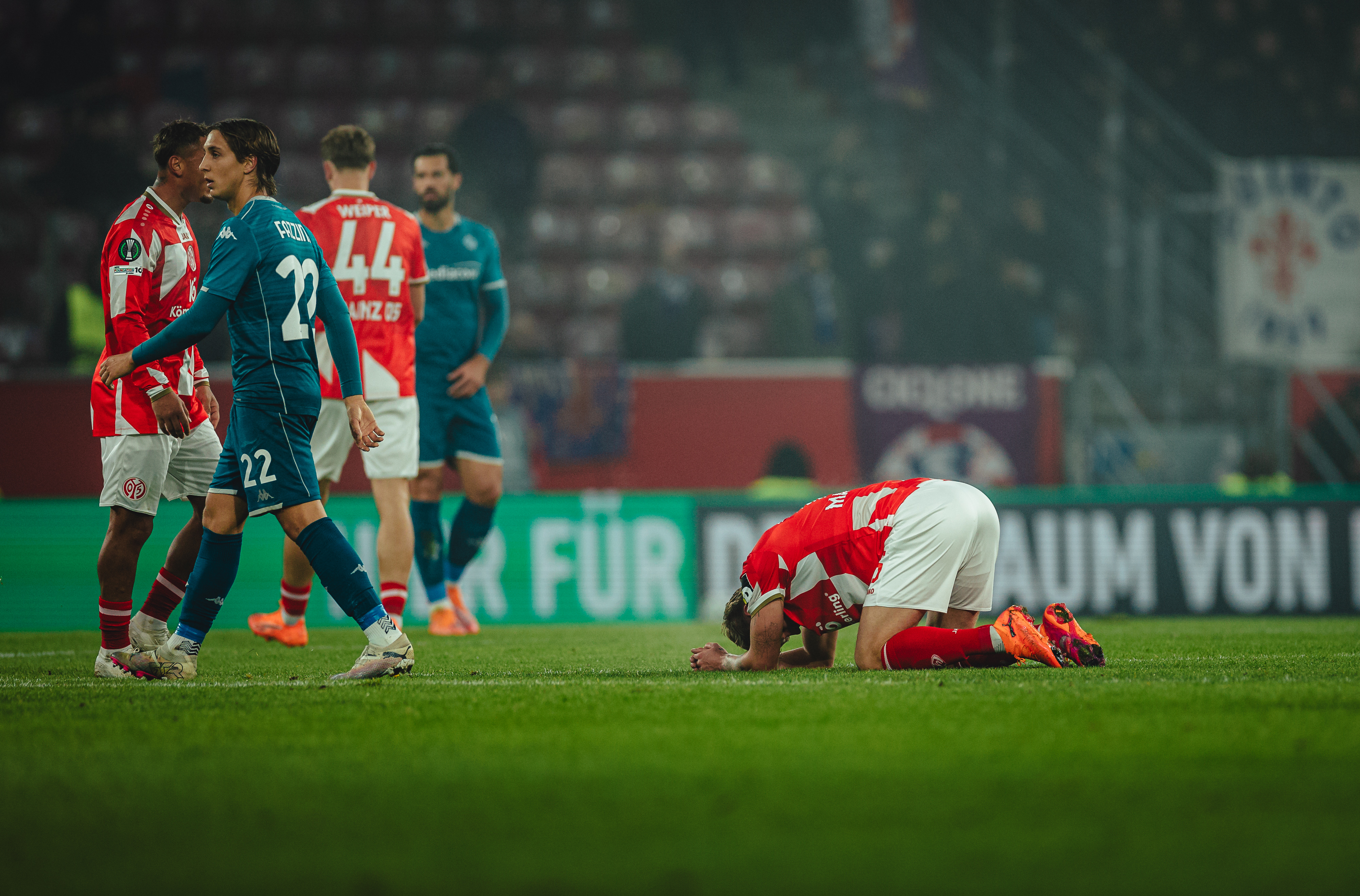 In der Ligaphase der UEFA Conference League hat der 1. FSV Mainz 05 am Donnerstagabend im dritten Spiel den dritten Sieg einfahren können. Nach dem hatte es gegen die ACF Fiorentina aus der Serie A zwar lange nicht ausgesehen, doch der FSV drehte die Partie nach Rückstand zur Pause, einem Kraftakt sowie klarer Leistungssteigerung nach Wiederbeginn, dank der Tore der beiden Joker Benedict Hollerbach und Jae-sung Lee in der Nachspielzeit zum unter dem Strich nicht ganz unverdienten 2:1 (0:1). Das Zustandekommen sollte aber letztlich zweitrangig sein für den FSV, der sich nach langer Durstrecke gesehnt hatte nach diesem Erfolgserlebnis.