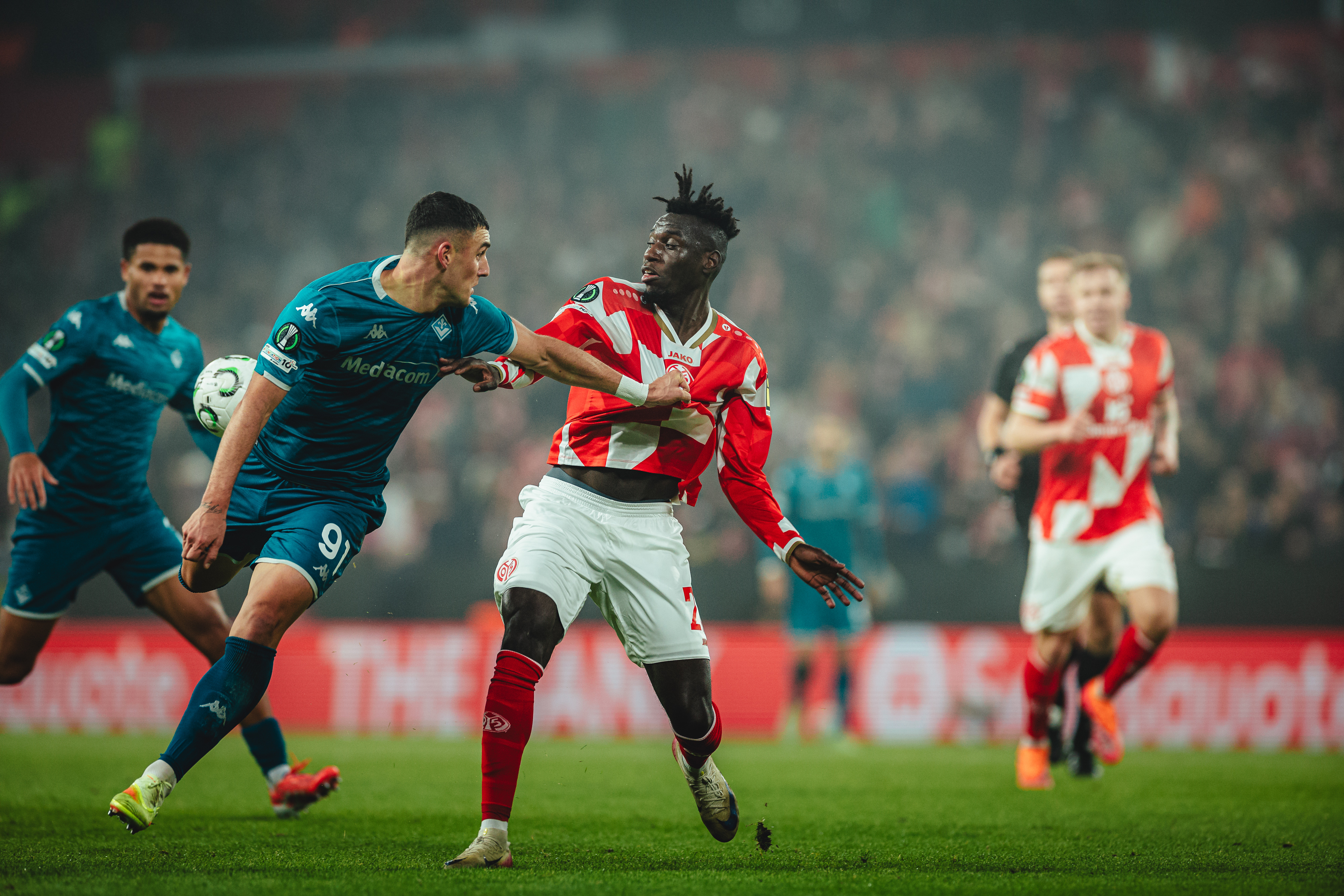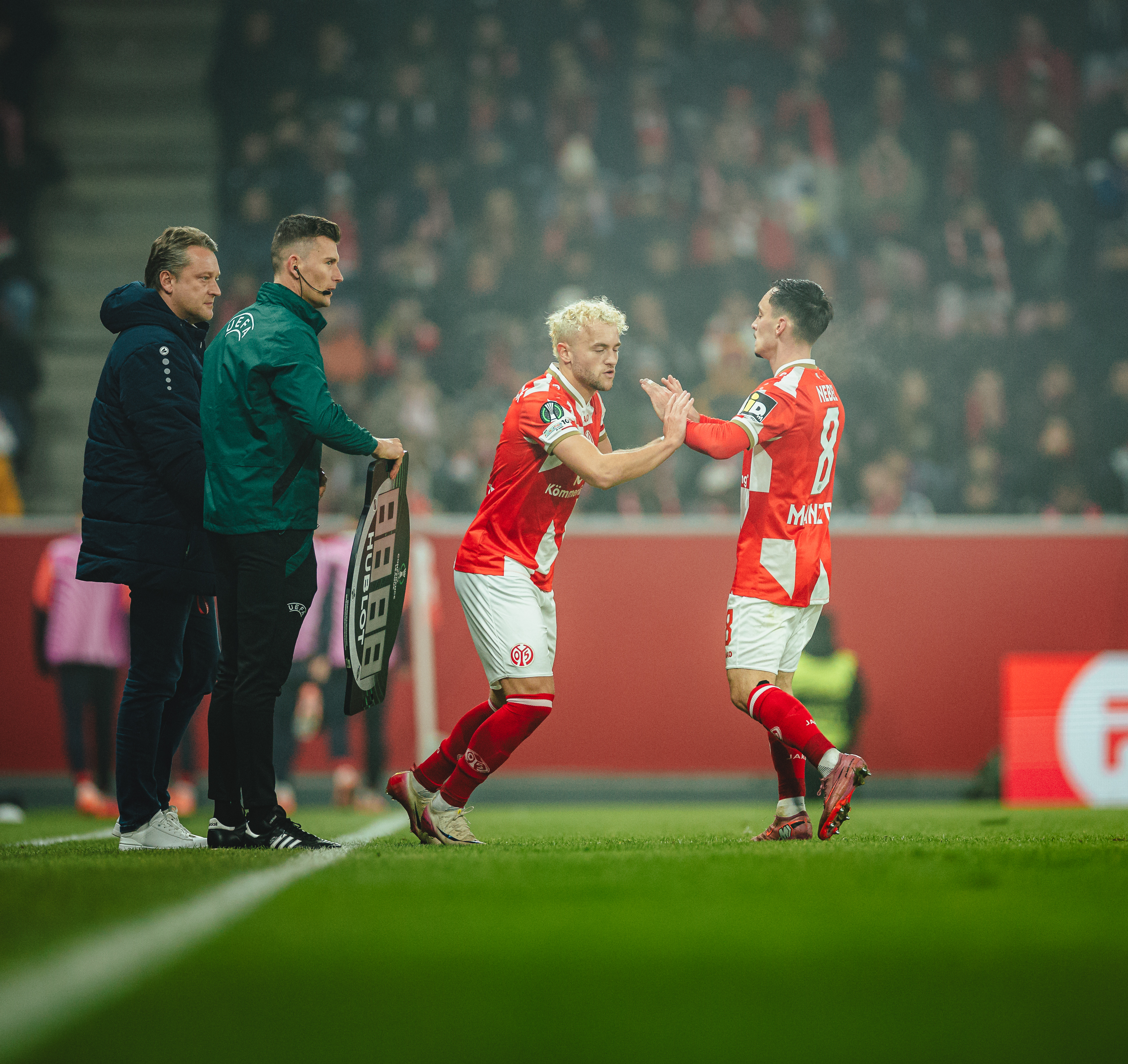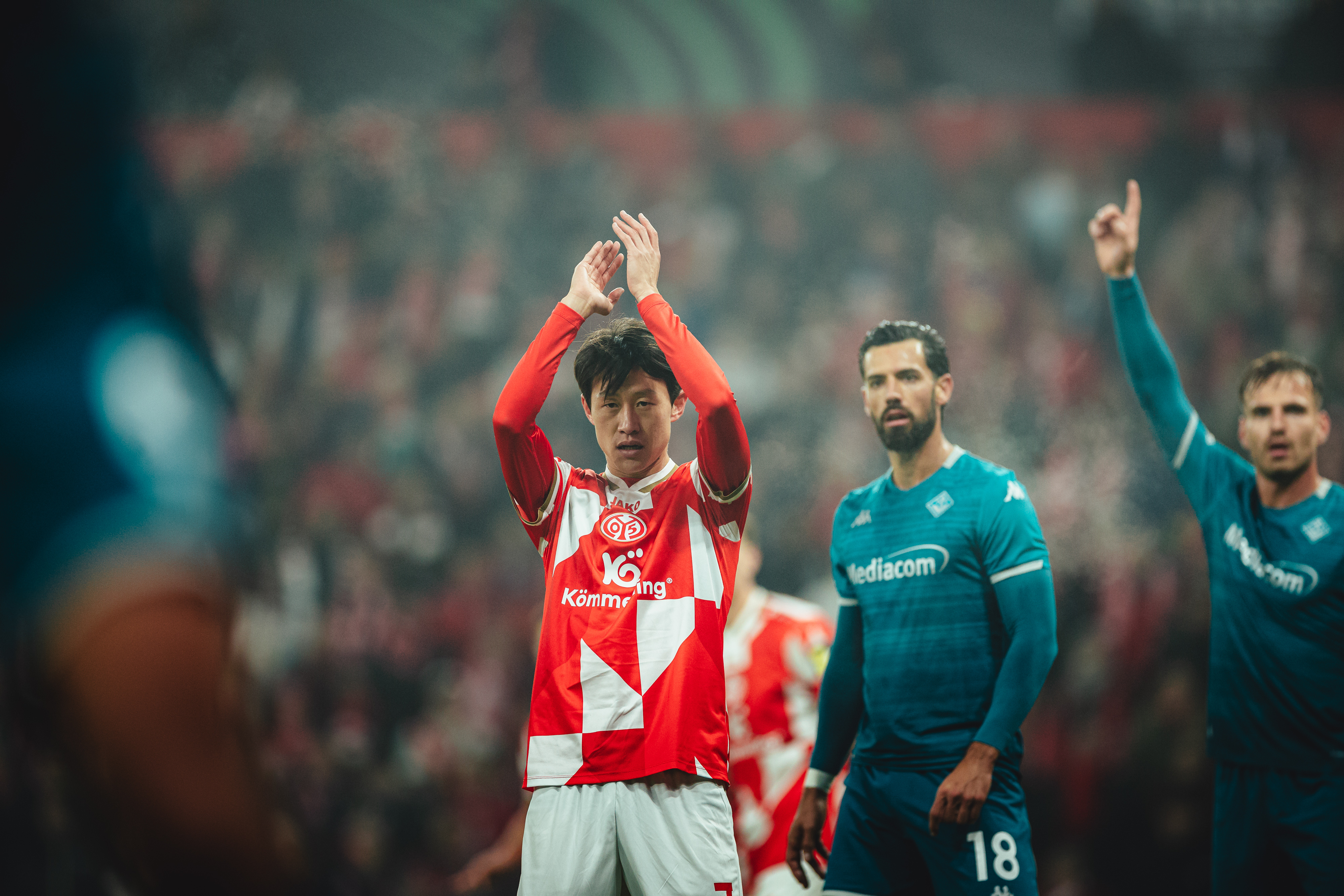 In der Ligaphase der UEFA Conference League hat der 1. FSV Mainz 05 am Donnerstagabend im dritten Spiel den dritten Sieg einfahren können. Nach dem hatte es gegen die ACF Fiorentina aus der Serie A zwar lange nicht ausgesehen, doch der FSV drehte die Partie nach Rückstand zur Pause, einem Kraftakt sowie klarer Leistungssteigerung nach Wiederbeginn, dank der Tore der beiden Joker Benedict Hollerbach und Jae-sung Lee in der Nachspielzeit zum unter dem Strich nicht ganz unverdienten 2:1 (0:1). Das Zustandekommen sollte aber letztlich zweitrangig sein für den FSV, der sich nach langer Durstrecke gesehnt hatte nach diesem Erfolgserlebnis.