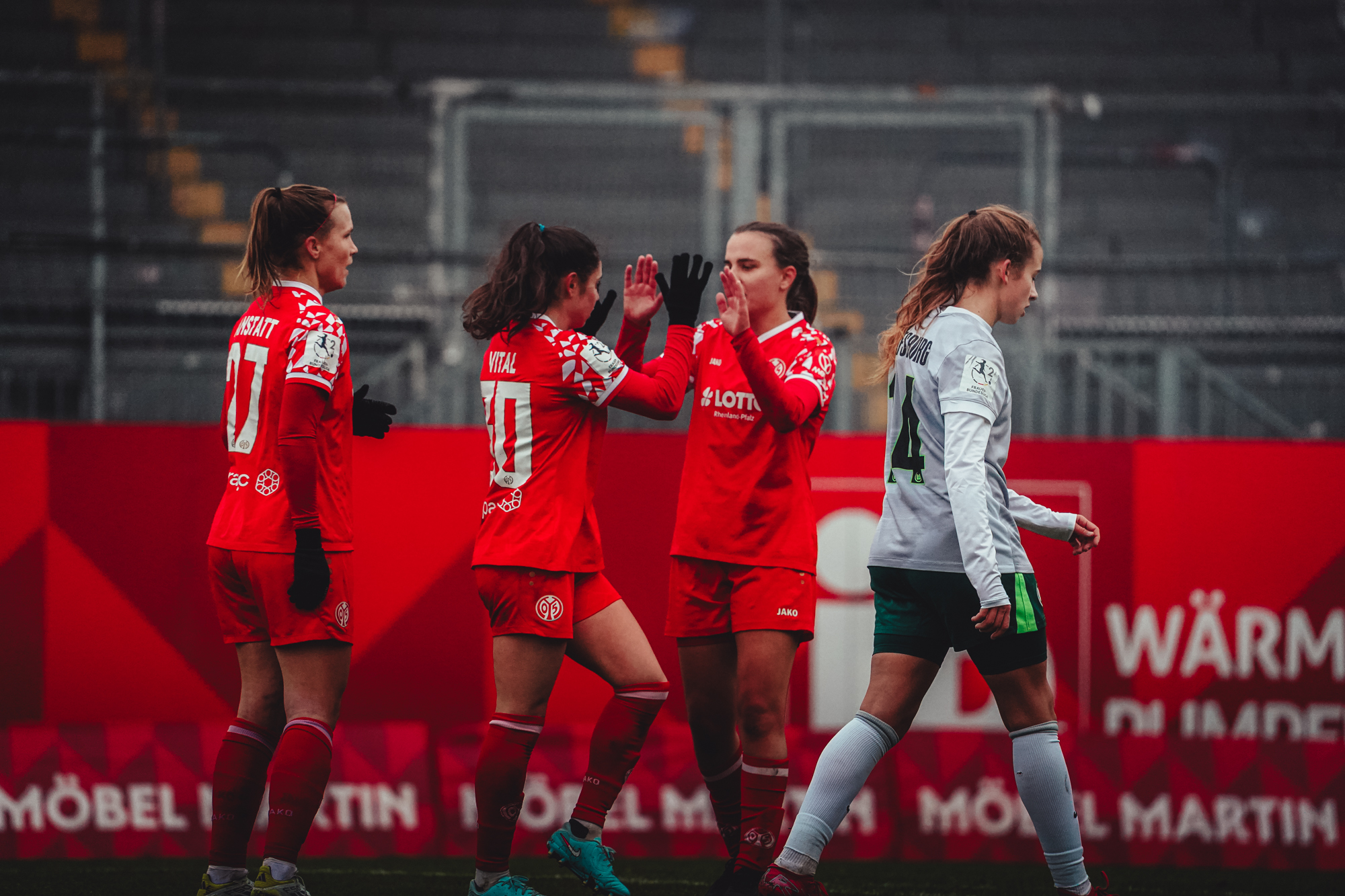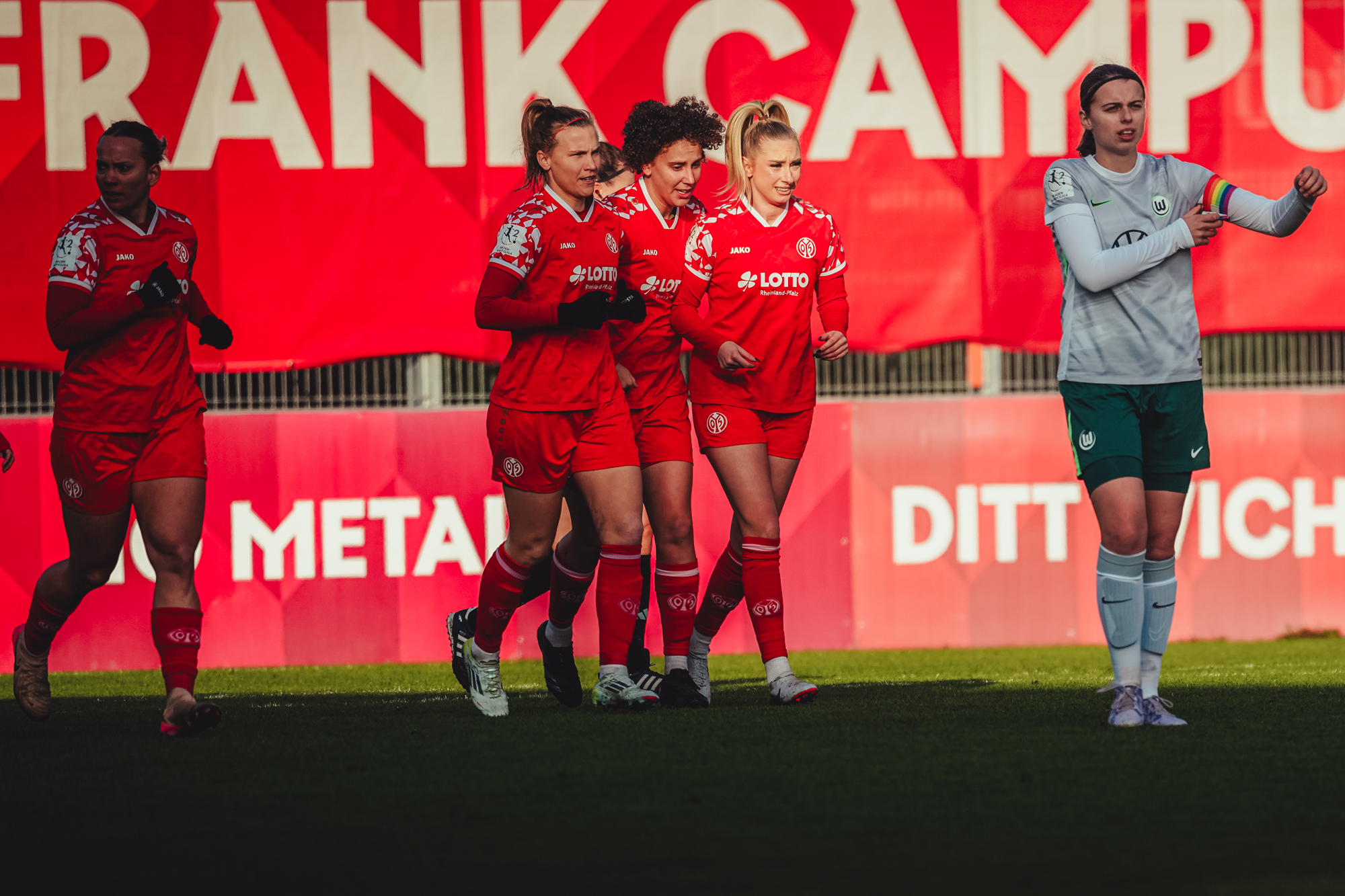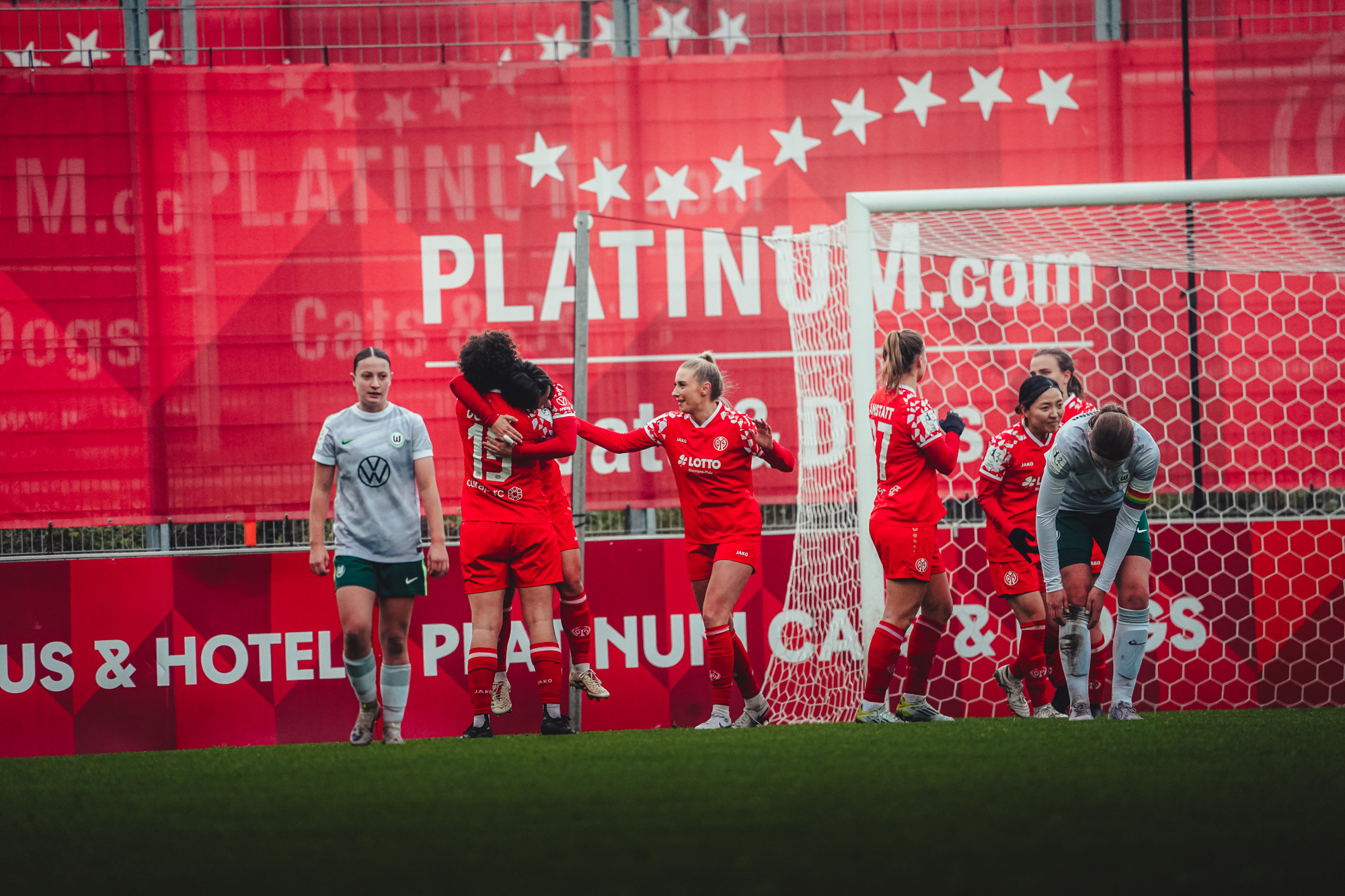 Beim überzeugenden 7:1 (5:1)-Kantersieg über die Zweitvertretung des VfL Wolfsburg - im ersten Durchgang verstärkt durch Nationalspielerin Sophia Kleinherne - haben die Frauen des 1. FSV Mainz 05 am Sonntagnachmittag im Bruchwegstadion ihren sechsten und gleichzeitig höchsten Saisonsieg feiern können. Dabei sorgten spielfreudigere Mainzerinnen früh für klare Verhältnisse und ließen trotz klarer Führung auch nach Wiederbeginn nicht locker. Die Treffer für den FSV besorgten neben der dreifachen Torschützin Vital Kats Akari Kurishima, Chiara Bouziane, Emma Junold sowie Kara Bathmann. Den zwischenzeitlichen Ausgleich hatte Linea Saelen besorgt.