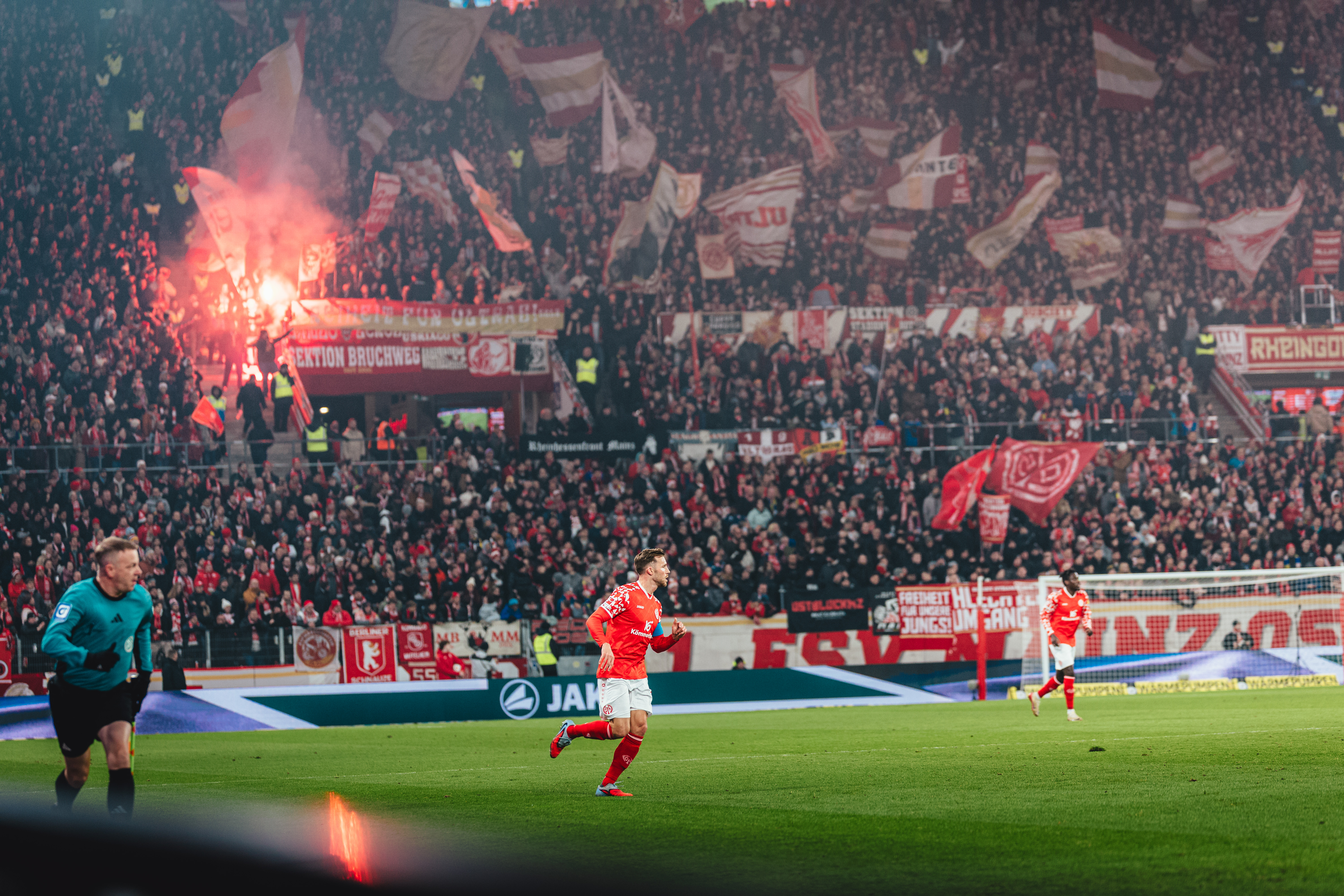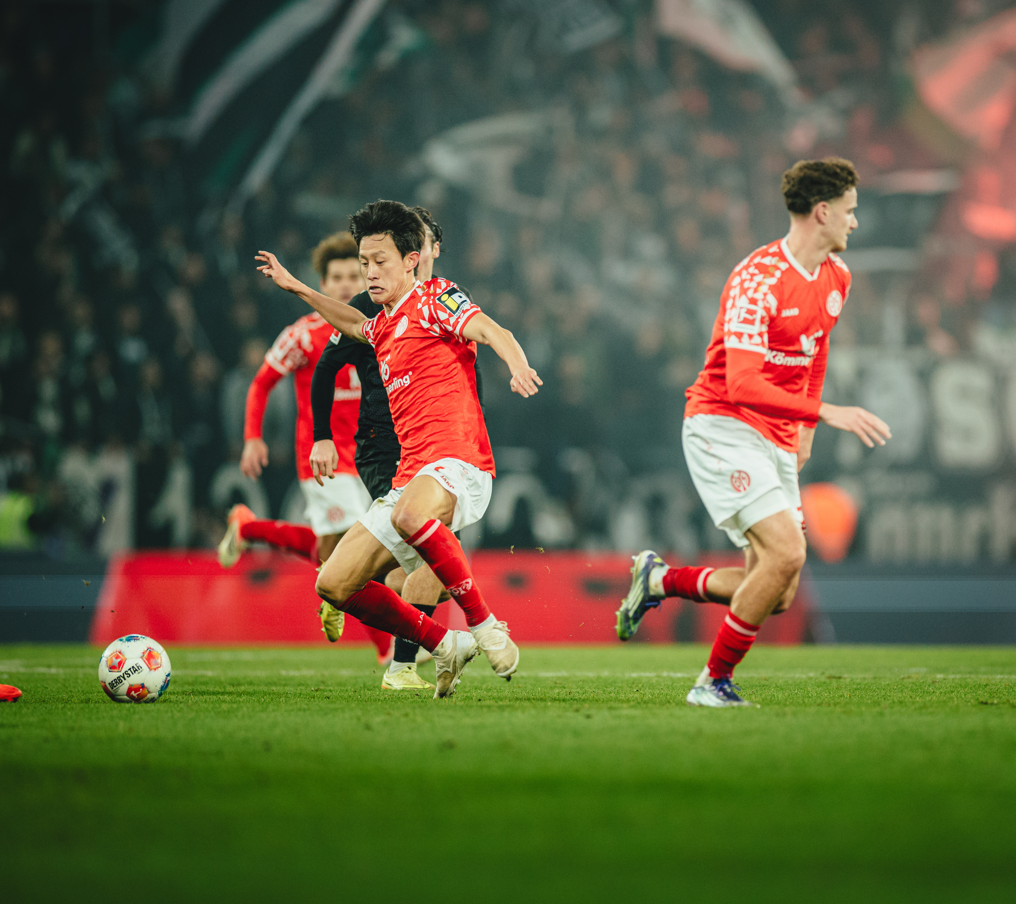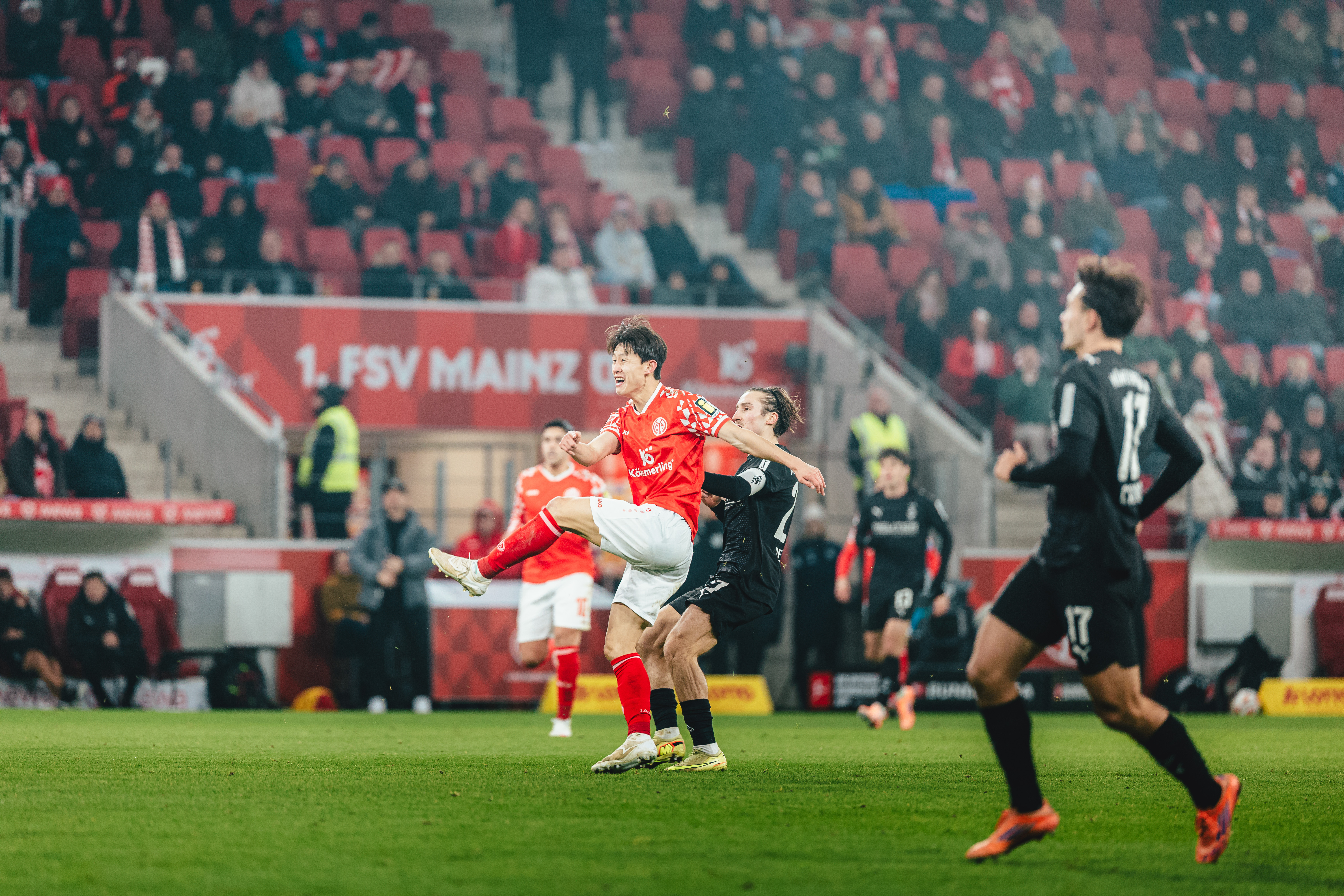 Mit Beginn der Schlussphase zog Hoffmann seine nächsten Joker. Für Widmer und Moreno kamen in Minute 76 Nikolas Veratschnig und Benedict Hollerbach. Zunächst einmal war aber Batz gefordert, der einen Schuss Shuto Mashinos glänzend entschärfte (78.). Was folgte war ein unermüdliches Anlaufen des FSV unter ebenso leidenschaftlicher Anfeuerung der Fans. Vorwerfen konnte man den Gastgebern wenig, bis auf die fehlende Durchschlagskraft an vorderster Front. Hinzu kam dann auch noch Pech. Vier Minuten vor dem Ende der regulären Spielzeit passte Sano flach vors Tor auf Lee, dessen Schlenzer, der wohl im langen Eck gelandet wäre, von Nico Elvedi per Kopf geklärt wurde (87.). Für Lee war kurz darauf Schluss, Sota Kawasaki sollte sich in der verbleibenden Spielzeit versuchen, wenigstens einen Punkt zu erkämpfen. In der 90. Minute war aber zunächst noch einmal Batz gefordert, der einen Schuss Castrops zur Ecke klärte. Weil die Mainzer nicht mehr zurückschlagen konnten, blieb es beim schmeichelhaften Sieg für die Gäste, die äußerst glücklich in Führung gegangen waren und diese am Ende mit reichlich Fortune auch über die Zeit gebracht hatten.