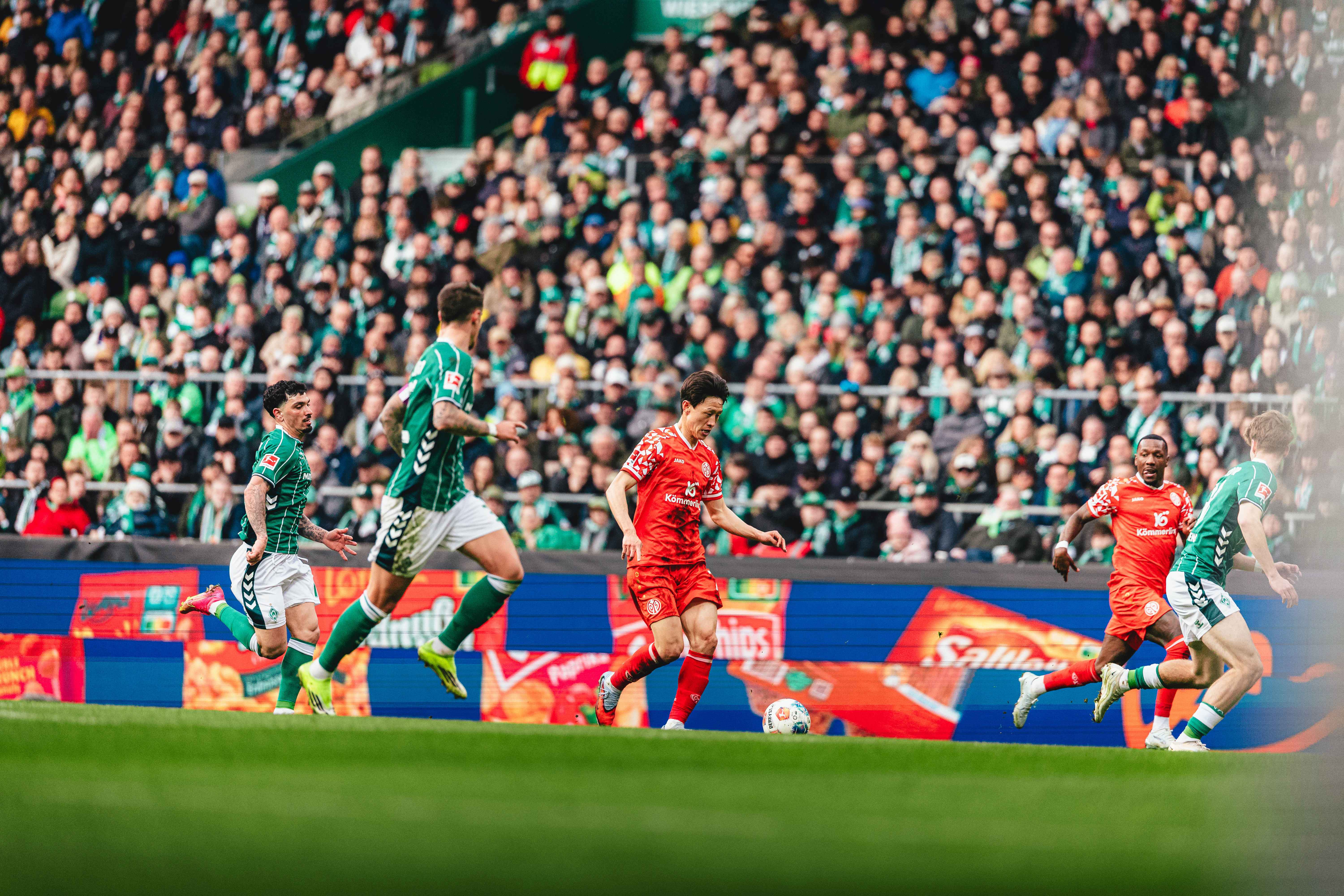 Mit einem 2:0 (1:0)-Auswärtssieg bei Werder Bremen beendet der 1. FSV Mainz 05 die erste Englische Woche des Jahres und schiebt sich an der Konkurrenz von der Weser vorbei. Die Treffer zum am Ende verdienten Dreier markierten Paul Nebel in der Anfangsphase sowie Jae-sung Lee kurz nach Wiederbeginn. Die beste Bremer Chance hatte früh Leonardo Bittencourt, der am Querbalken scheiterte.