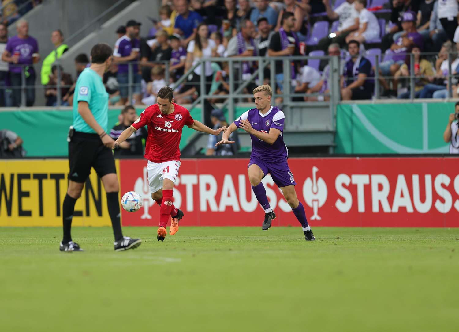 Erfolgreicher Pflichtspielauftakt für den 1. FSV Mainz 05. Dank eines verdienten 3:0 (1:0)-Erfolges beim FC Erzgebirge Aue stehen die 05ER in der zweiten Runde des DFB-Pokals. Dominik Kohr sorgte für die Halbzeitführung des FSV, Delano Burgzorg und Marcus Ingvartsen per Strafstoß machten in der zweiten Hälfte jeweils kurz nach ihrer Einwechslung mit ihren Toren den Deckel drauf. Die Rheinhessen wurden über die gesamte Spieldauer ihrer Favoritenrolle gegen den Drittligisten gerecht, agierten konzentriert und abgeklärt, ließen den Gastgebern wenig Raum zur Entfaltung und hätten das Ergebnis noch deutlicher gestalten können.