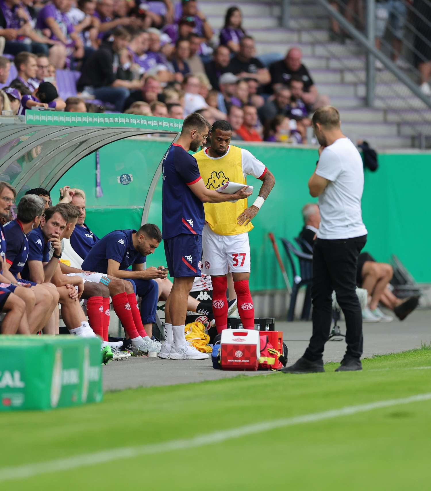 In der gewohnten taktischen Ausrichtung im 3-5-2-System und Neuzugang Maxim Leitsch als linkem Innenverteidiger schickte Bo Svensson seine Mannschaft in das erste Pflichtspiel der Saison 2022/23. Im Vergleich zum letzten Testspiel gegen Athletic Bilbao liefen Dominik Kohr und Jae-Sung Lee anstelle von Leandro Barreiro und Angelo Fulgini auf.