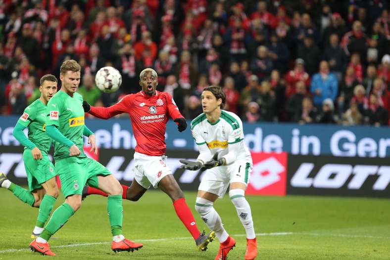 Die Partie war kaum angepfiffen, da präsentierte sich die rot-weiße Nummer eins Florian Müller gleich hellwach. Gäste-Kapitän Lars Stindl tauchte aus zehn Metern halbrechter Position vor dem 05-Torhüter auf und scheiterte am Eigengewächs, das danach auch bei den Nachschüssen von erneut Stindl und Denis Zakaria glänzend reagierte (2.). Durchatmen war angesagt, der FSV anschließend aber voll da und im weiteren Verlauf von Durchgang eins das überlegene Team. Nach einer gefühlvollen Flanke von Stefan Bell drei Minuten später klärte Tobias Strobl am zweiten Pfosten in höchster Not vor dem einschussbereiten Robin Quaison (5.). Der Schachzug, mit der Systemumstellung die Außenbahnen zu stärken, ging auf in dieser Phase, die Gäste kamen nur noch selten zur Entfaltung, und auch die nächste Torannäherung sahen die gute 30.000 Zuschauer vor dem Tor der Gäste. In der 16. Minute schickte Jean-Philippe Gbamin Anthony Ujah mit einem ganz langen Ball aus der eigenen Hälfte, den der Stürmer von der Grundlinie vor das Gäste-Tor beförderte, wo Quaison das Leder nur um Zentimeter verpasste.