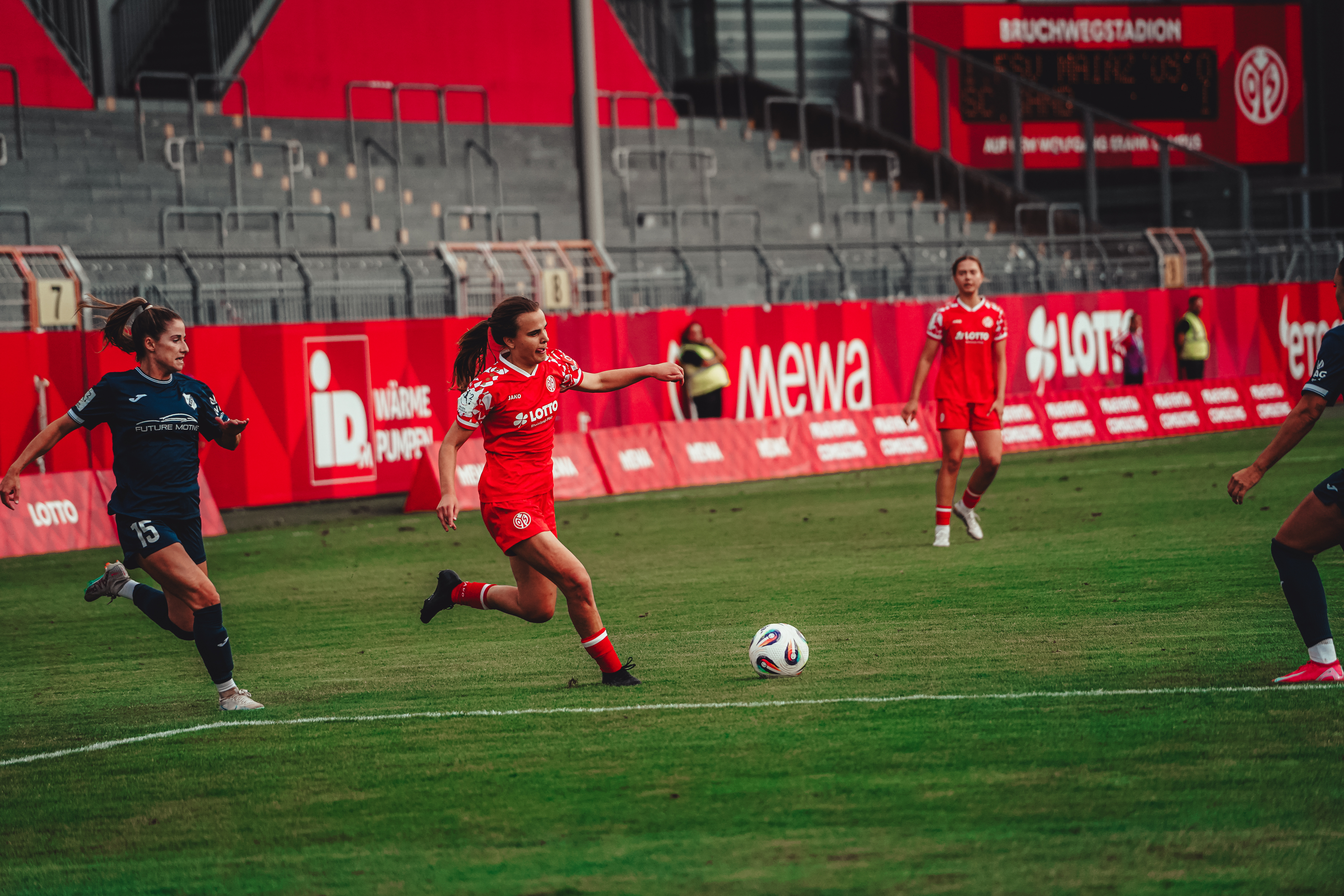 Ein wesentlicher Faktor sei zudem das Bruchwegstadion, in welchem die Mainzerinnen seit Beginn der Saison 2025/26 alle Heimspiele austragen. Die Atmosphäre sei für das Team deutlich zu spüren: "Es ist immer wieder ein besonderes Erlebnis, dort zu spielen. Man bekommt jedes Mal ein bisschen Gänsehaut und die Stimmung pusht uns auf dem Platz enorm", berichtet Bathmann von Spielen im früheren Stadion der 05-Profis. Die Vorfreude, genau dort am Sonntag nach längerer Zeit wieder auflaufen zu können, sei schon jetzt riesig: "Pflichtspiele machen das Leben als Fußballspielerin aus - dafür haben wir in der Vorbereitung hart gearbeitet. Jetzt wollen wir zeigen, dass wir uns nochmal verbessert haben."