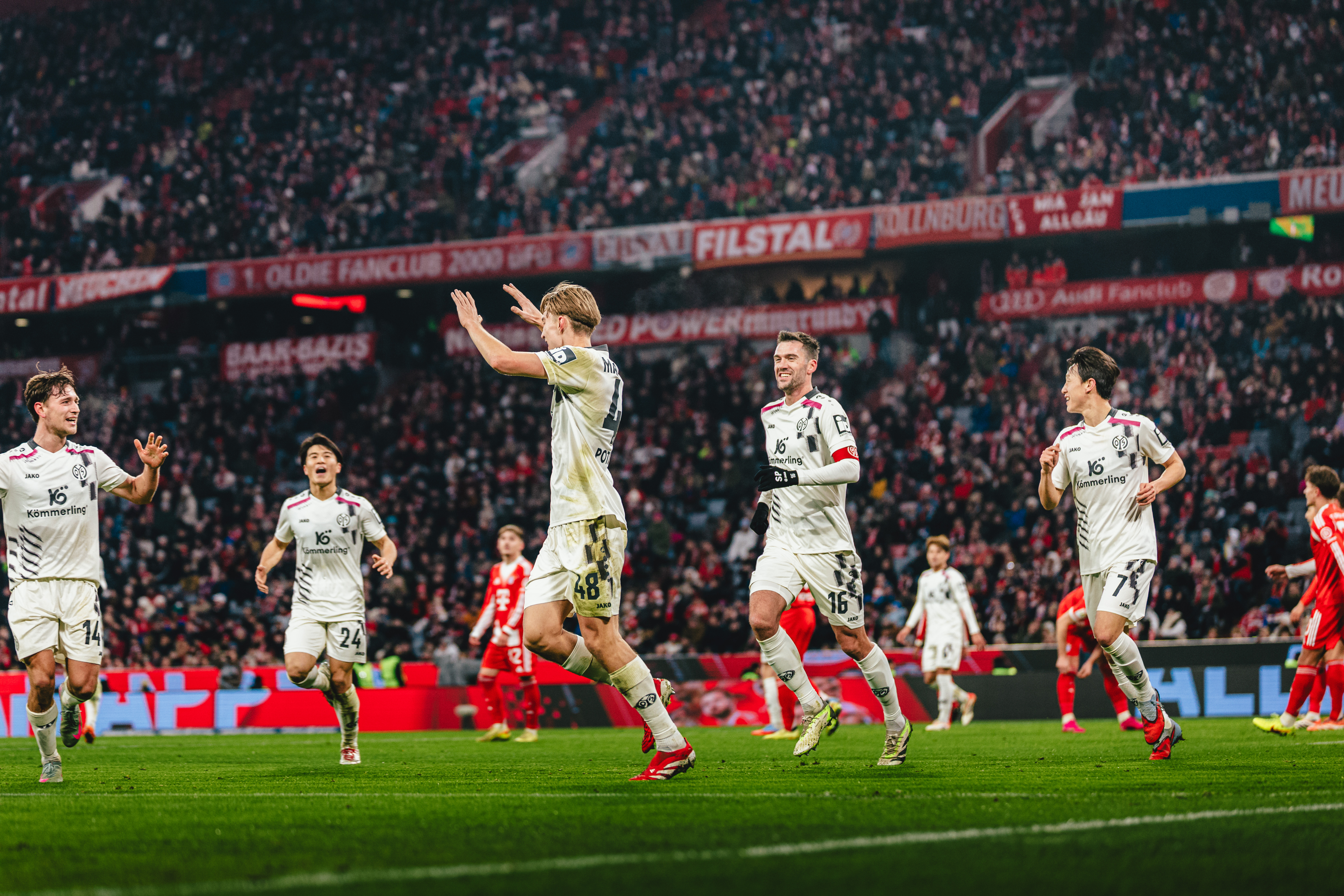 Kacper Potulski bejubelt sein erstes Profi-Tor im Auswärtsspiel beim FC Bayern München.