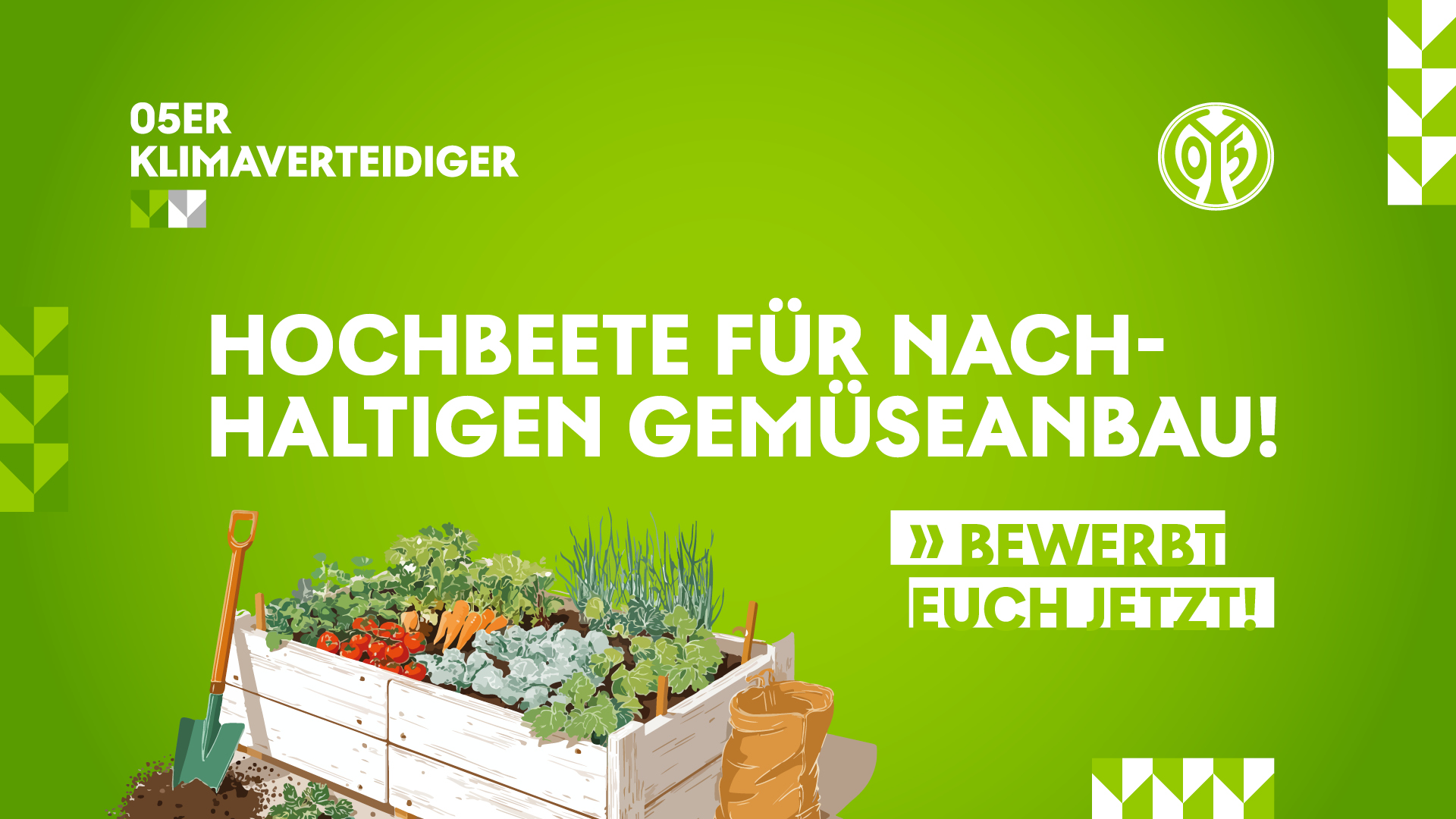 Wie jedes Jahr möchten wir gemeinsam mit unseren 05ER Klimaverteidiger-Partnern nicht nur über Klimaschutz sprechen, sondern auch aktiv etwas bewegen – und genau dafür suchen wir euch! Dieses Jahr vergeben wir bis zu 15 individuell angefertigte Hochbeet-Systeme an engagierte regionale Organisationen – ob Schulen, Kitas, Jugendzentren, Seniorenheime oder Vereine. Mit diesen Hochbeeten können eigenes Gemüse, Salate oder aber Kräuter angebaut werden – von sonnengereiften Tomaten bis hin zu frischem Schnittlauch ist alles möglich.